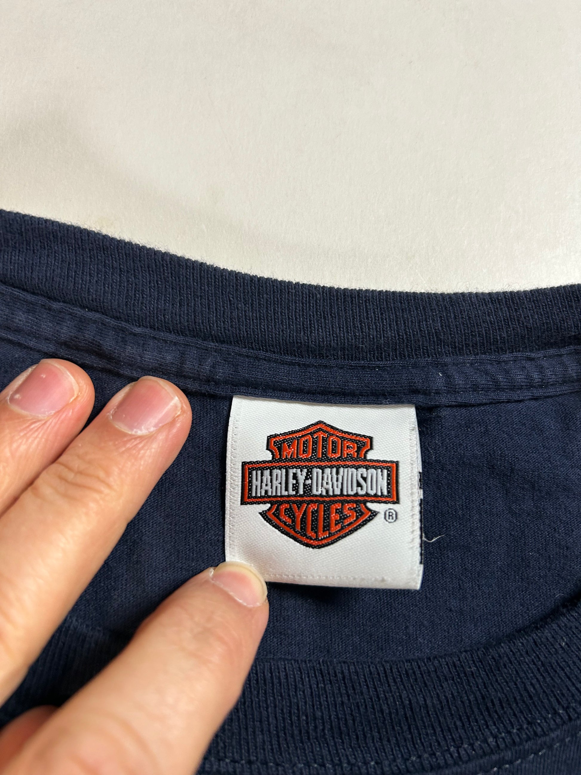 2010s Harley Davidson Motorcycles Treasure Coast Stuart Florida Pirate Graphic Tee 2XL 25.75x31 Inches Navy