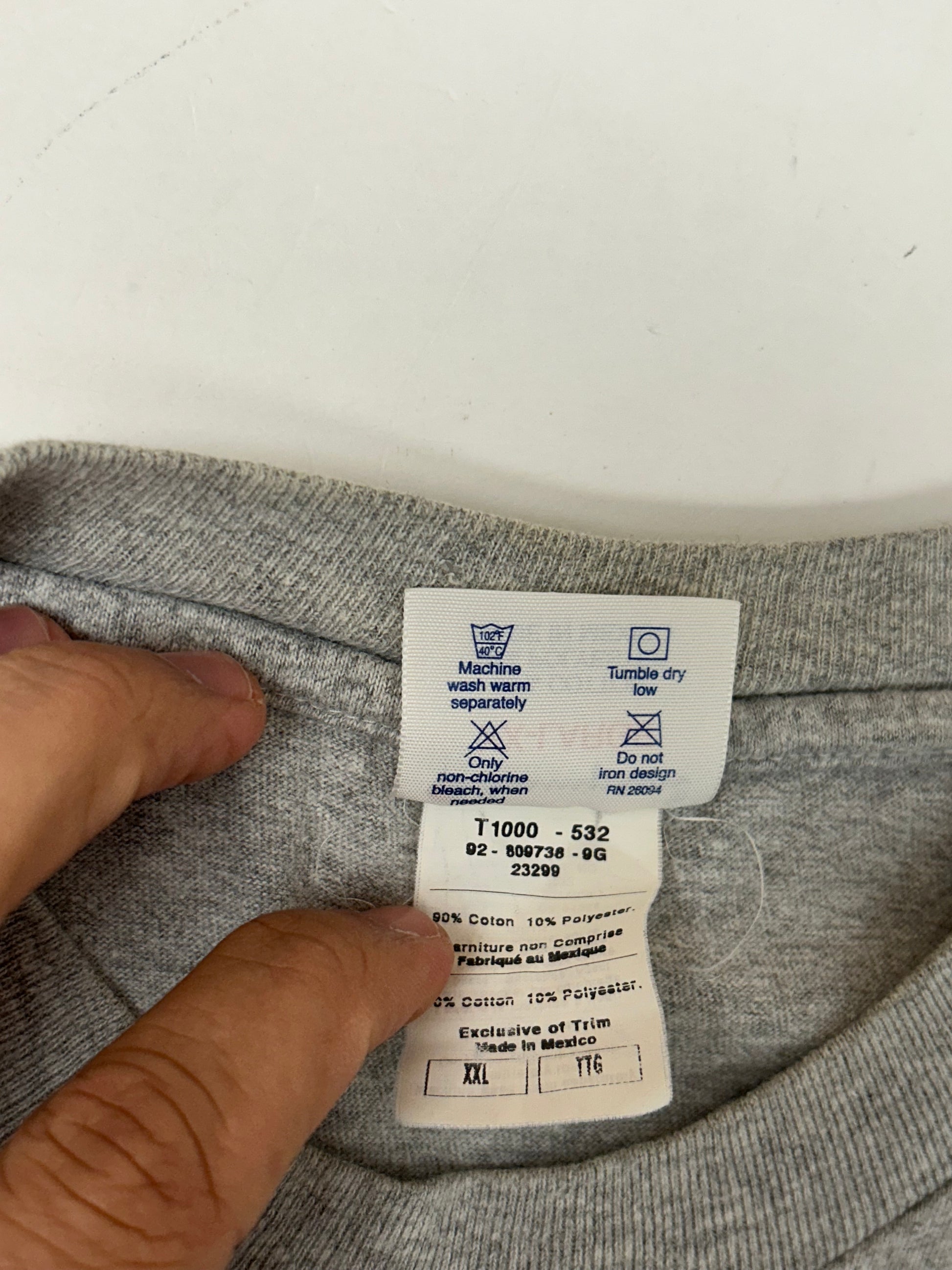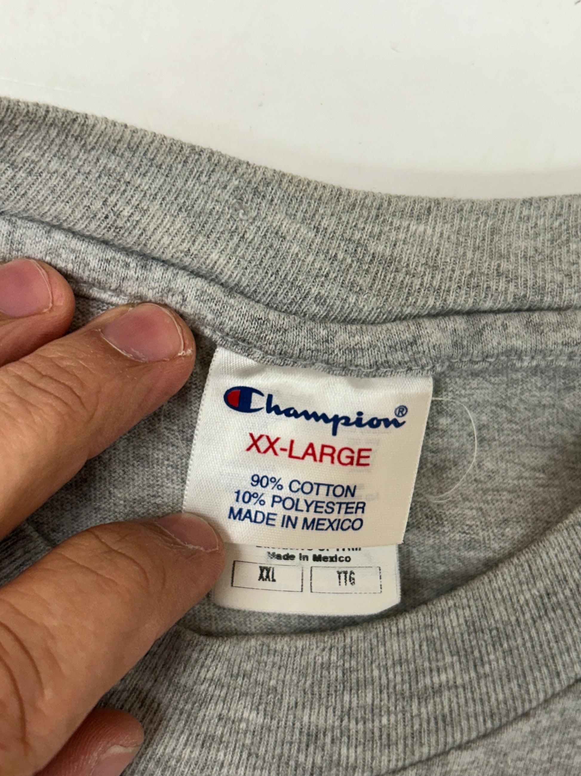 This tee is printed on a Vintage early 00s Champion Blank 90/10 Blend Made In Mexico Gray.