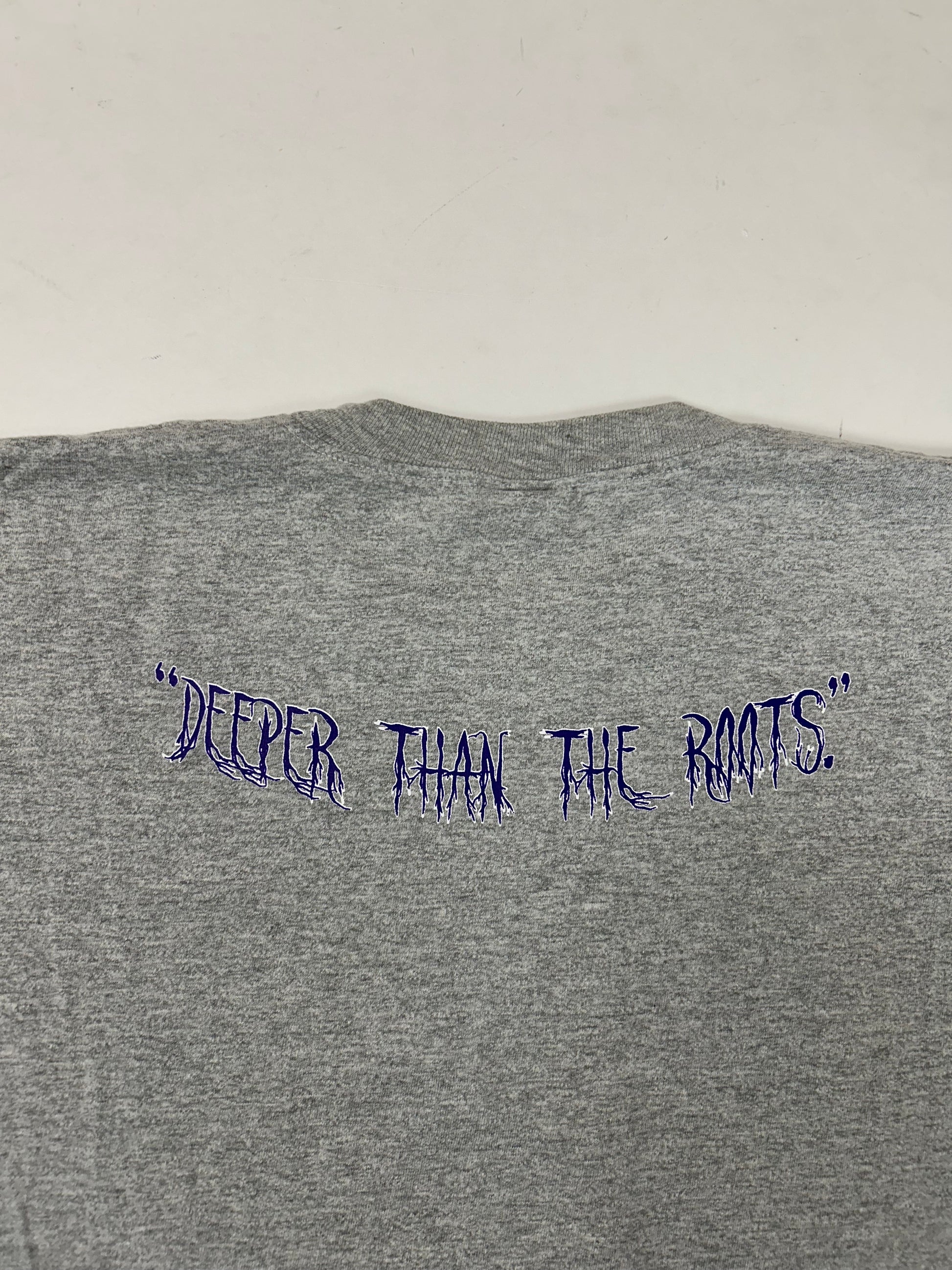 Edgewood NJ first edition “Deeper Than The Roots.” Tee 2XL 25.5x31 Inches Early 00s Champion Blank Gray 90/10 Blend Mexico