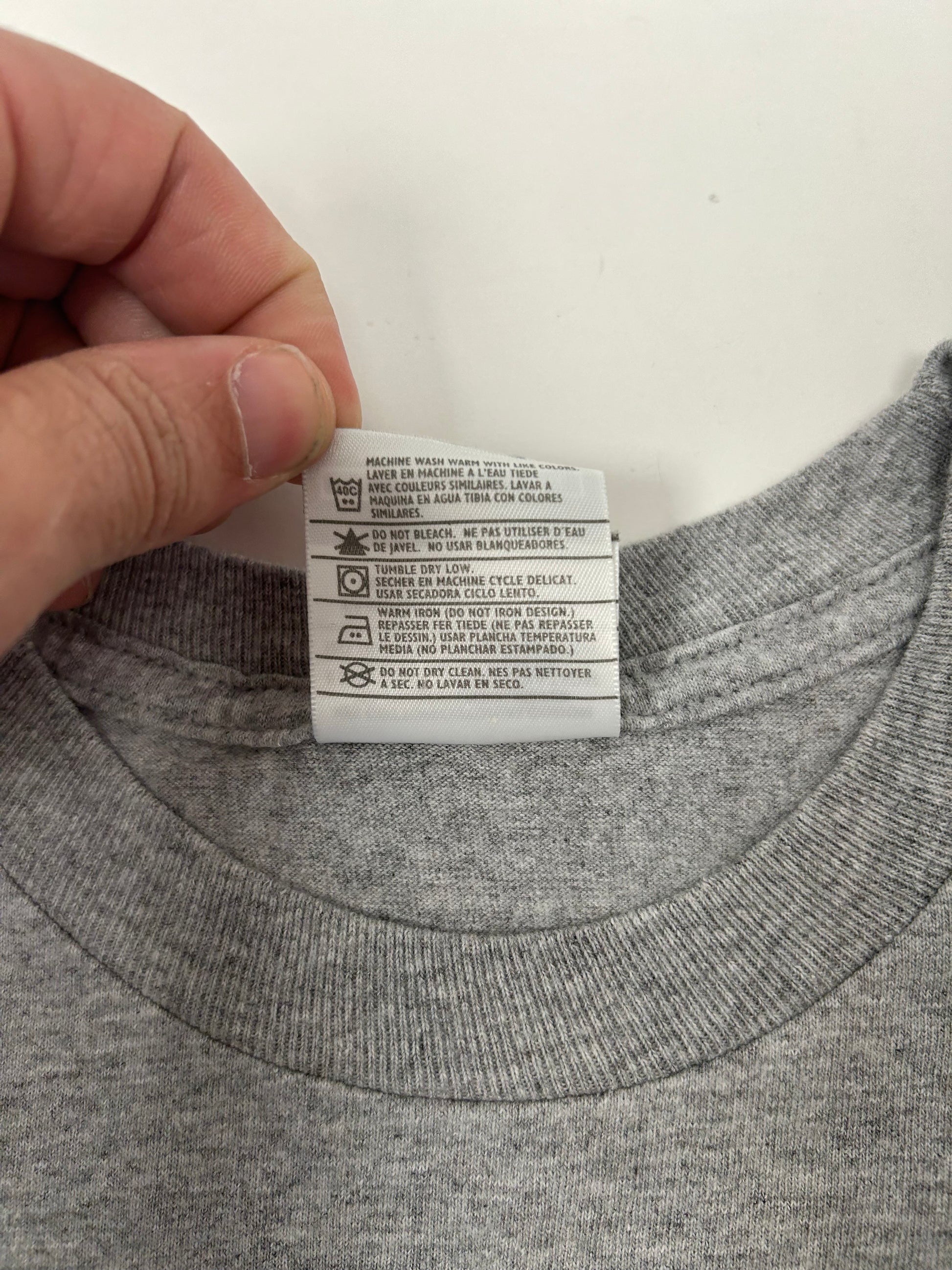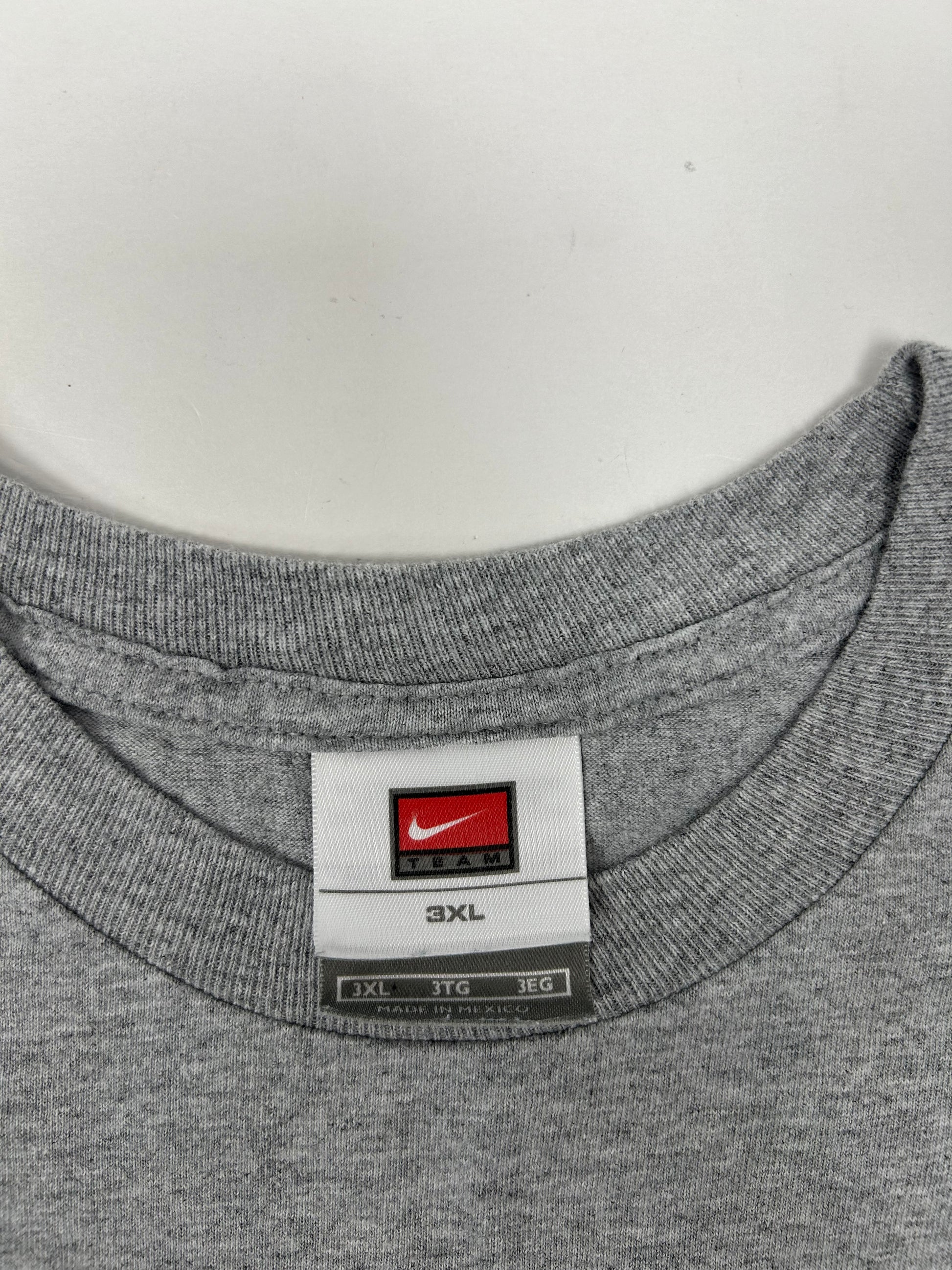 This tee is printed on a 00s Nike Team Tag With A Small Swoosh On The Back 90% Cotton 10% Polyester Cotton Made In Mexico In A Gray Color Tee.