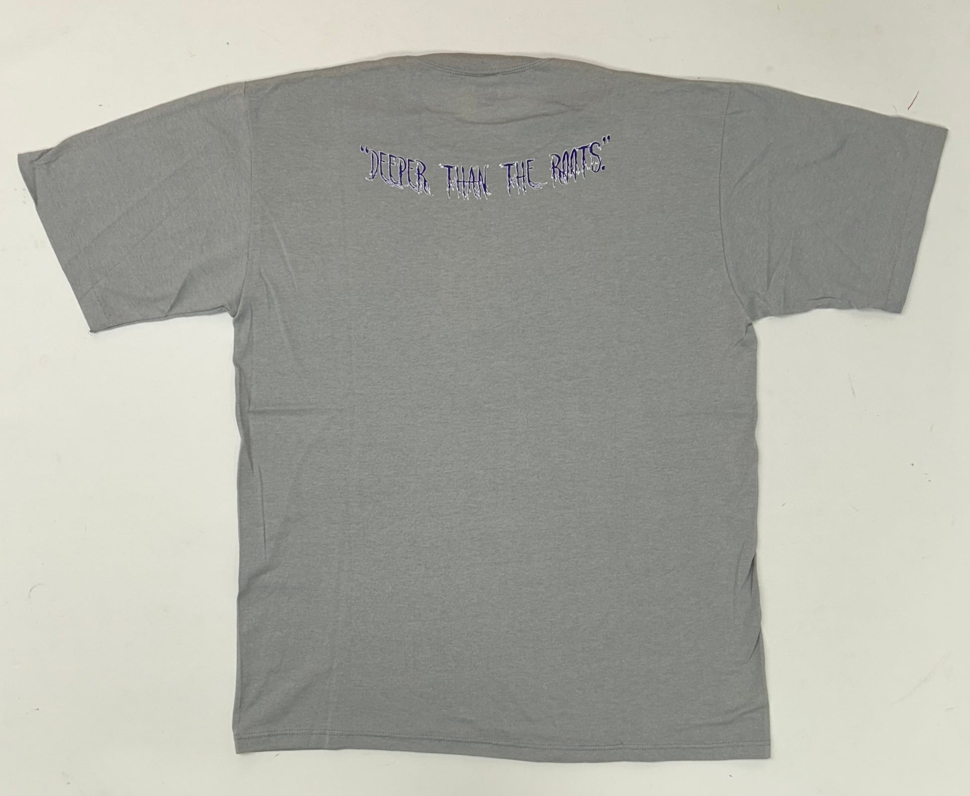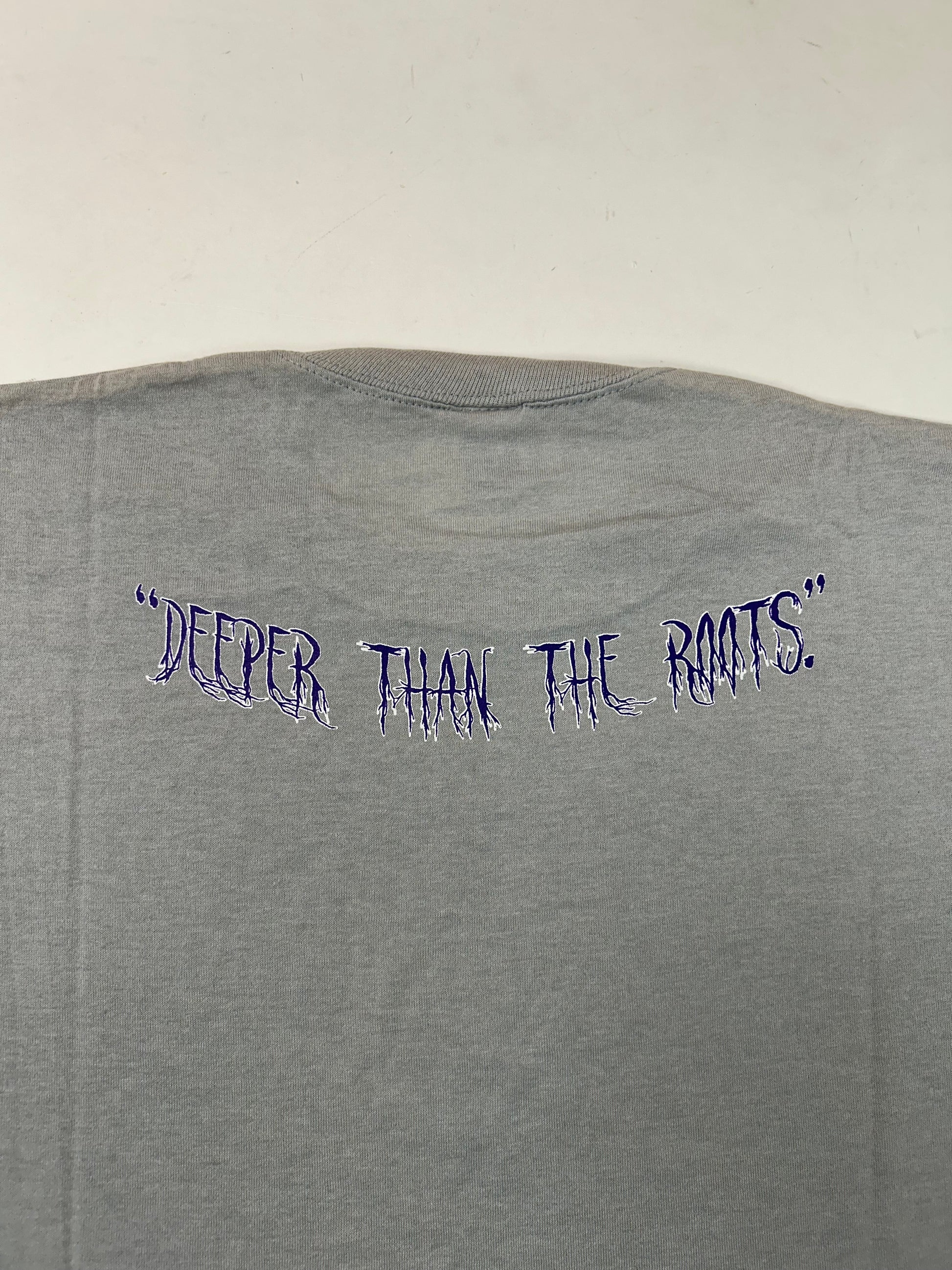 Edgewood NJ first edition “Deeper Than The Roots.” Tee XL/L Fit 22.5x29.5 Inches 90s Jerzees 50/50 Blend USA Made Slate Gray