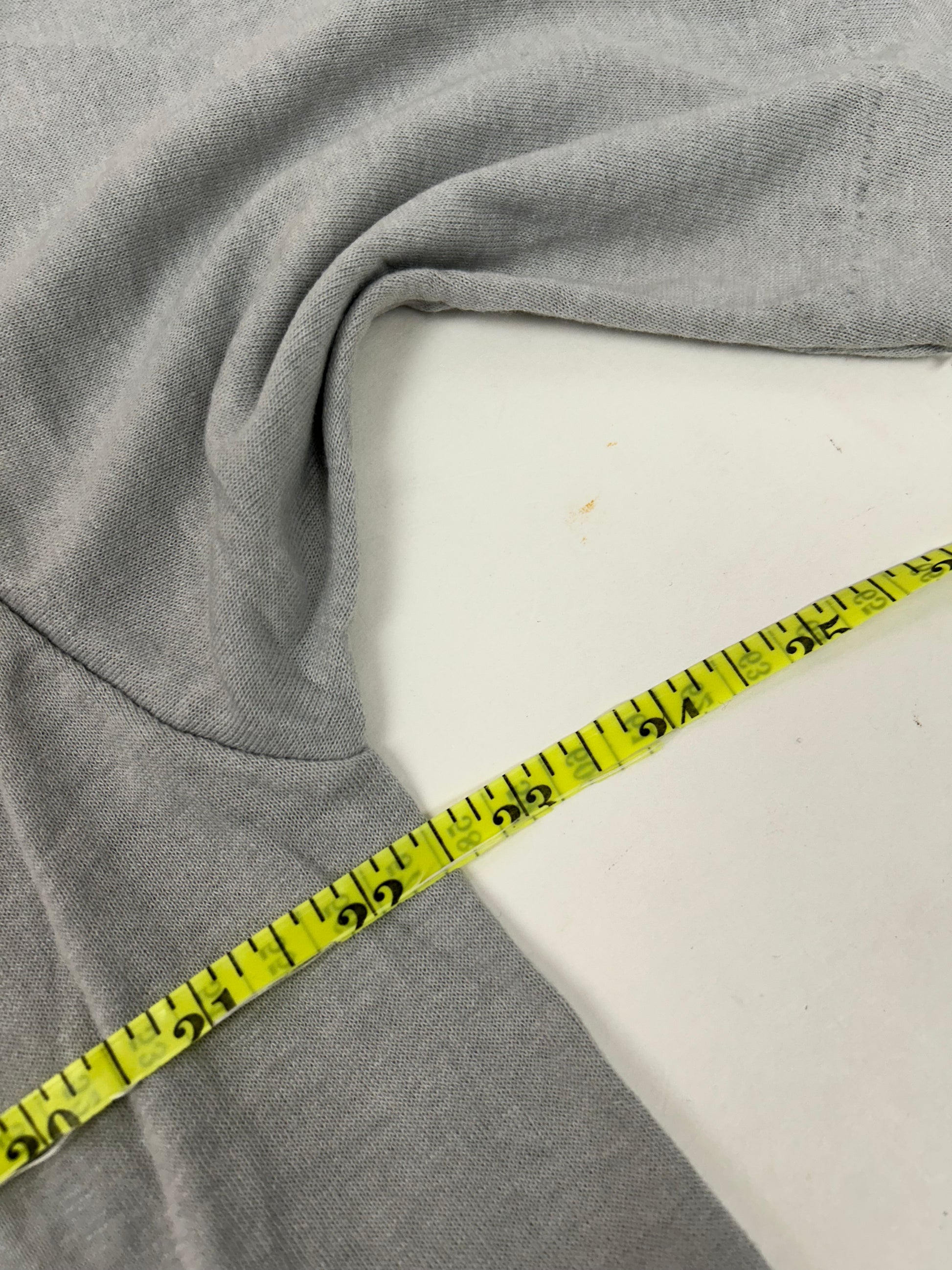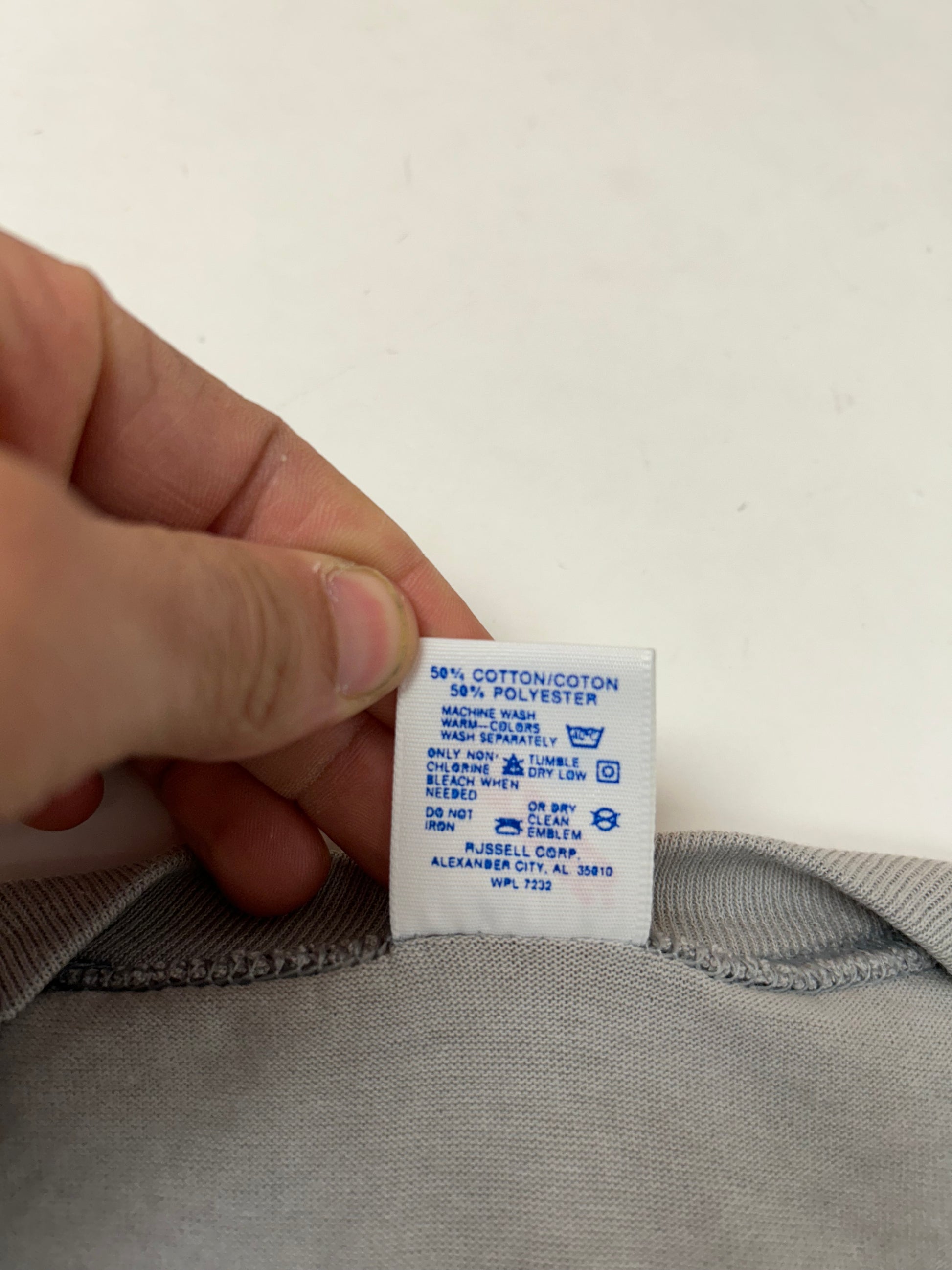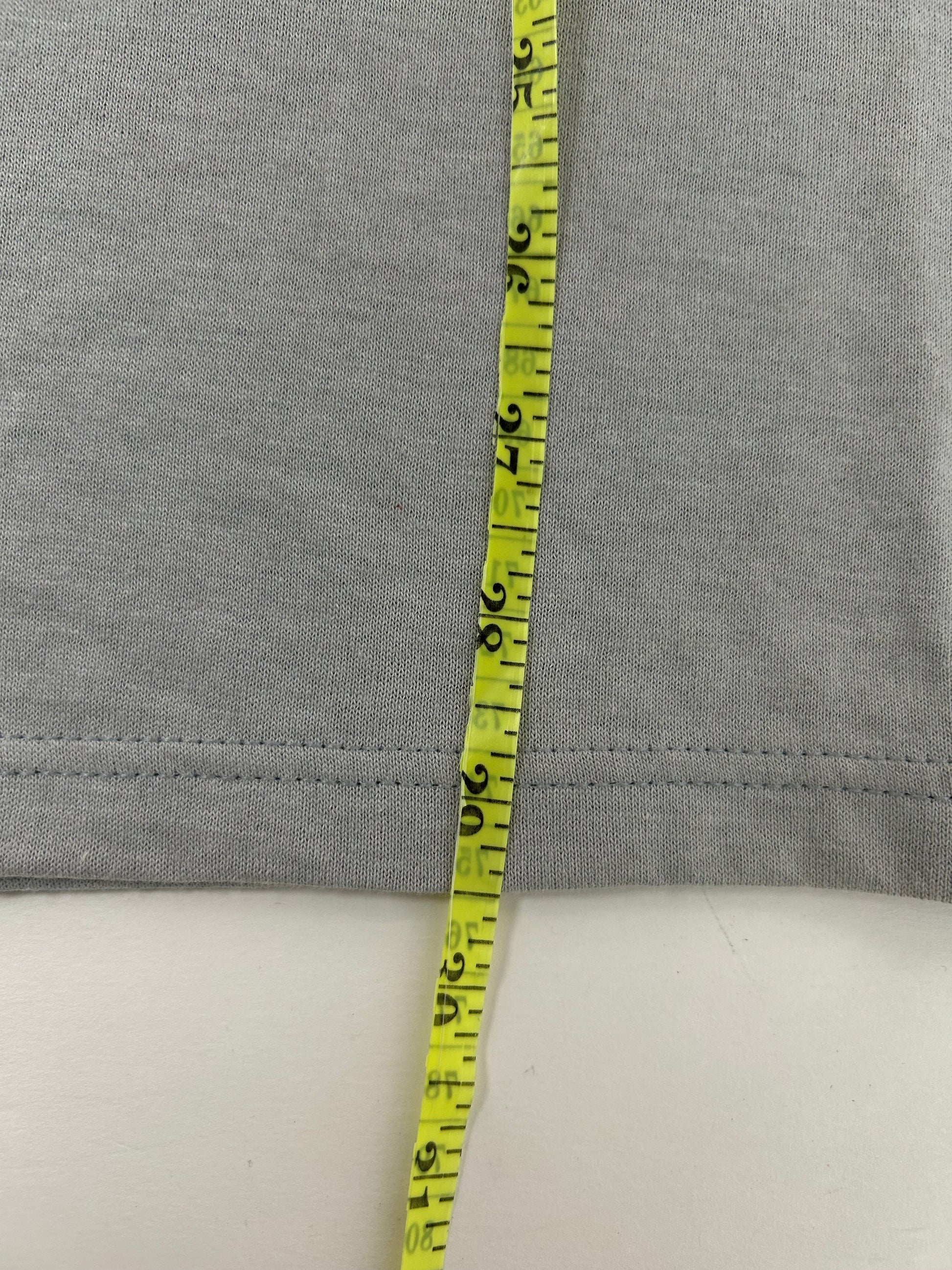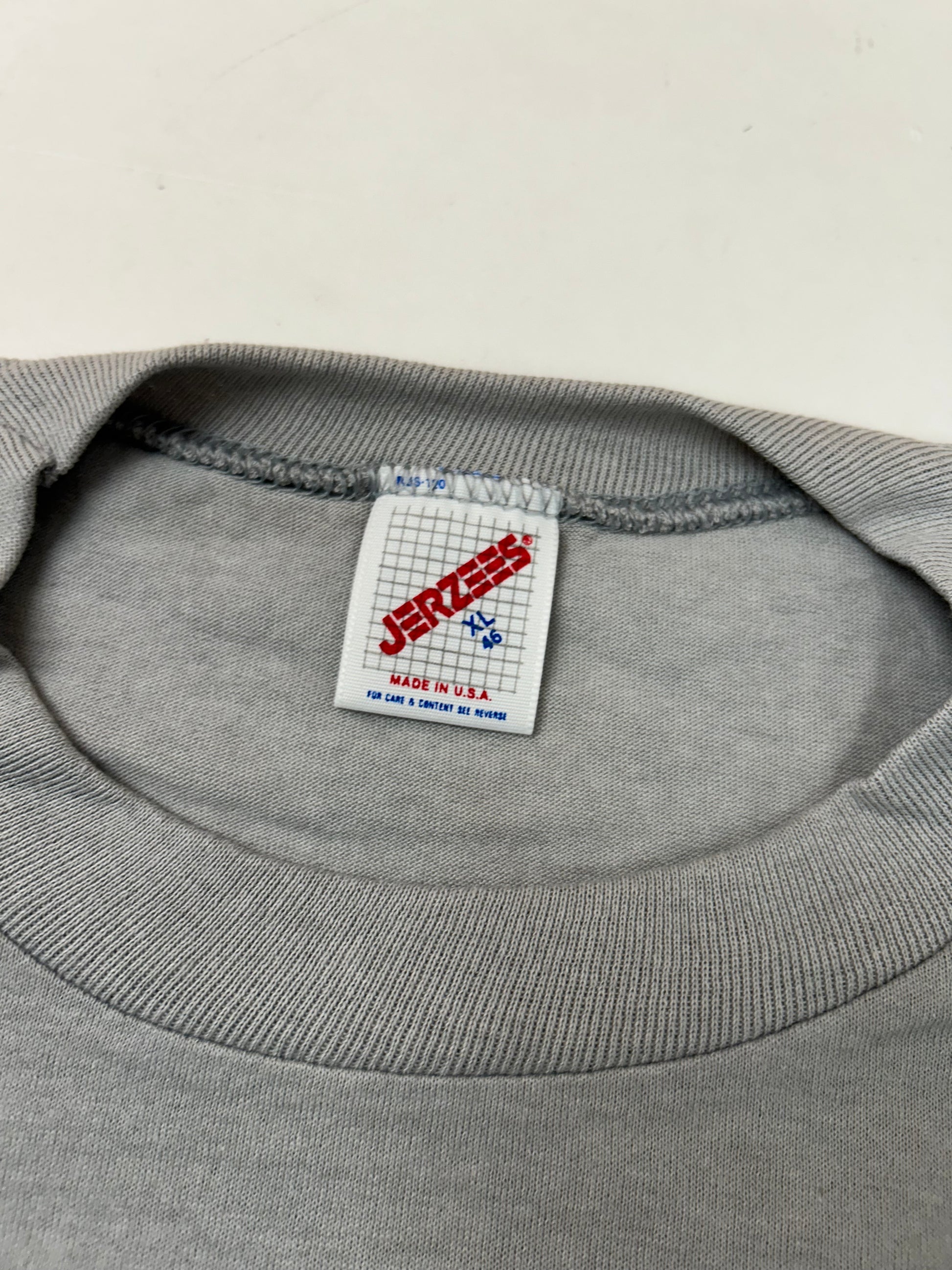This tee is printed on a Vintage 90s Jerzees Tag 50/50 Blend USA Made Slate Gray Color.