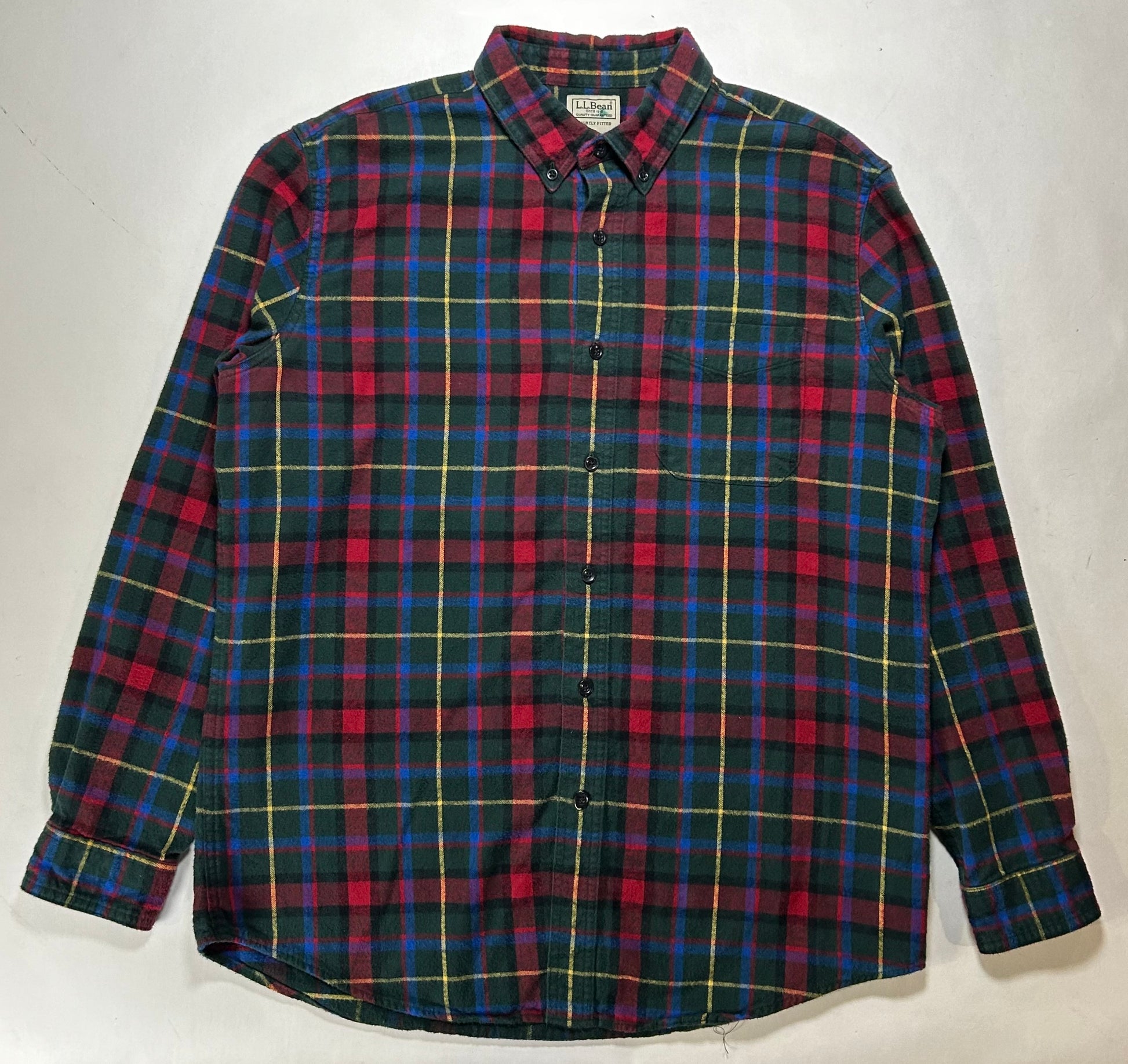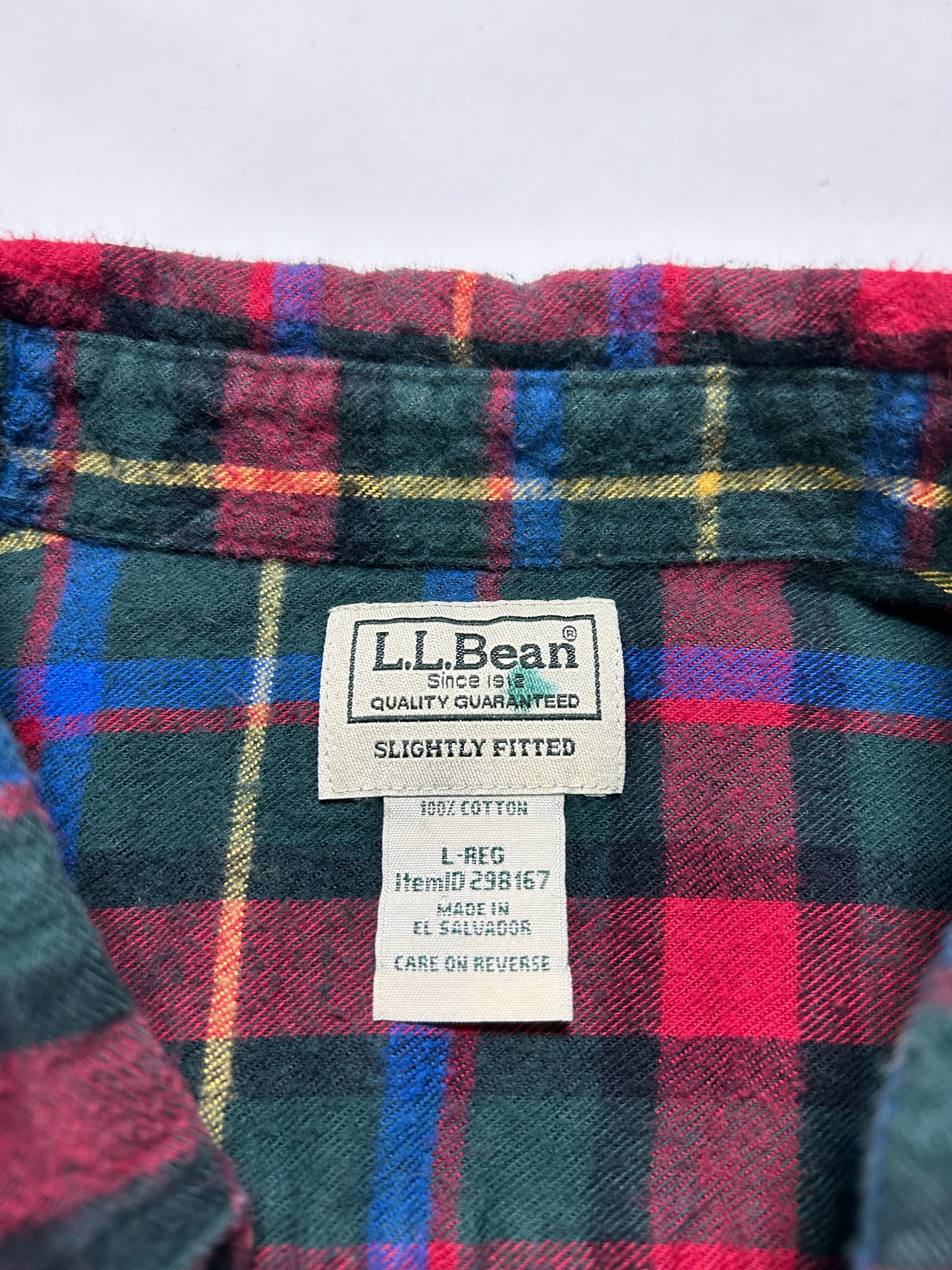 LL Bean Plaid Flannel Multicolor Slightly Fitted Made in El Salvador Large 25x31.5 Inches