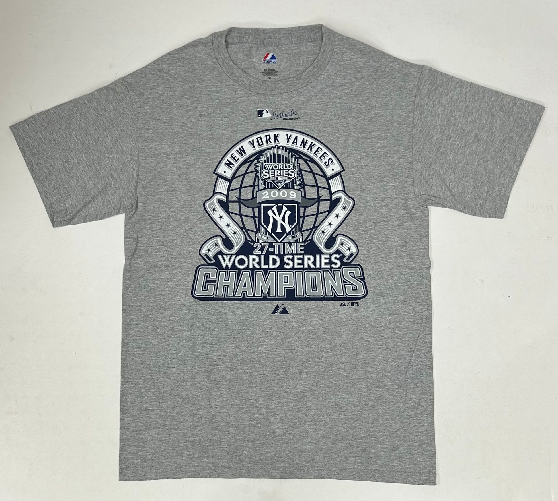 Majestic New York Yankees 2009 MLB World Series 27-Time Champions Tee Tagged Medium 20.5x29.5 Inches
