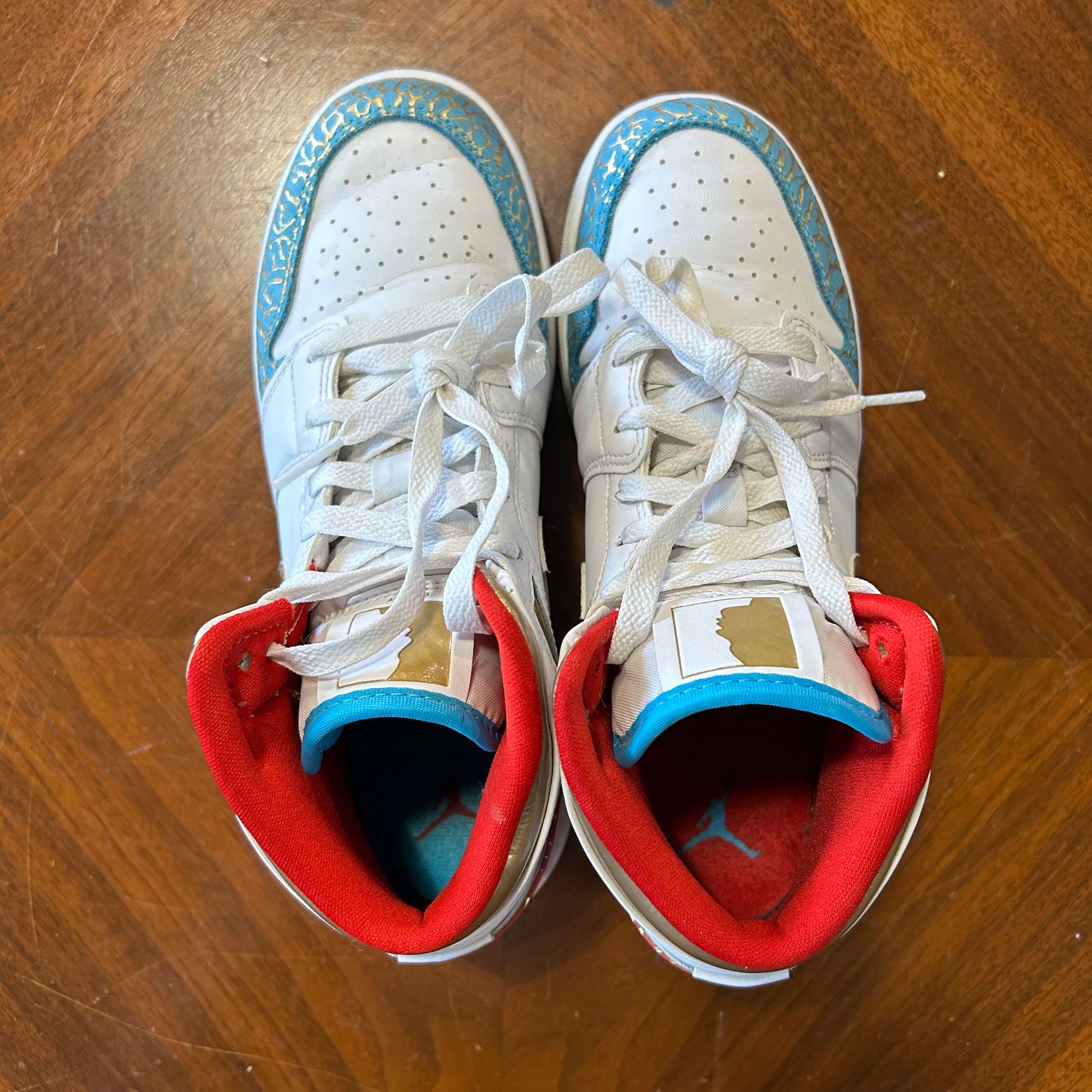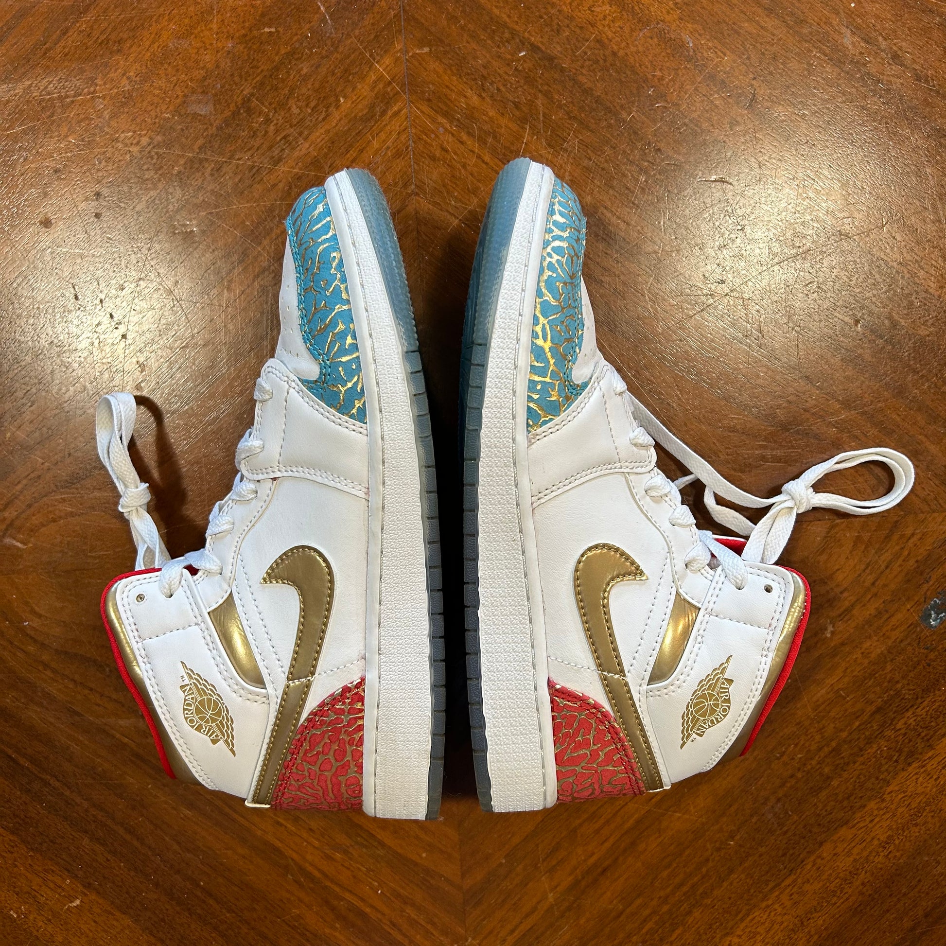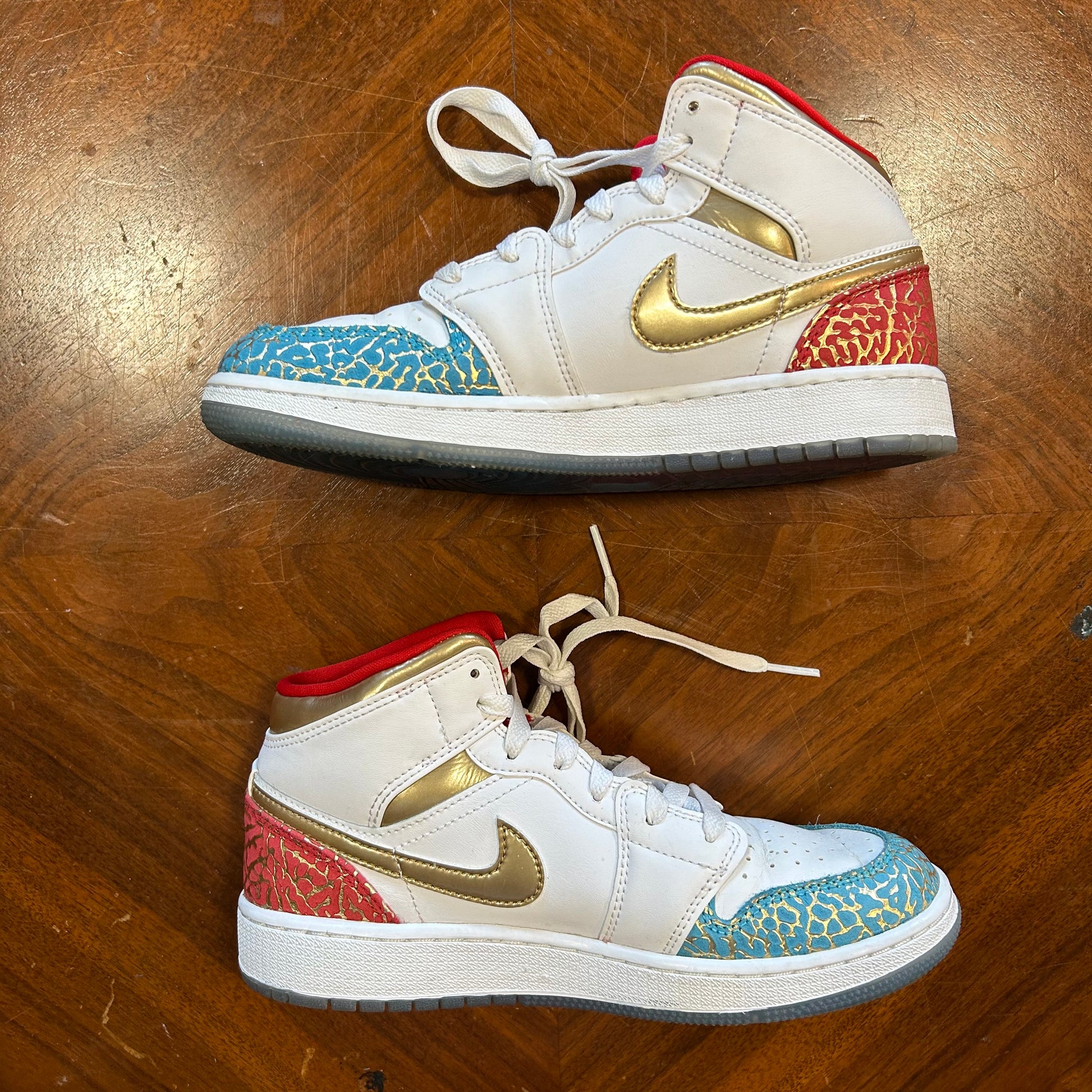 Nike Air Jordan 1 Mid ‘NC to Chicago’ White Metallic Gold GS Size 5.5 FB2212-100