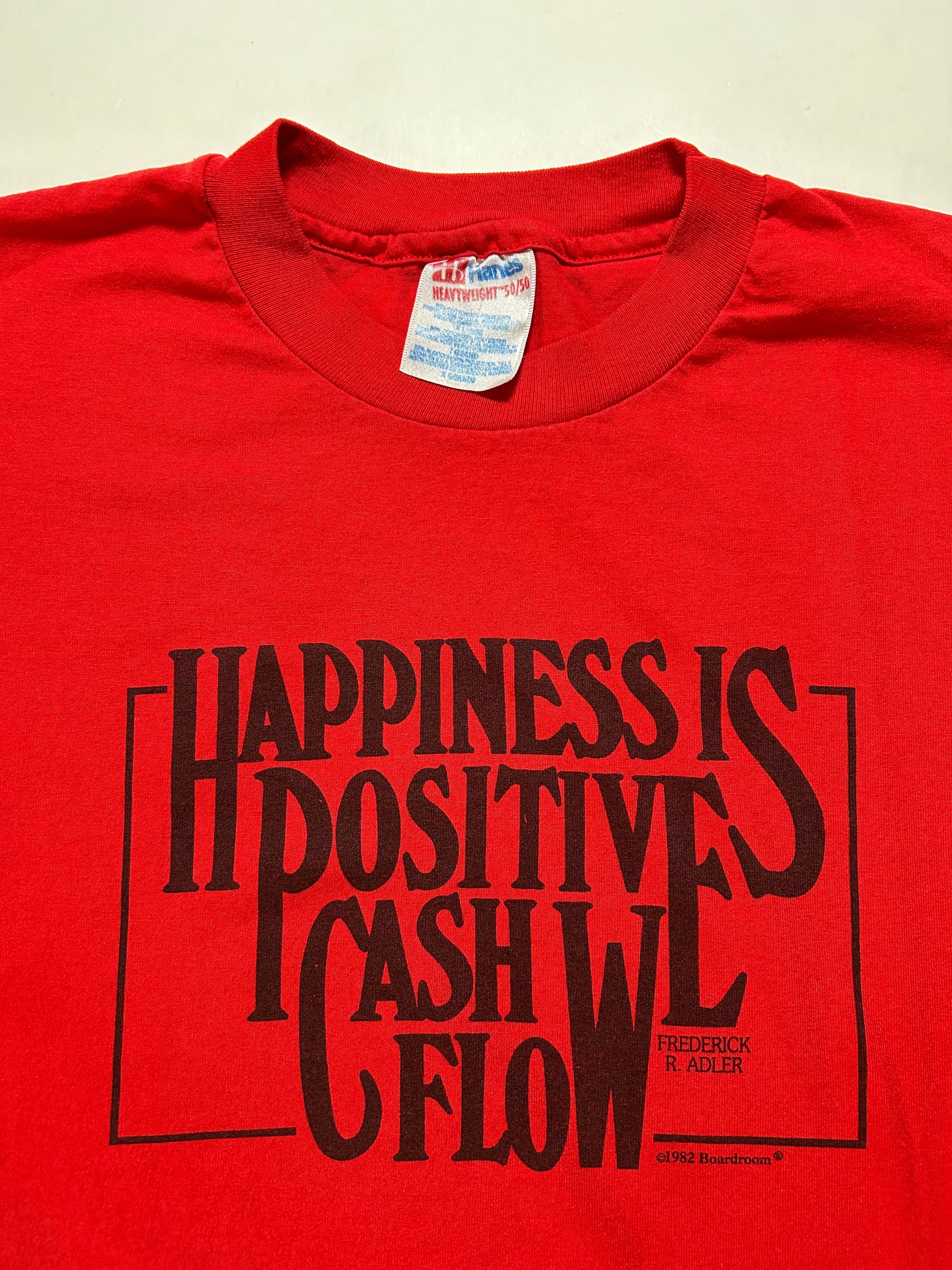 Vintage 90s Happiness Is Positive Cash Flow Frederick R. Adler Boardroom Tee XL 23.5x28.5 Inches Red