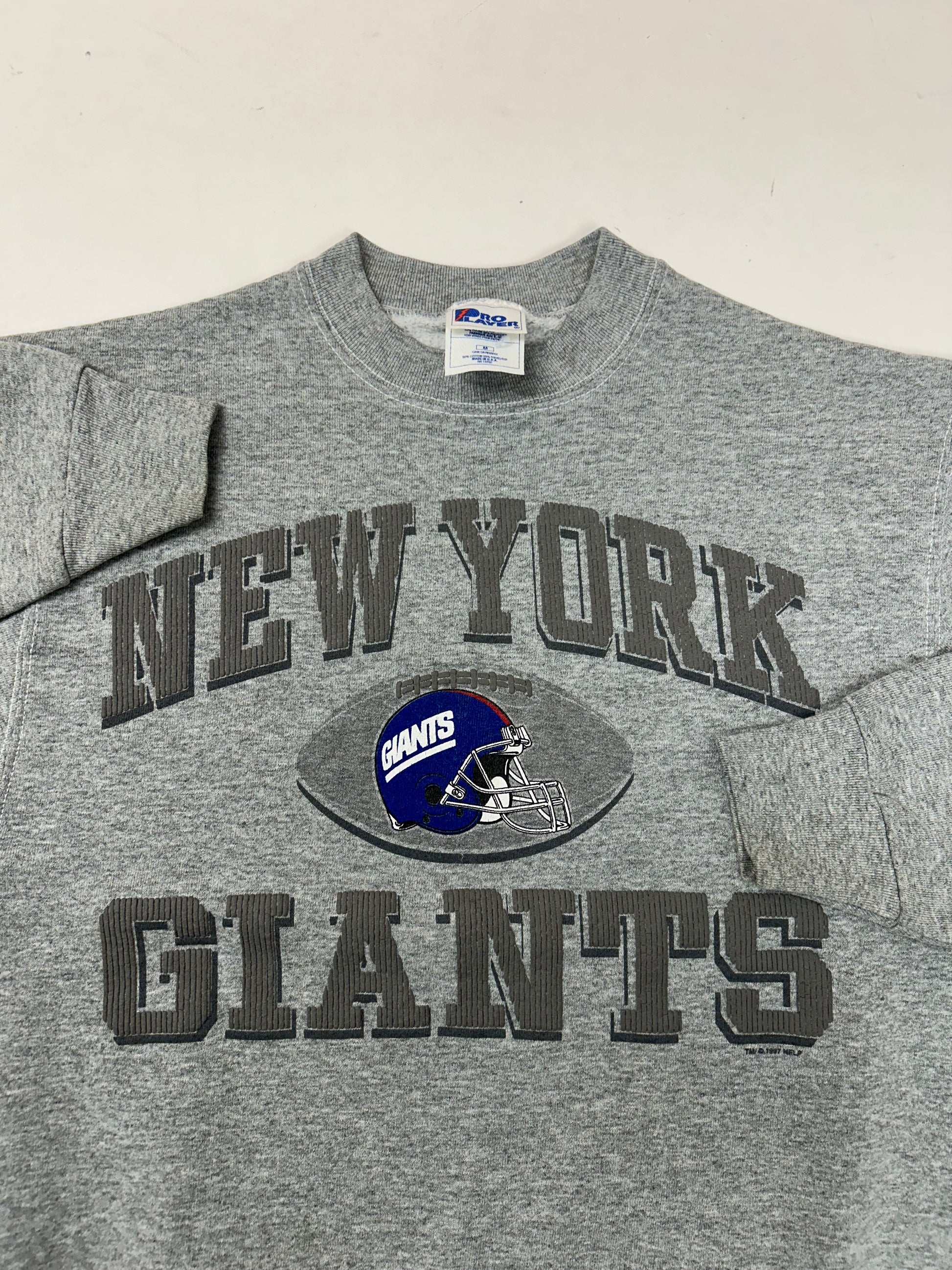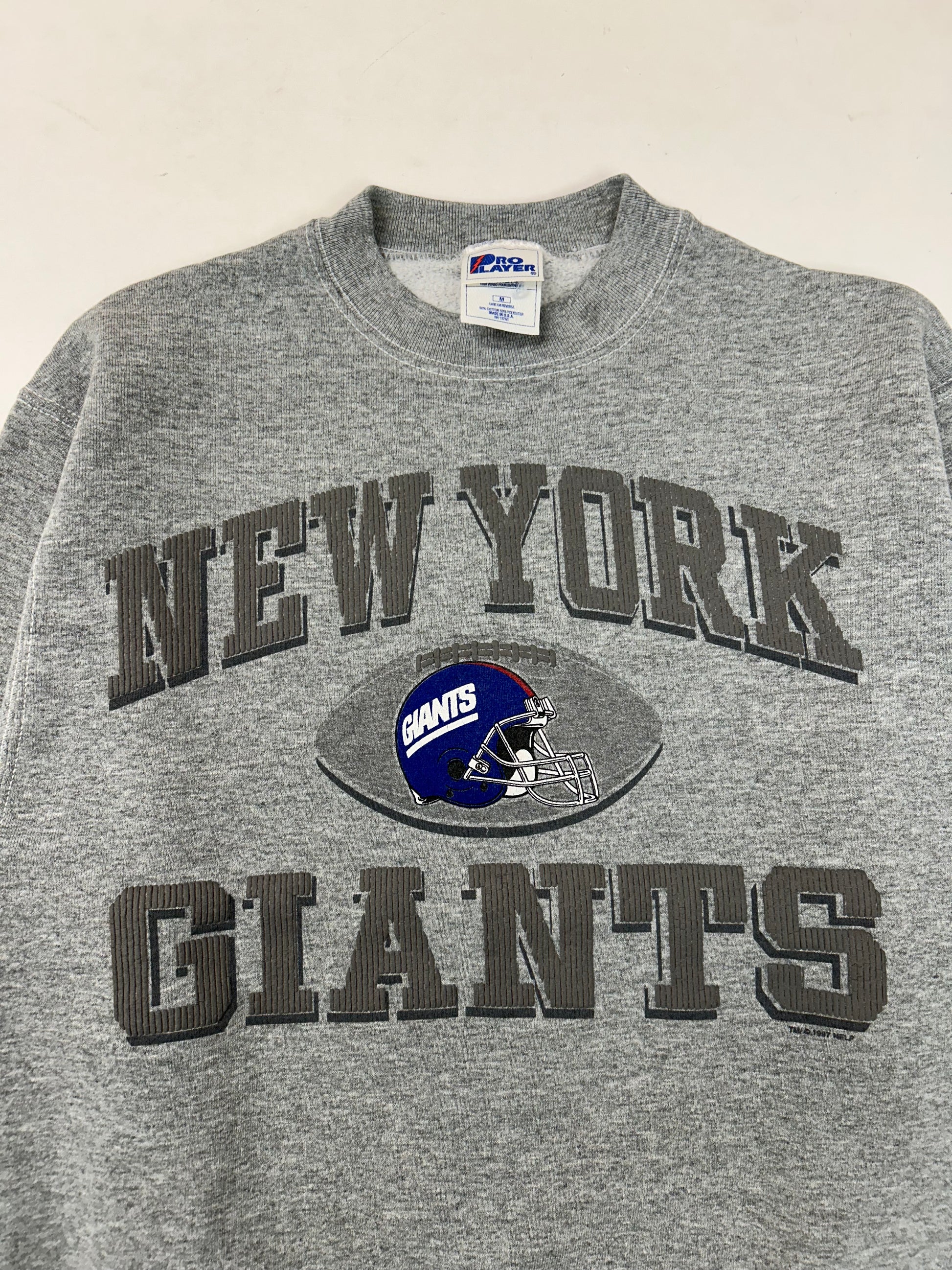 Vintage 1997 Pro Player New York Giants NFL Crewneck Sweatshirt Small/Medium Fit 21.5x26.25 Inches