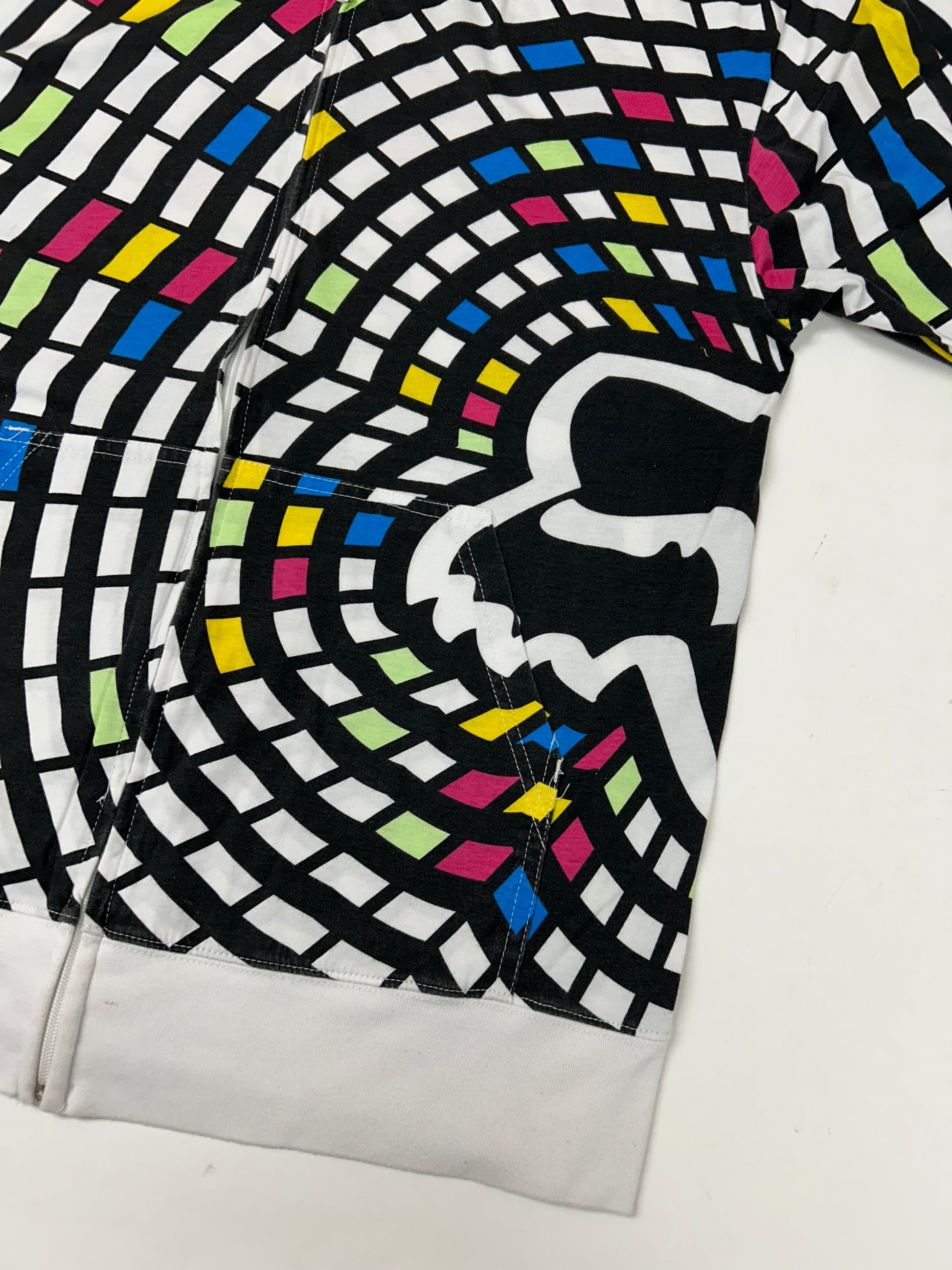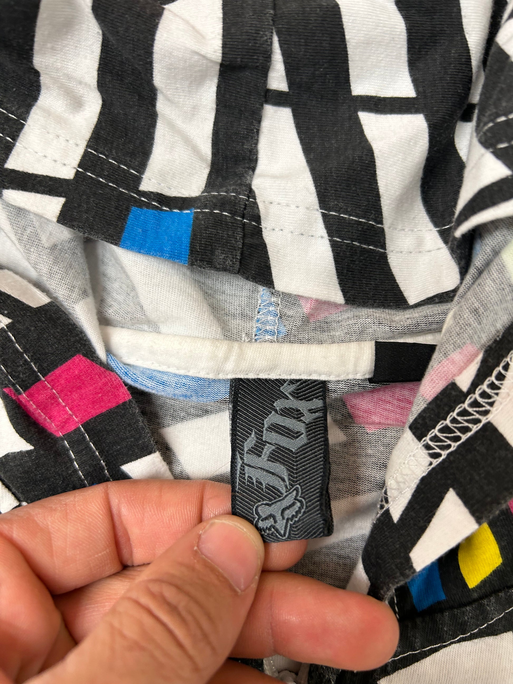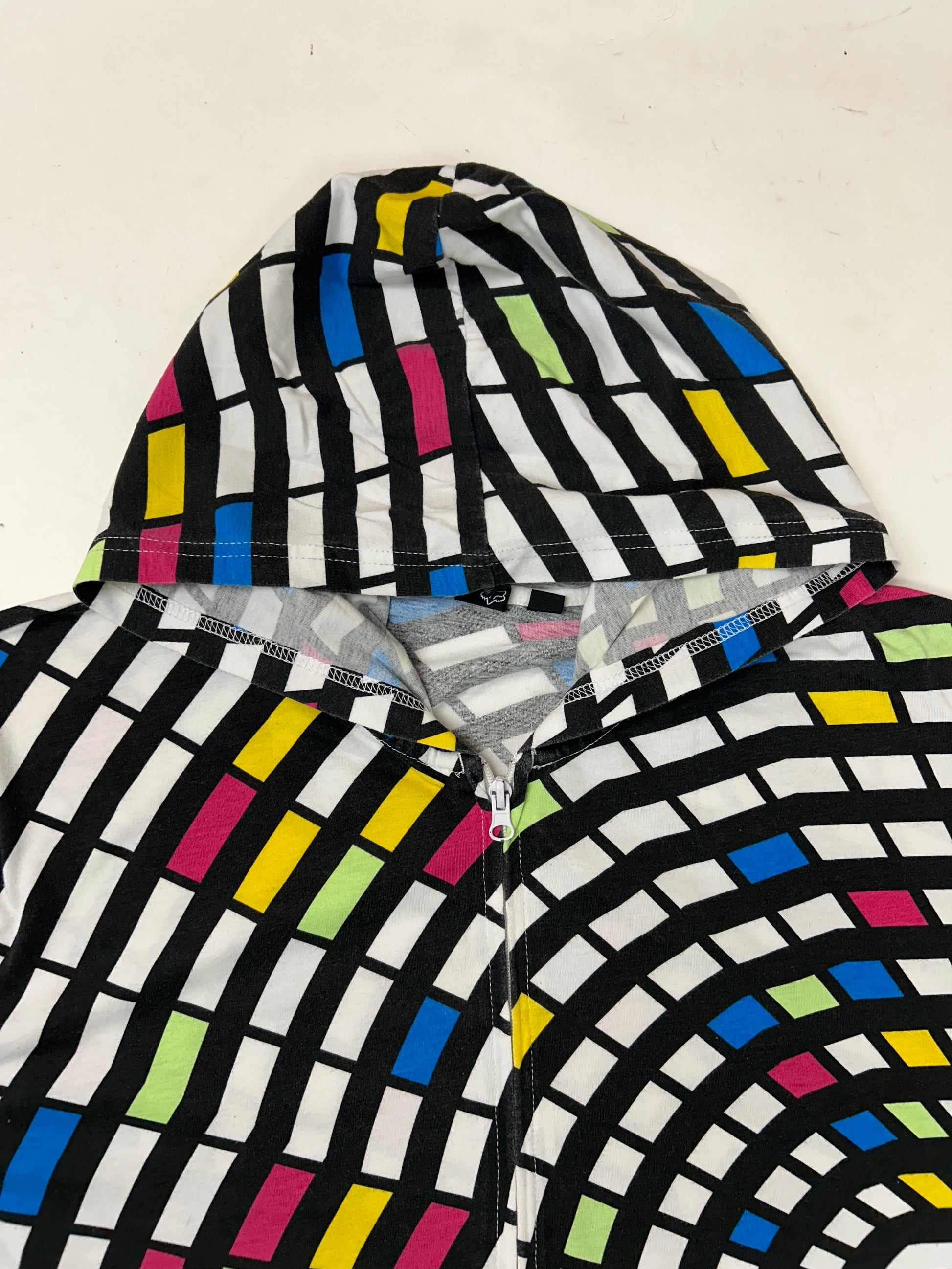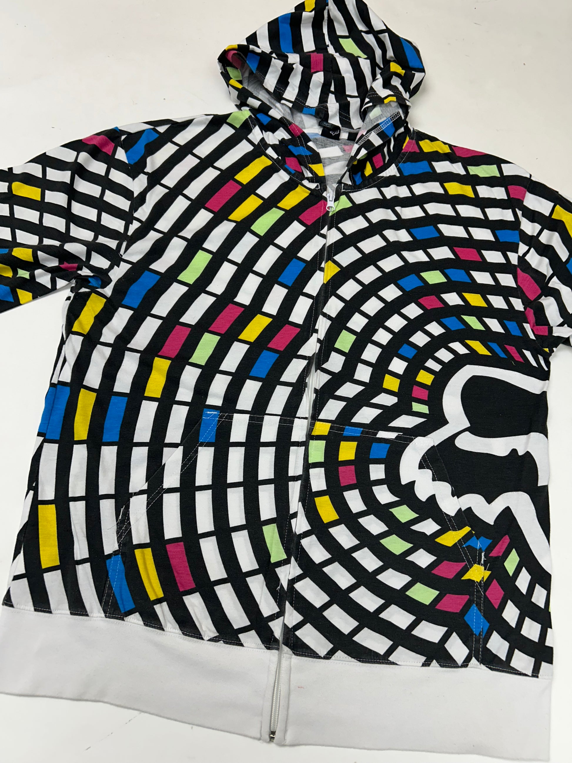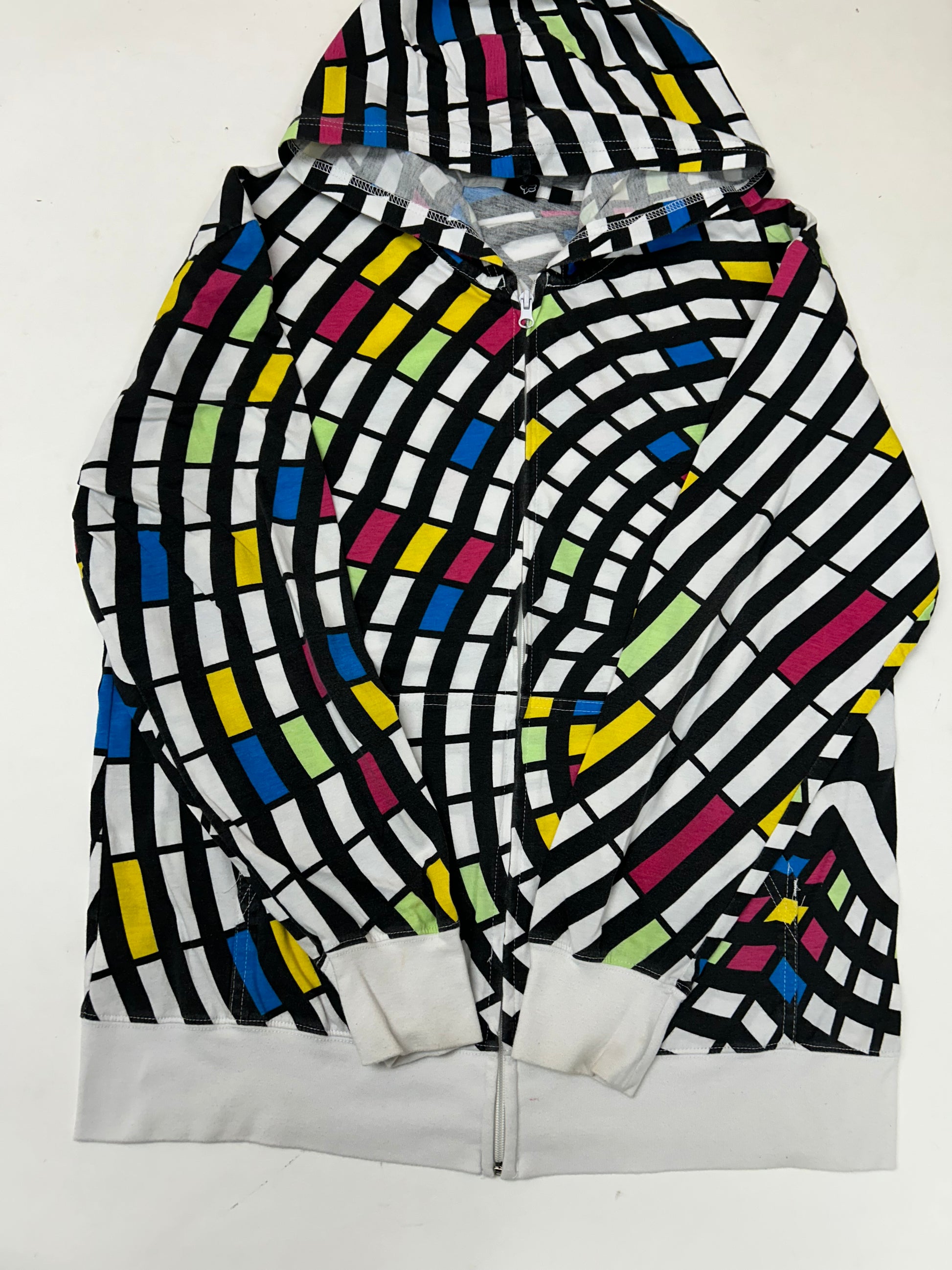 Vintage 00s Fox Racing Motocross Zip Up Abstract Thin Hooded Sweatshirt M/L Fit 22.75x28.75 Inches