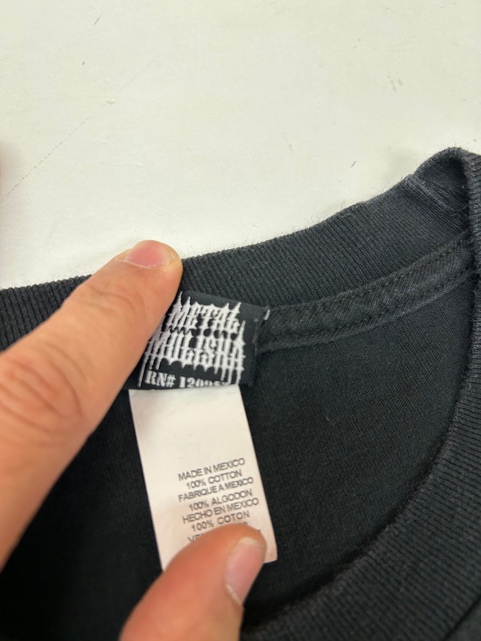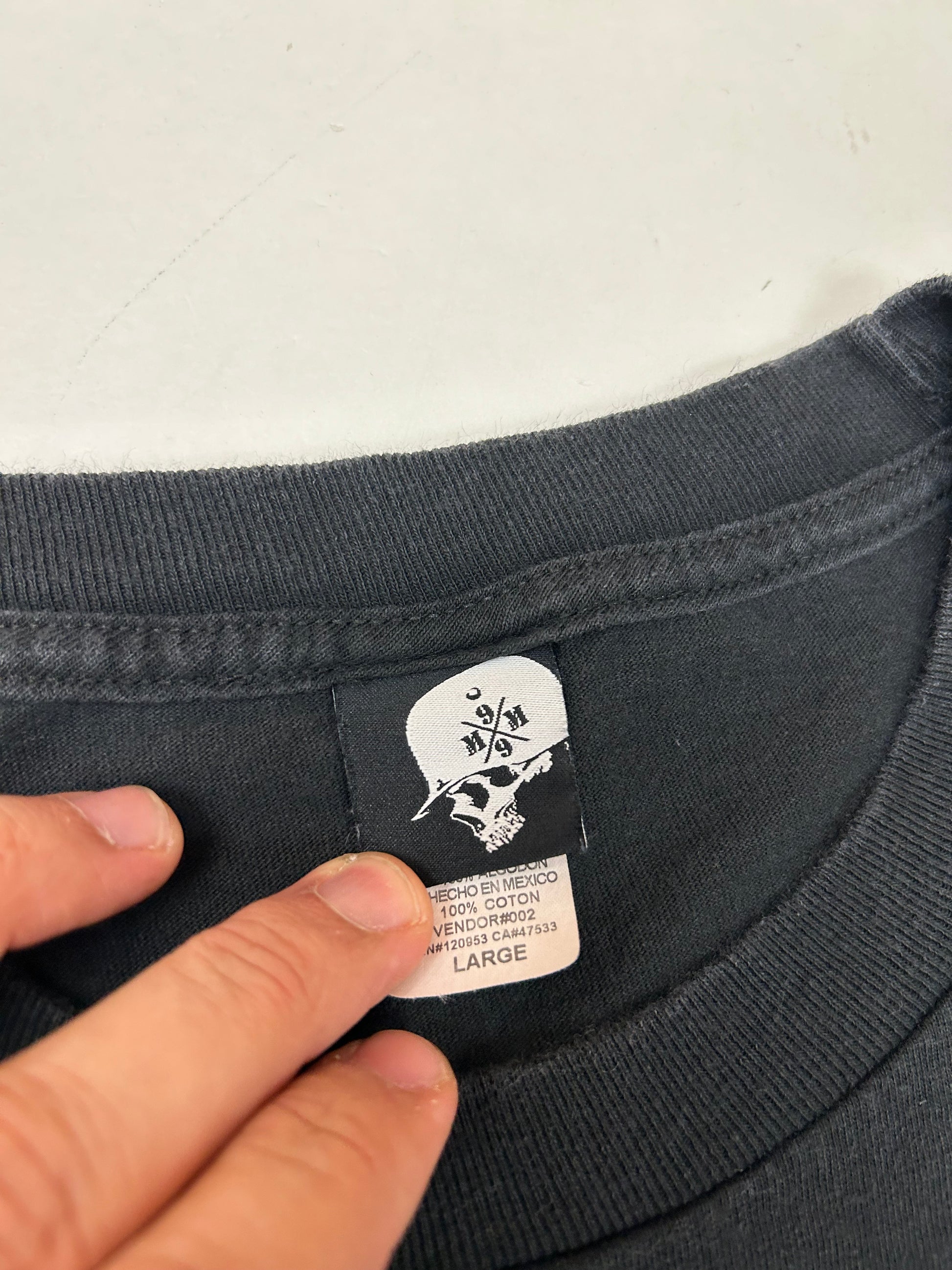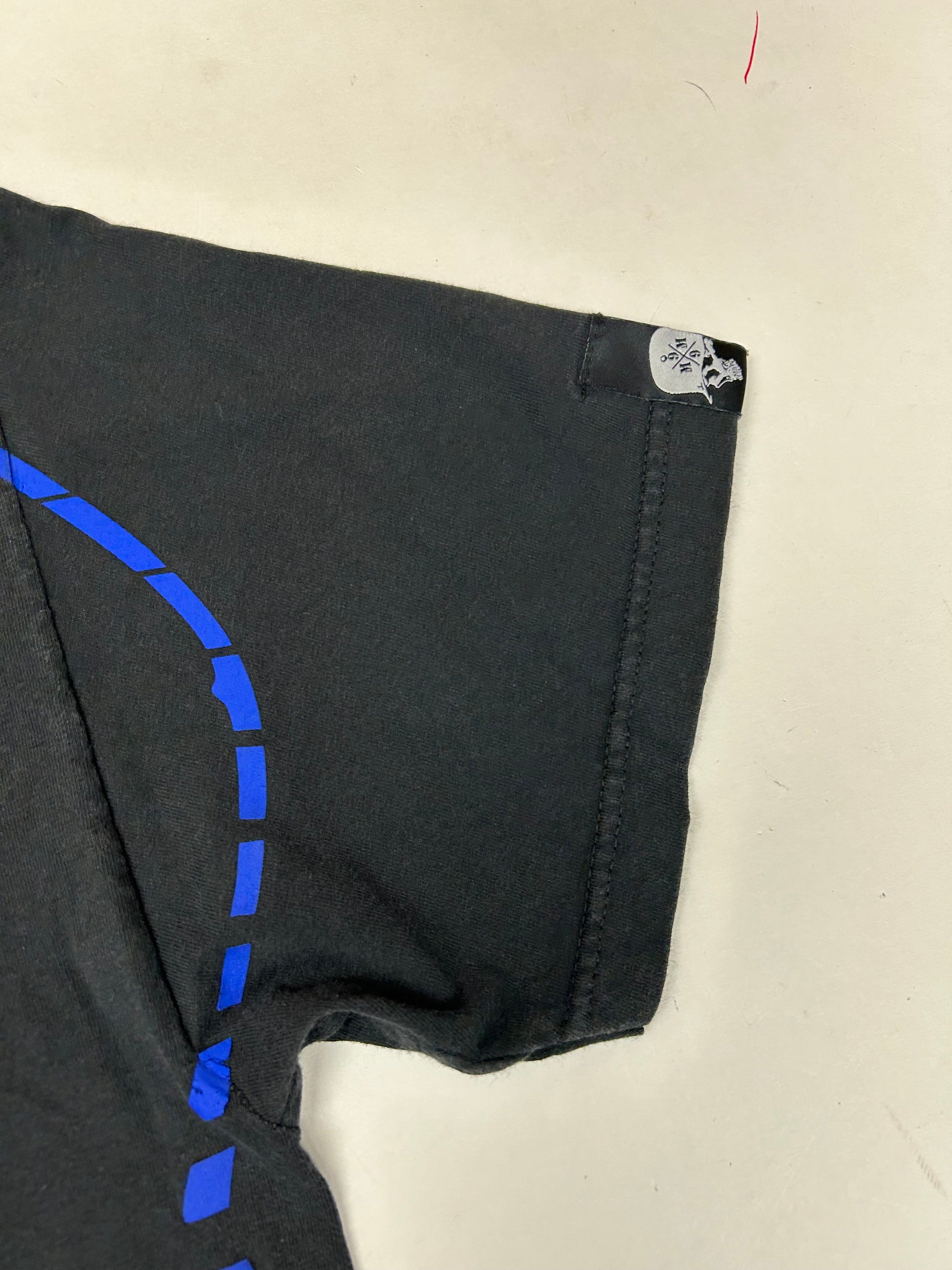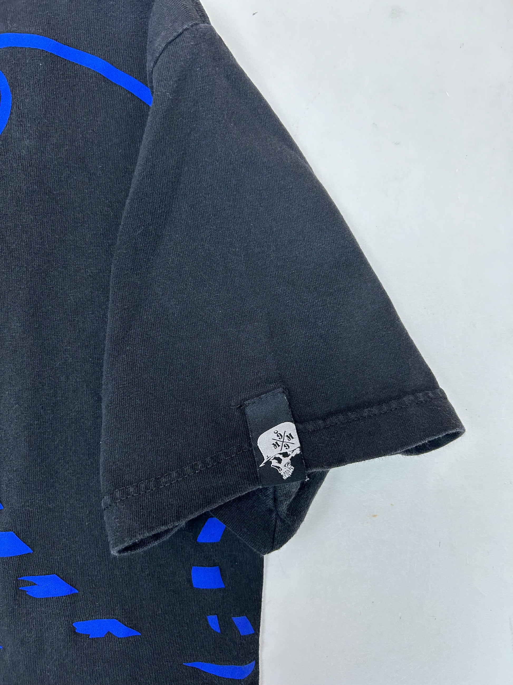 Vintage 00s Metal Mulisha Skull Sergeant Motocross Dirt Biking Shirt Large 21.5x30 Inches Black/Blue