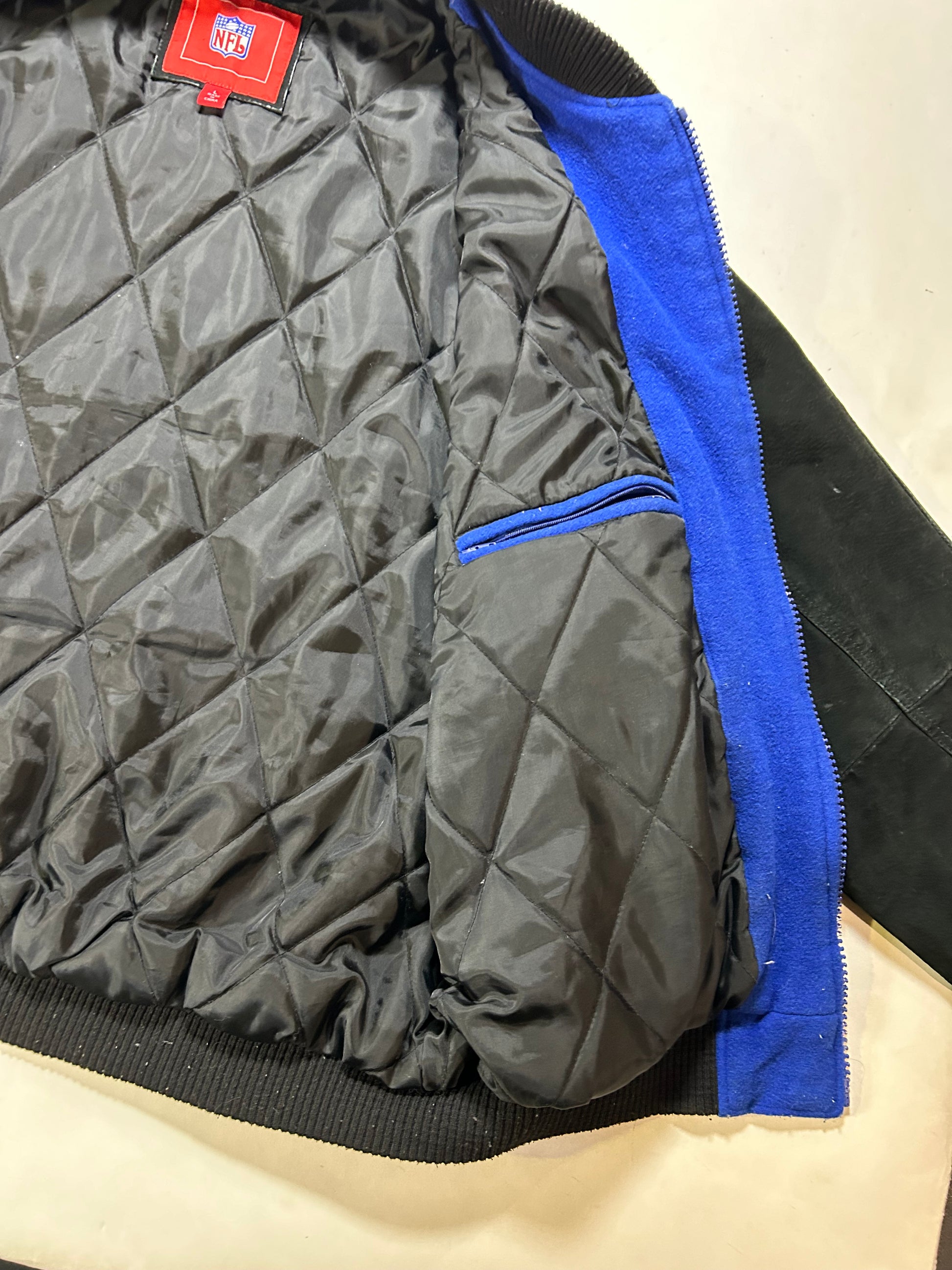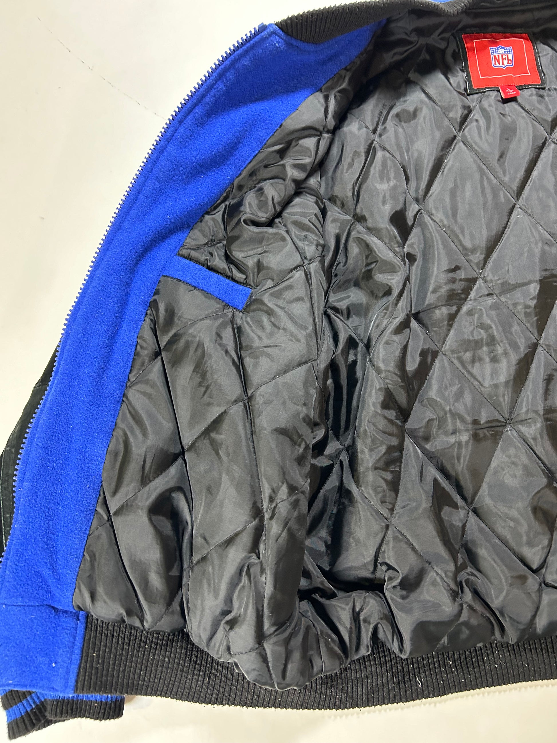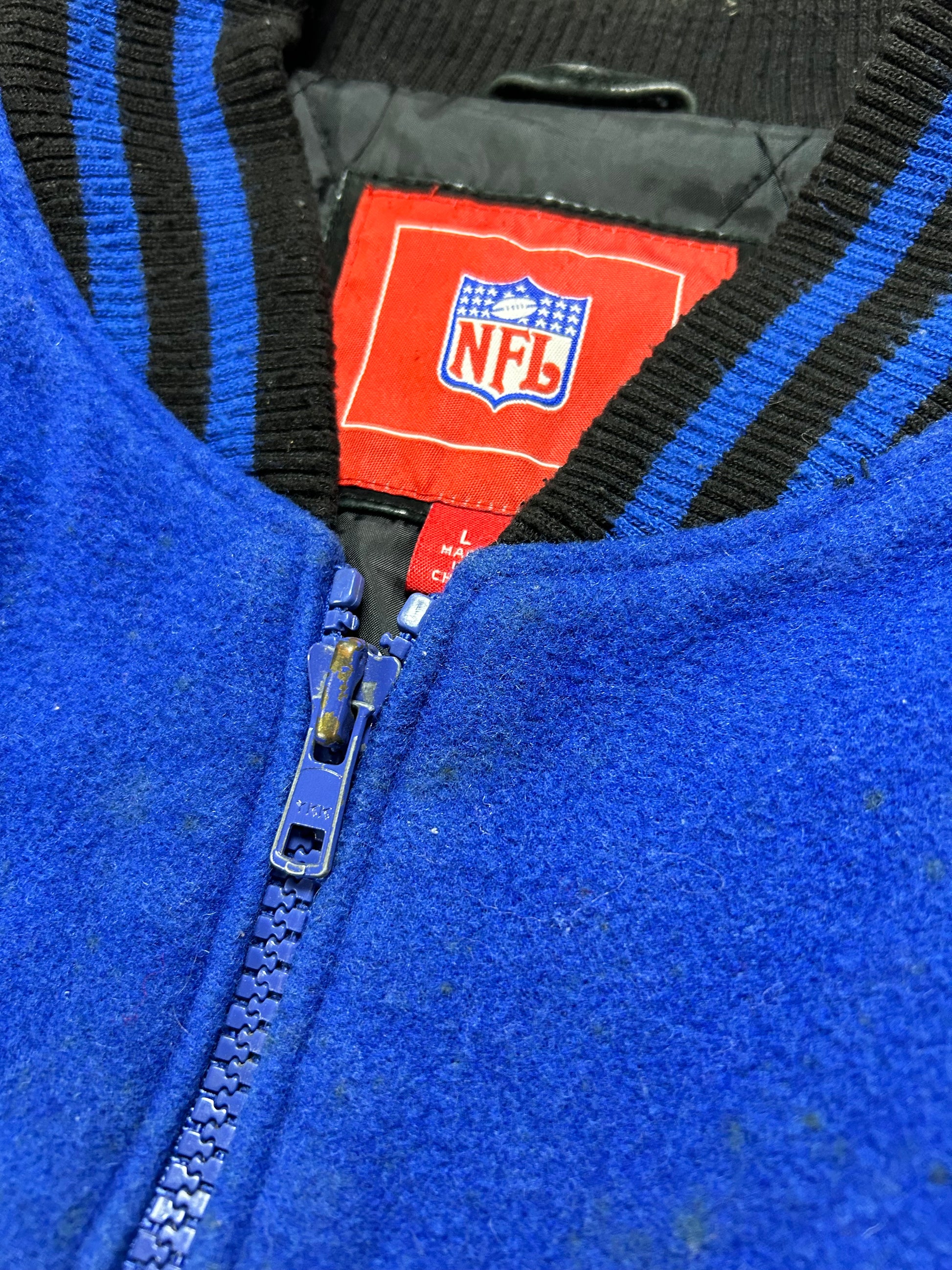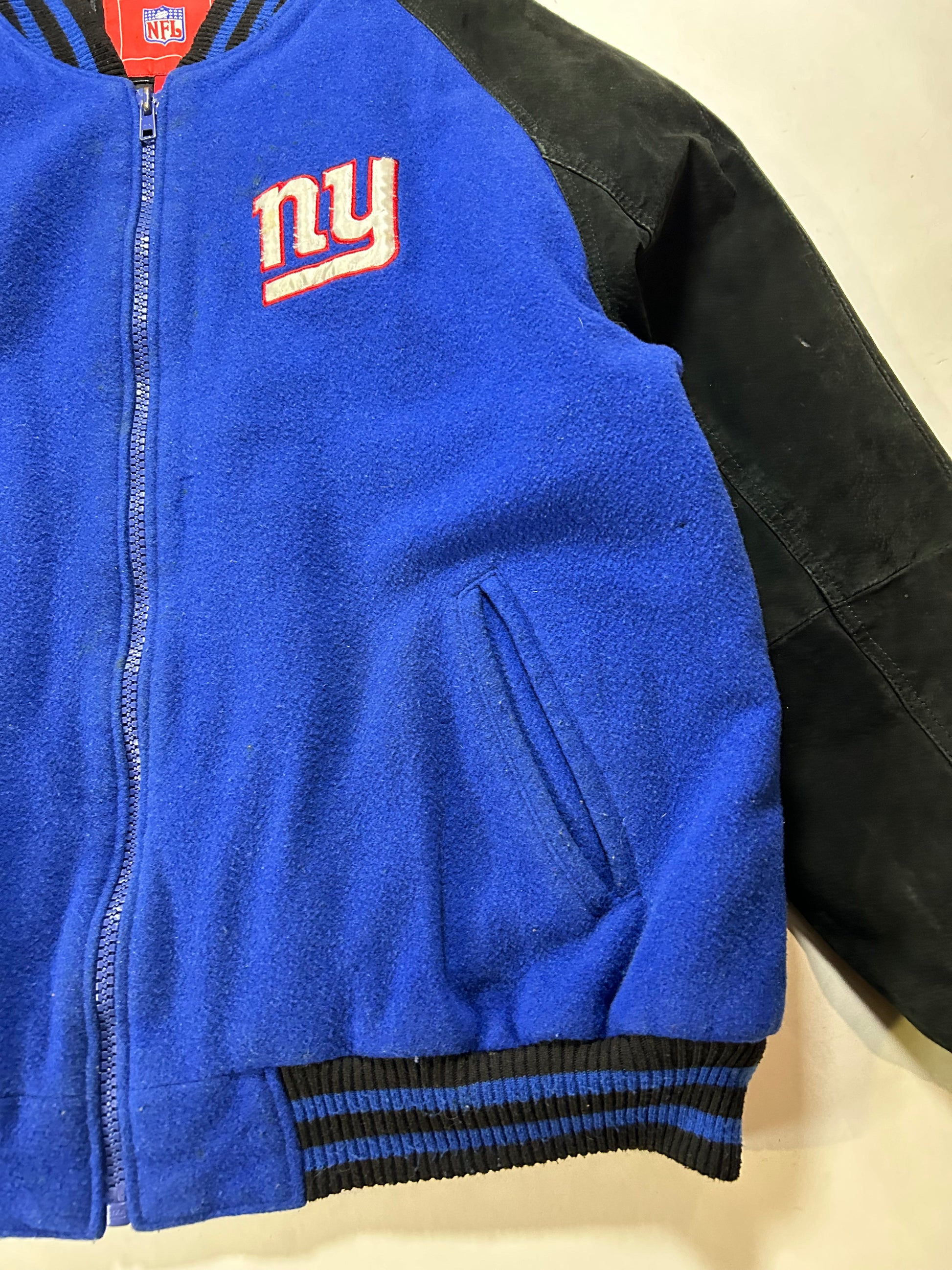 Vintage 00s NFL New York Giants Zip Varsity Jacket Style Jacket Large 27.25x28.75 Inches Has Wear As Is
