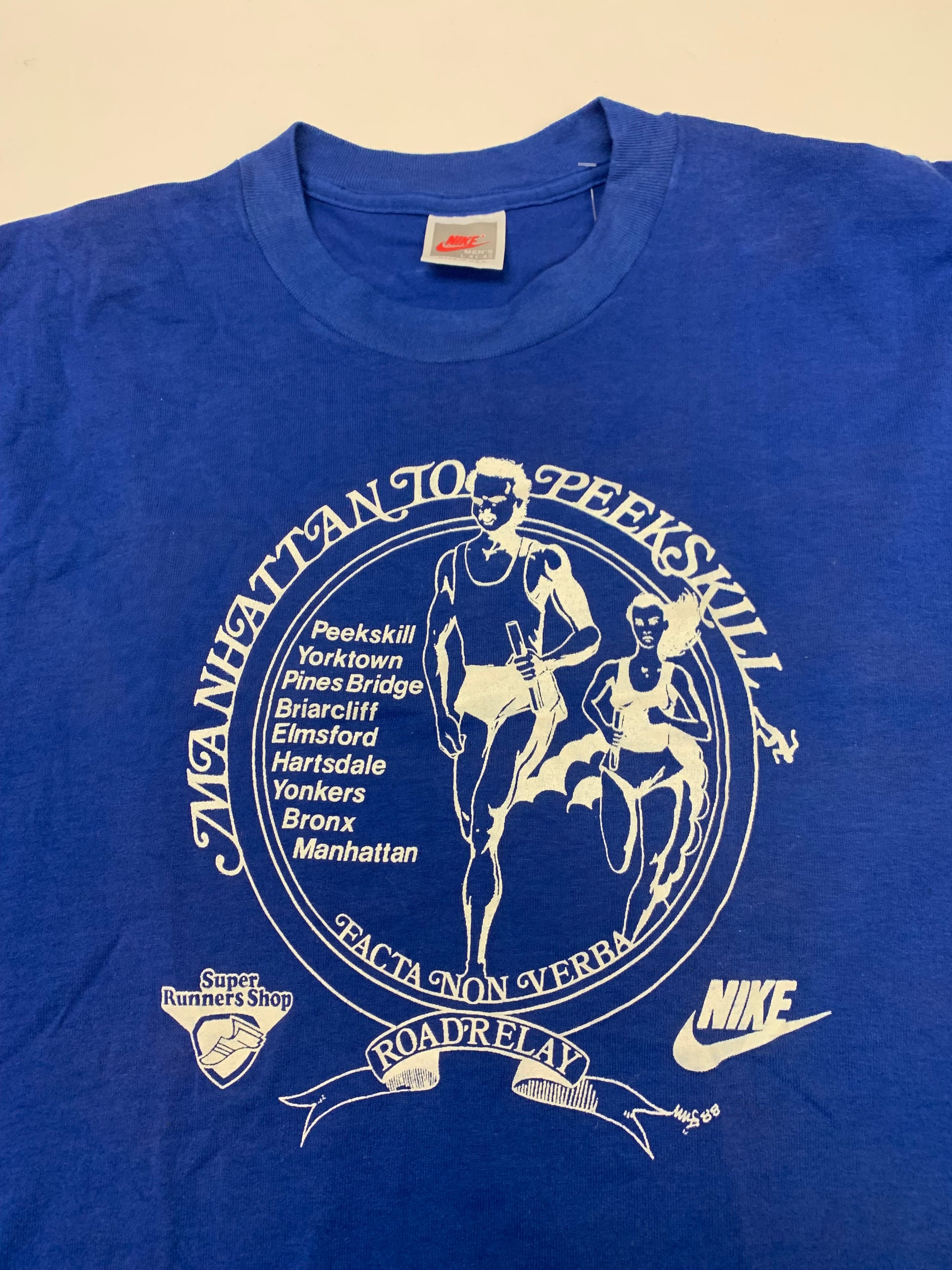 Vintage 1988 Nike Manhattan To Peekskill New York Road Relay Running Tee 19.75x28.5 Inches