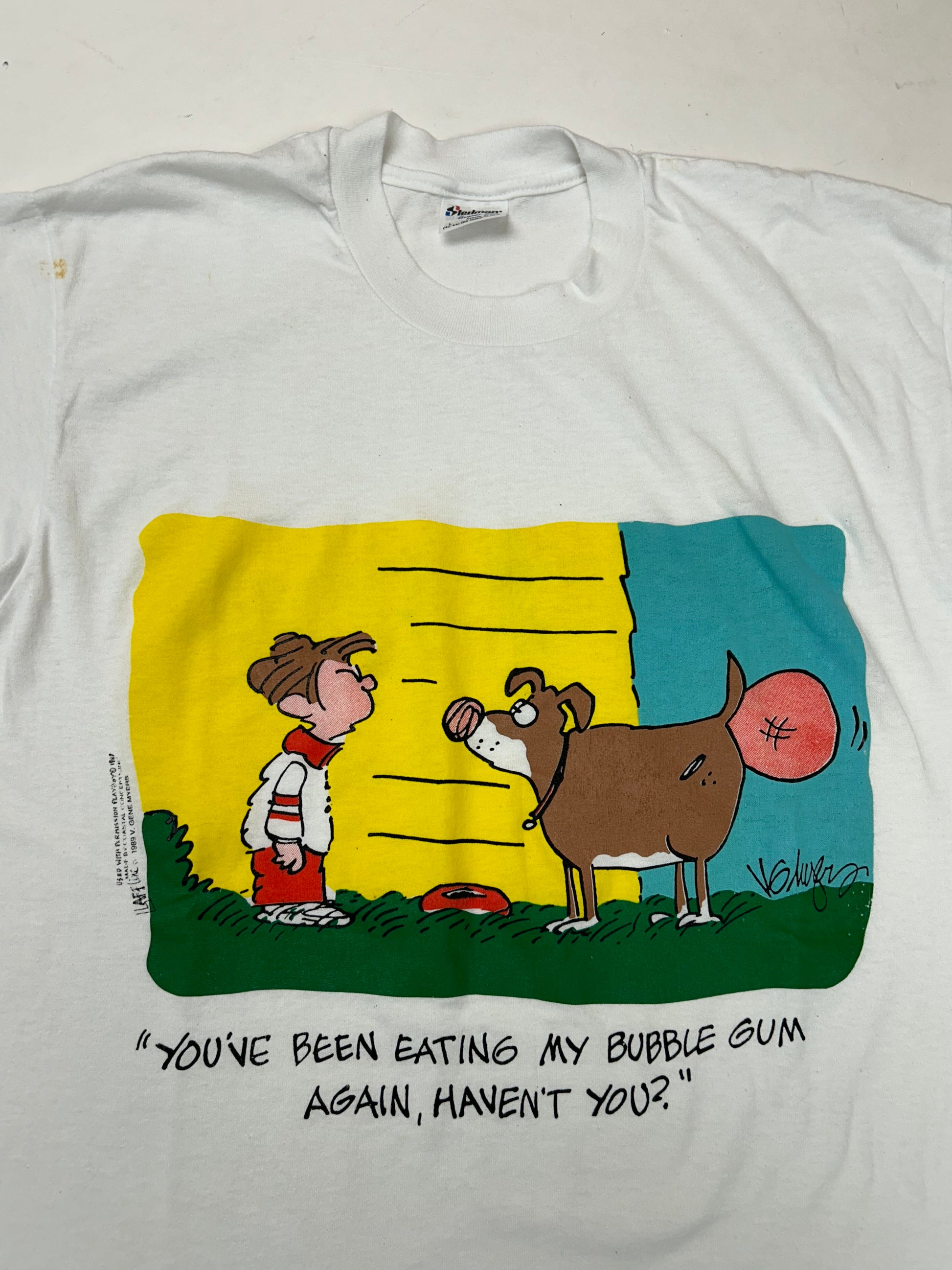 Vintage 1989 You’ve Been Eating My Bubble Gun Again, Haven’t You? Farting Dog Tee M/L 20.5x28 Inches As Is Has Flaws