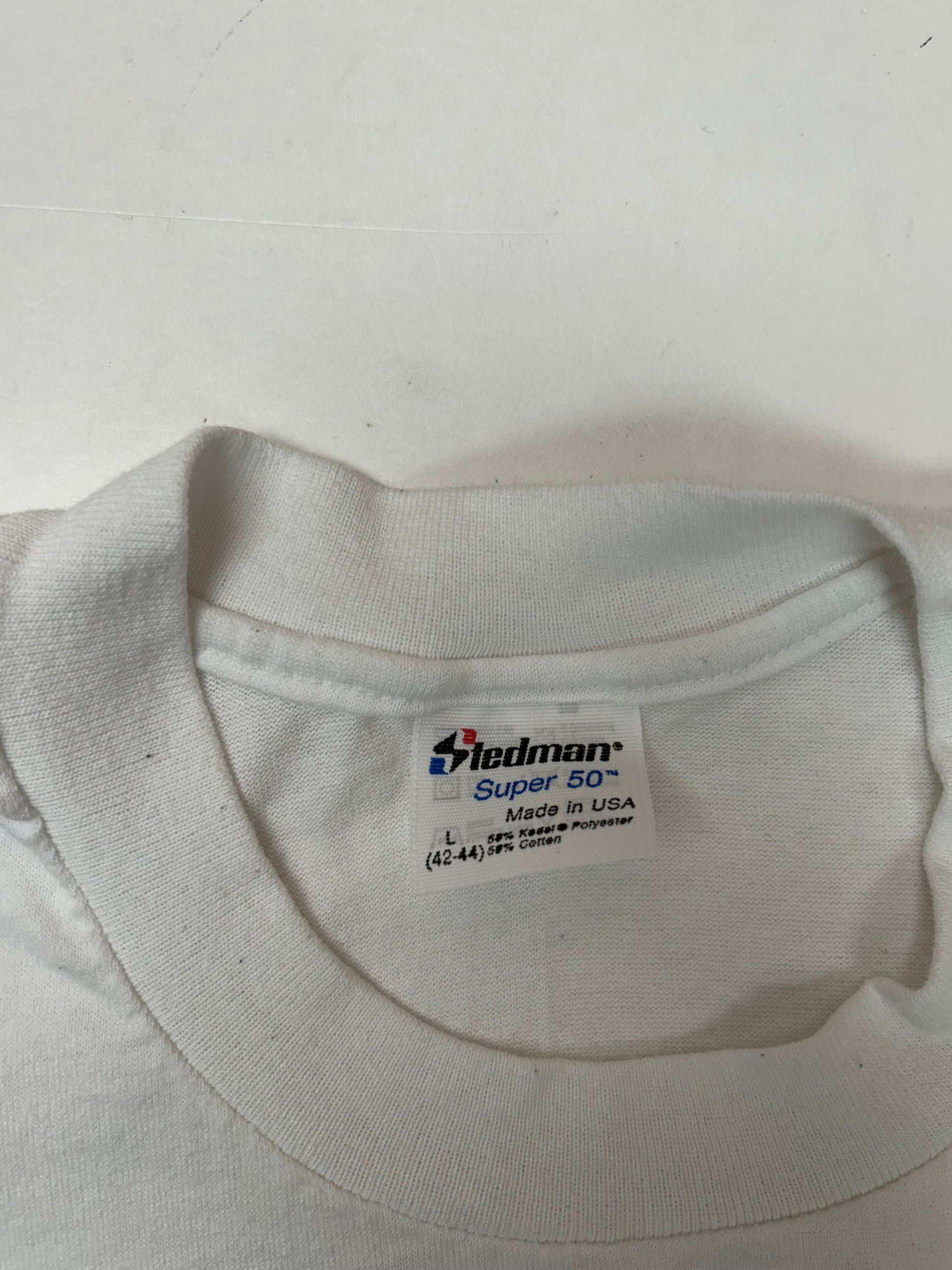 Made In USA 50% Cotton 50% Polyester.