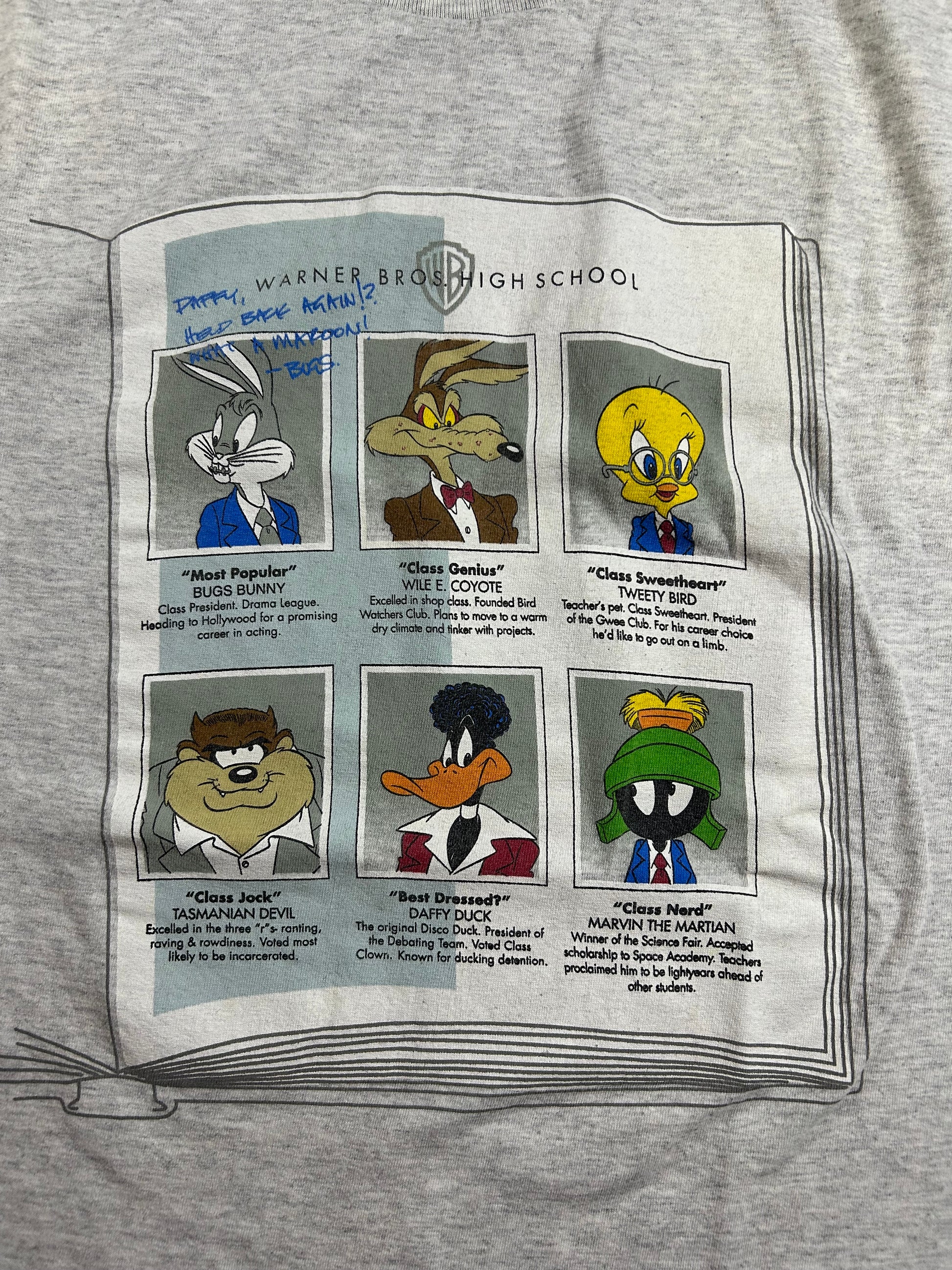 Vintage 1998 Warner Bros. High School Pictures Looney Tunes Tee Large 21.25x29.25 Inches