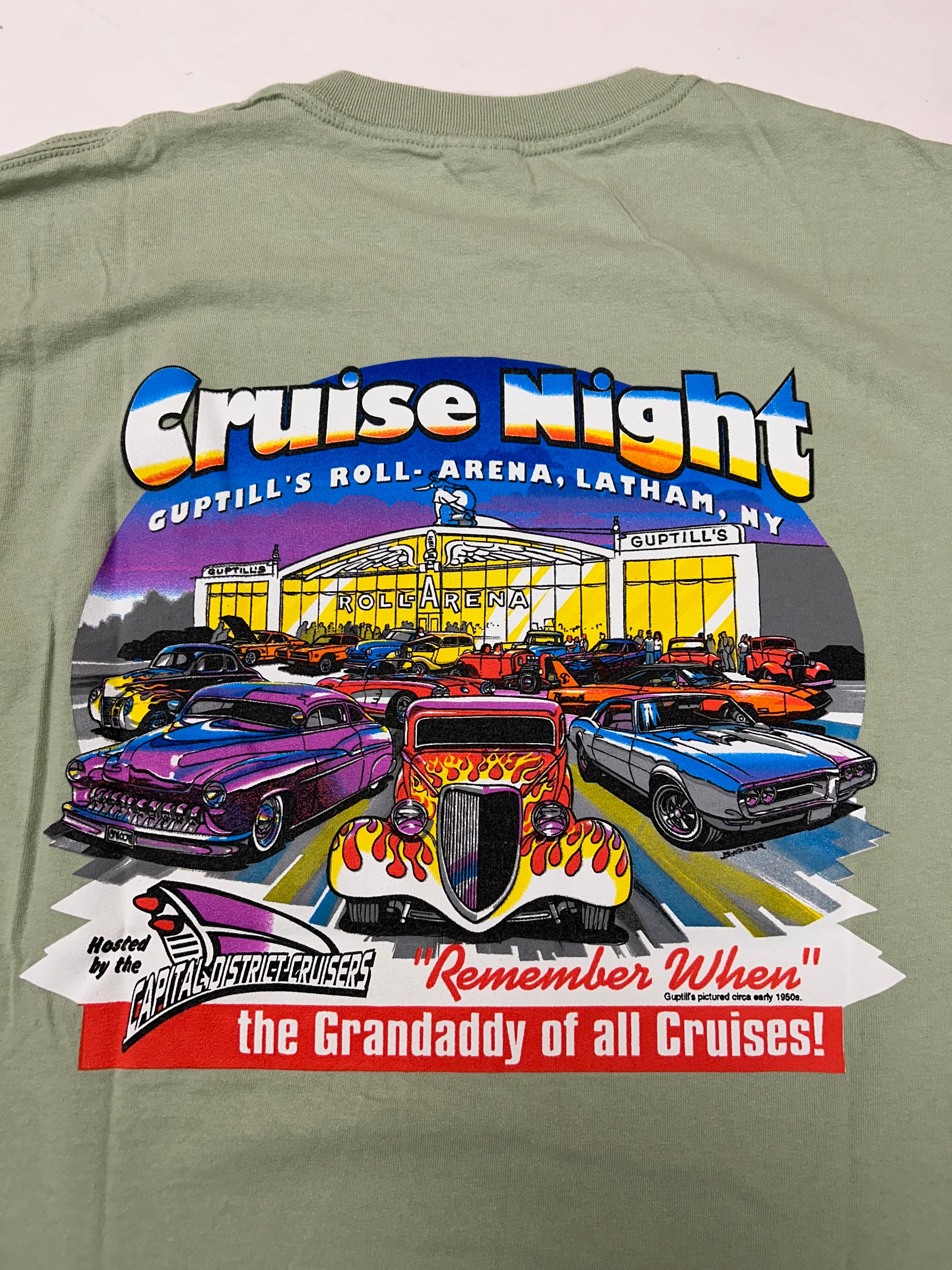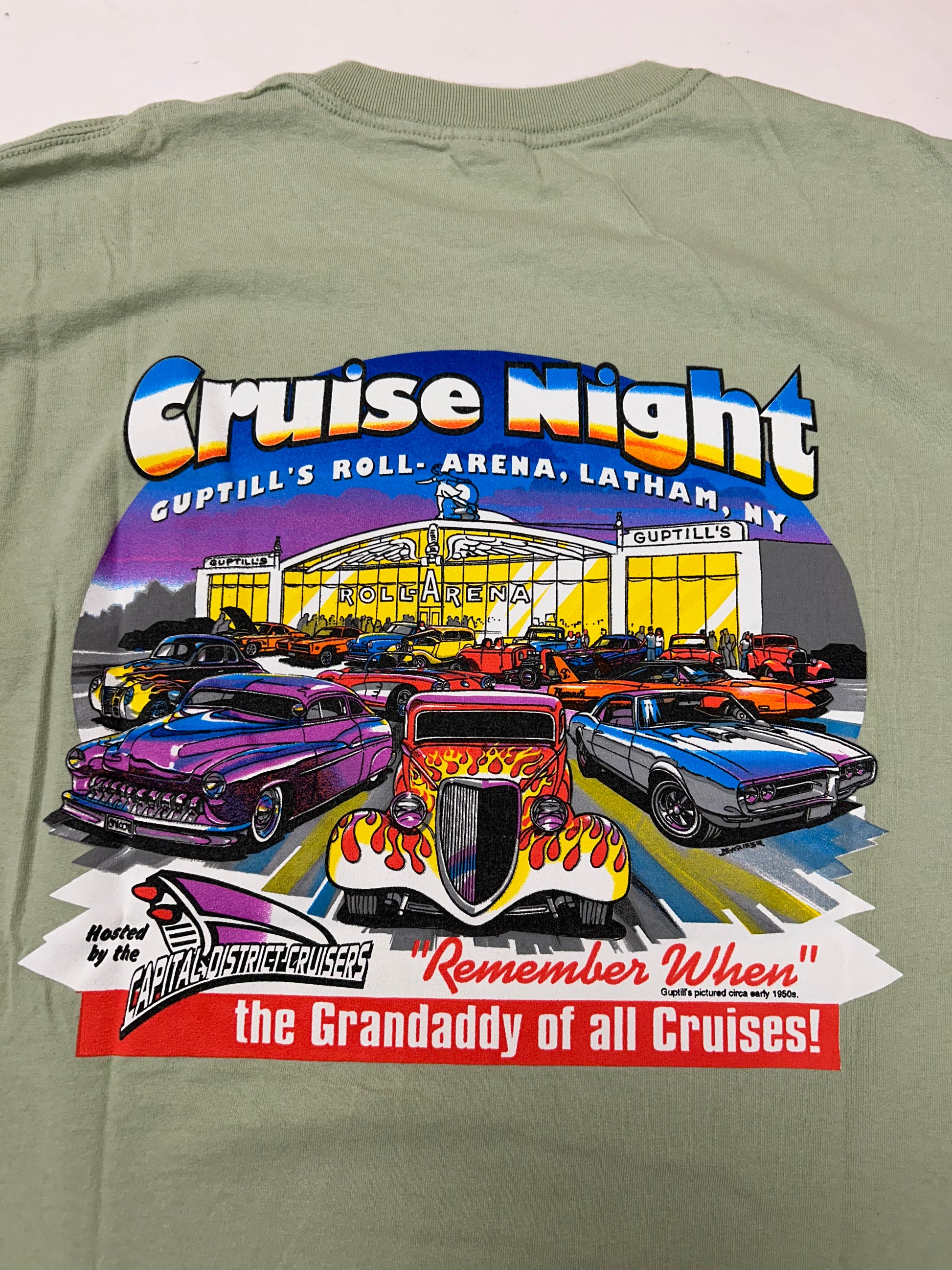Vintage 2000s Cruise night Guptill’s Roll Arena Latham, NY Capital District Cruisers Car Event Tee Green Large 21.5x29.75 Inches