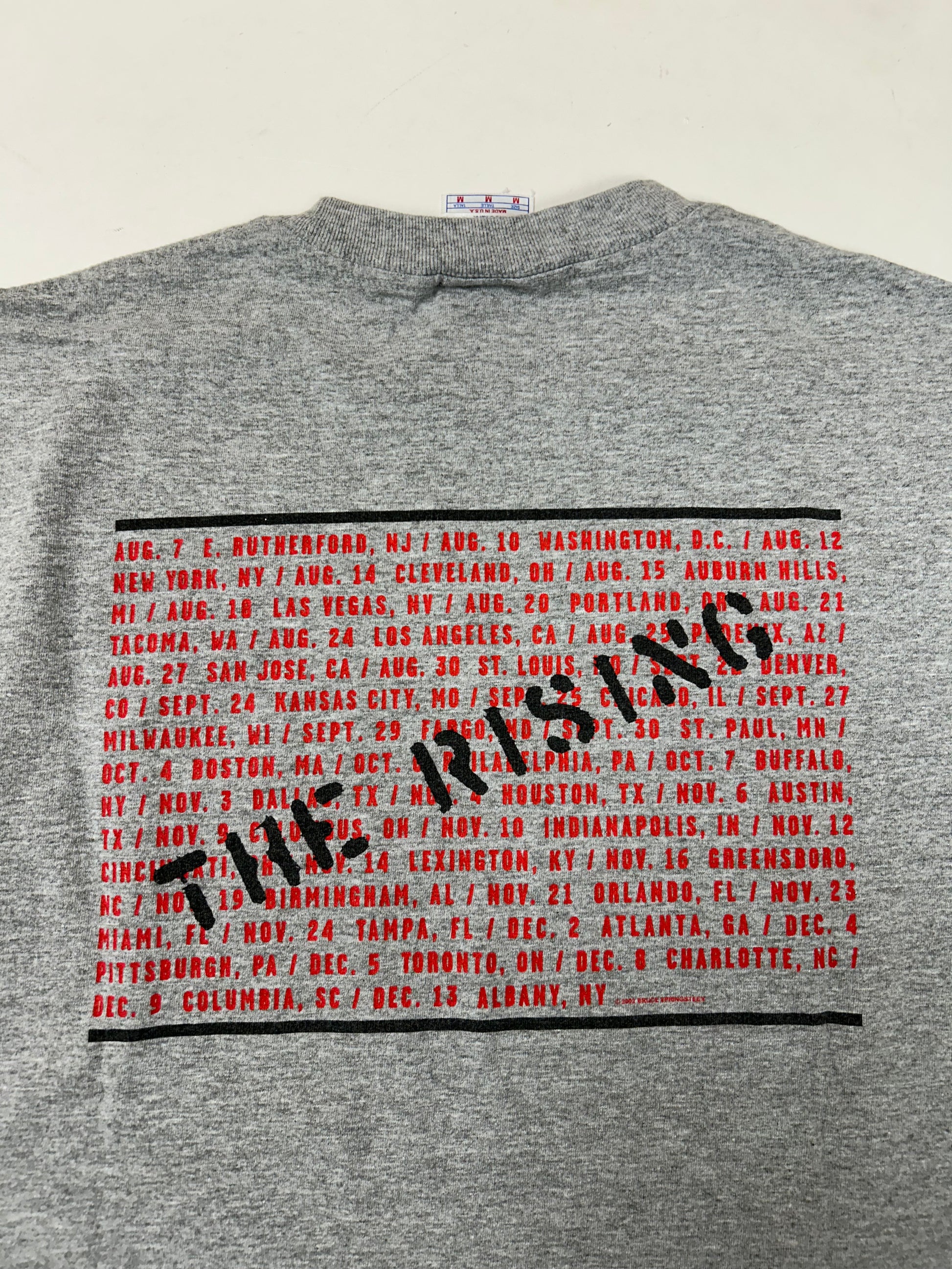 Vintage 2002 Bruce Springsteen & The E Street Band The Rising Tour Music Band Tee Gray Medium 19.25x27.25 Inches