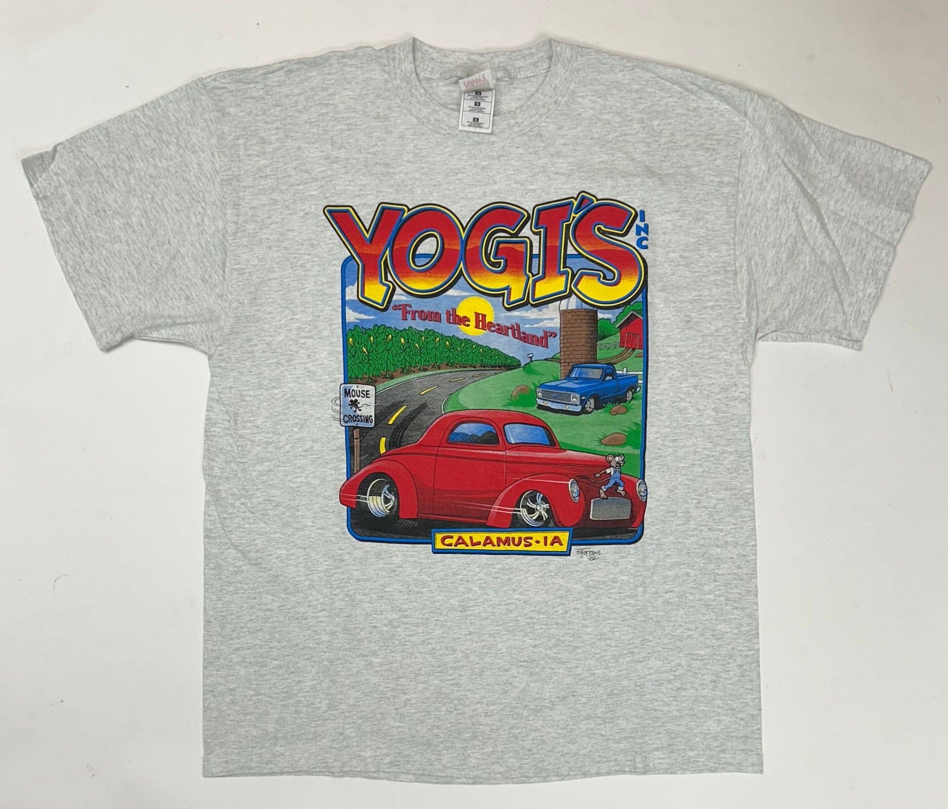 Vintage 2002 Yogi’s Inc From The Heartland Calamus, IA Vehicle Graphic Tee XL 22.75x30.5 Inches Gray