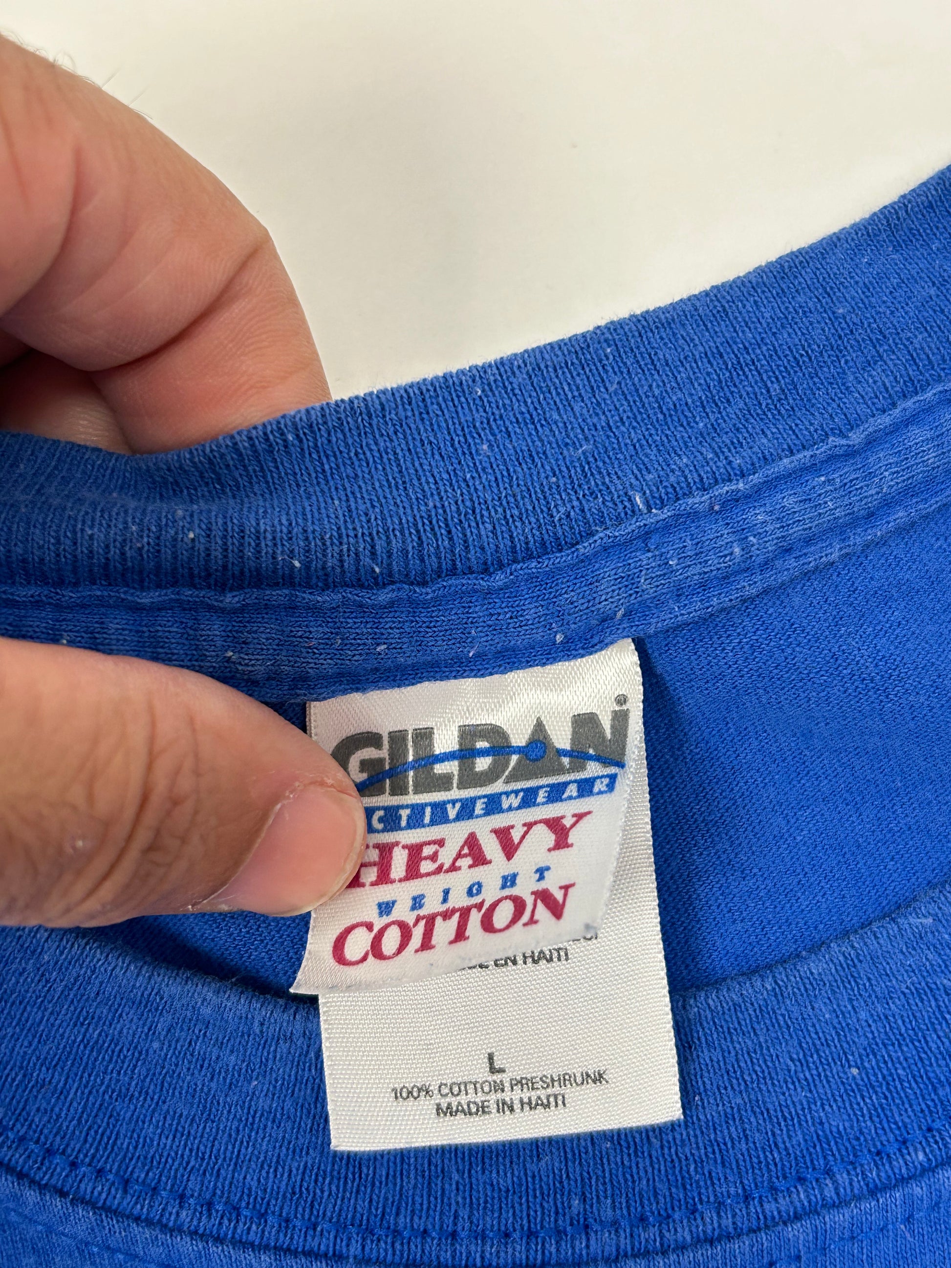 Gildan Tag Made In Haiti 100% Cotton.
