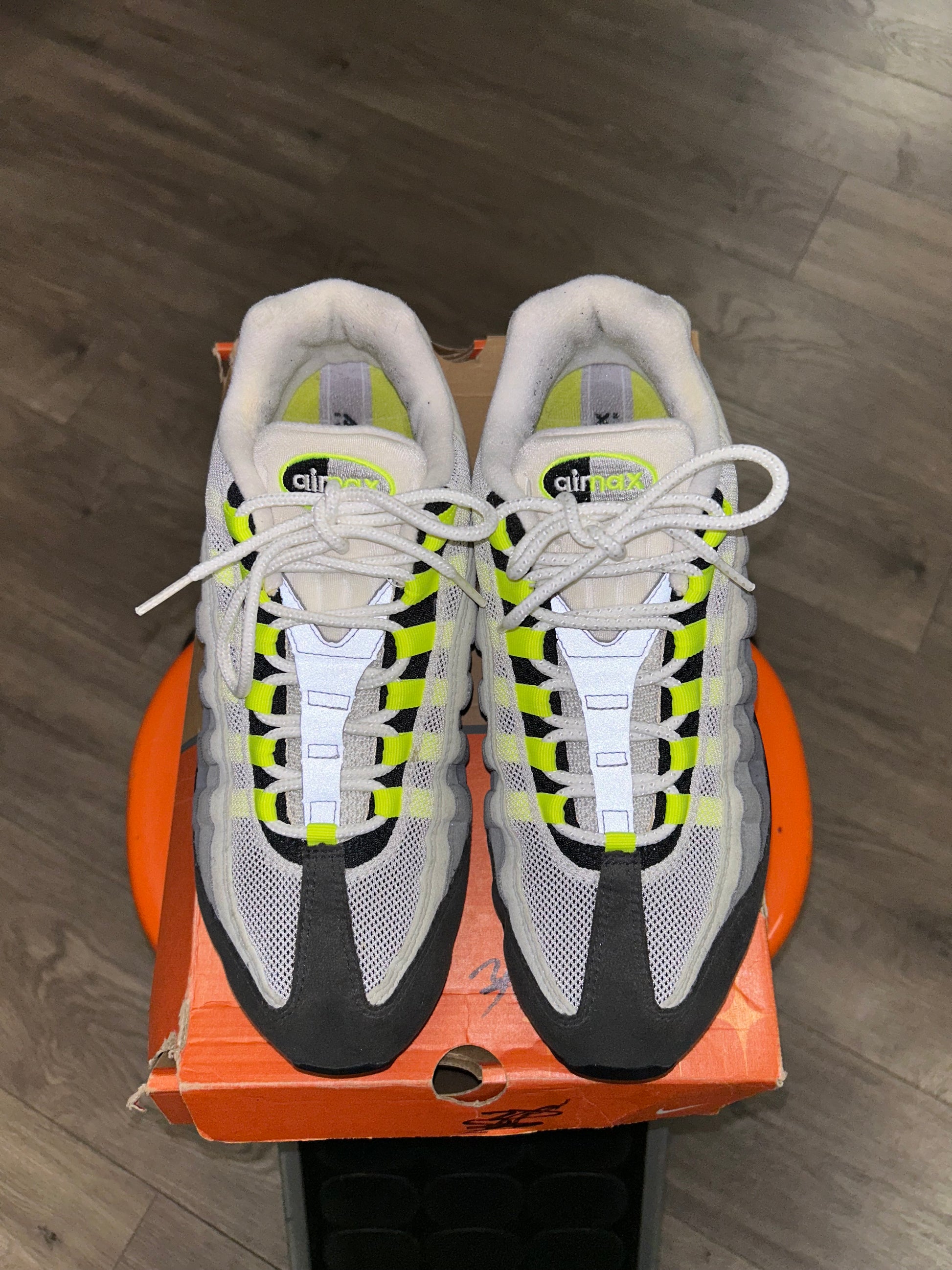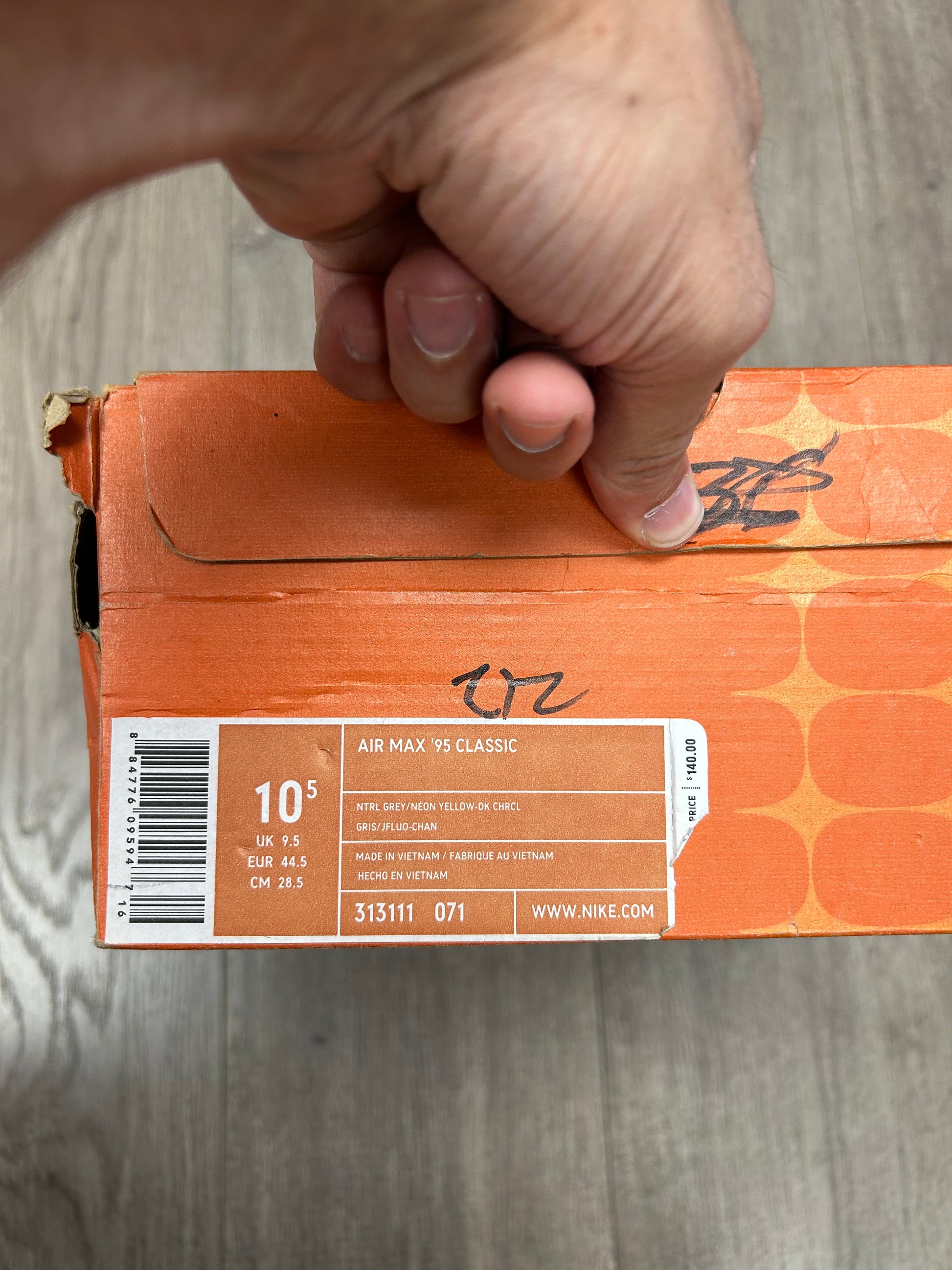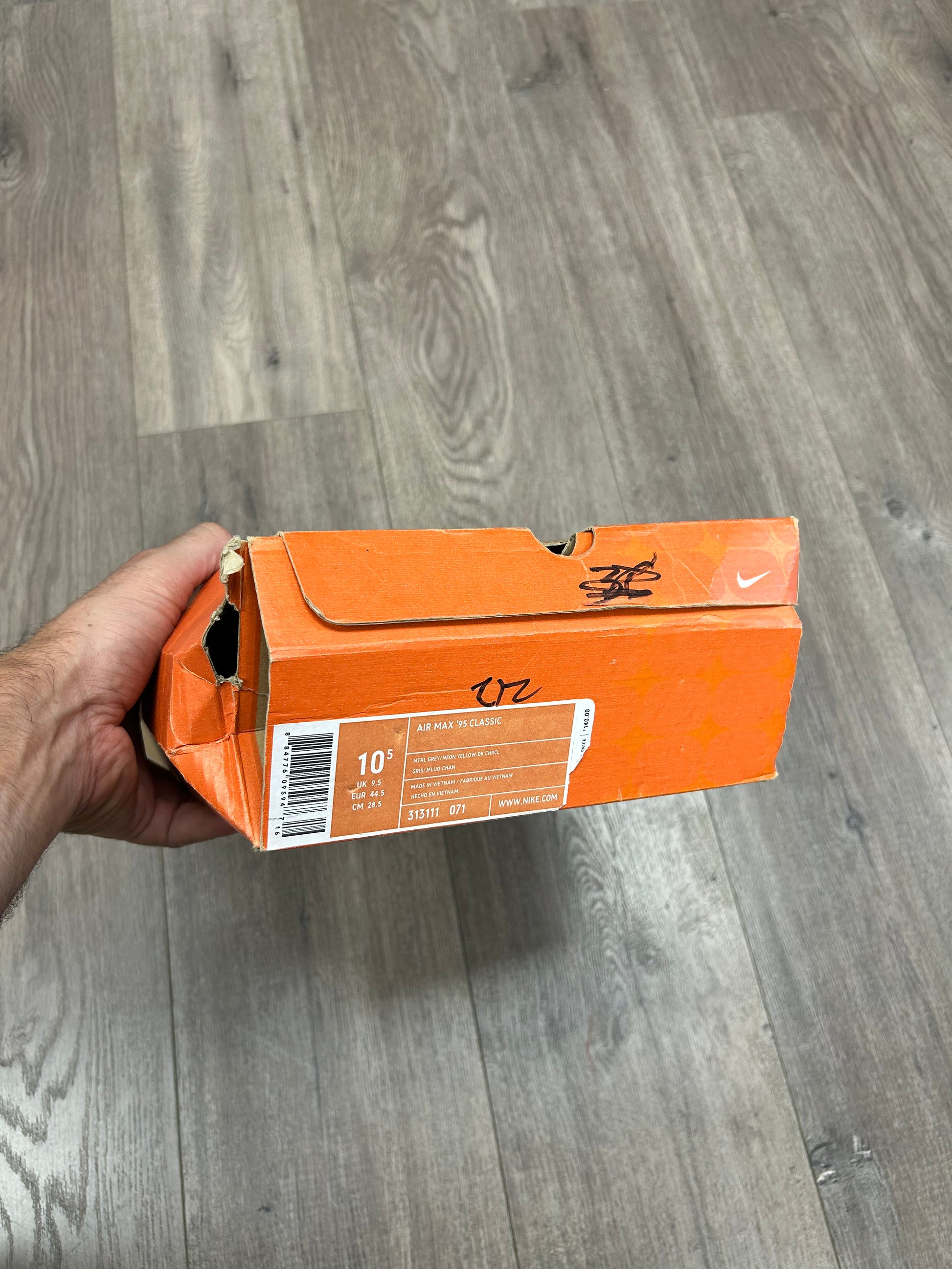 Vintage 2005 Nike Air Max 95 OG Neon Size 10.5 Used With Box 313111-071 Vietnam Wear At Your Own Risk