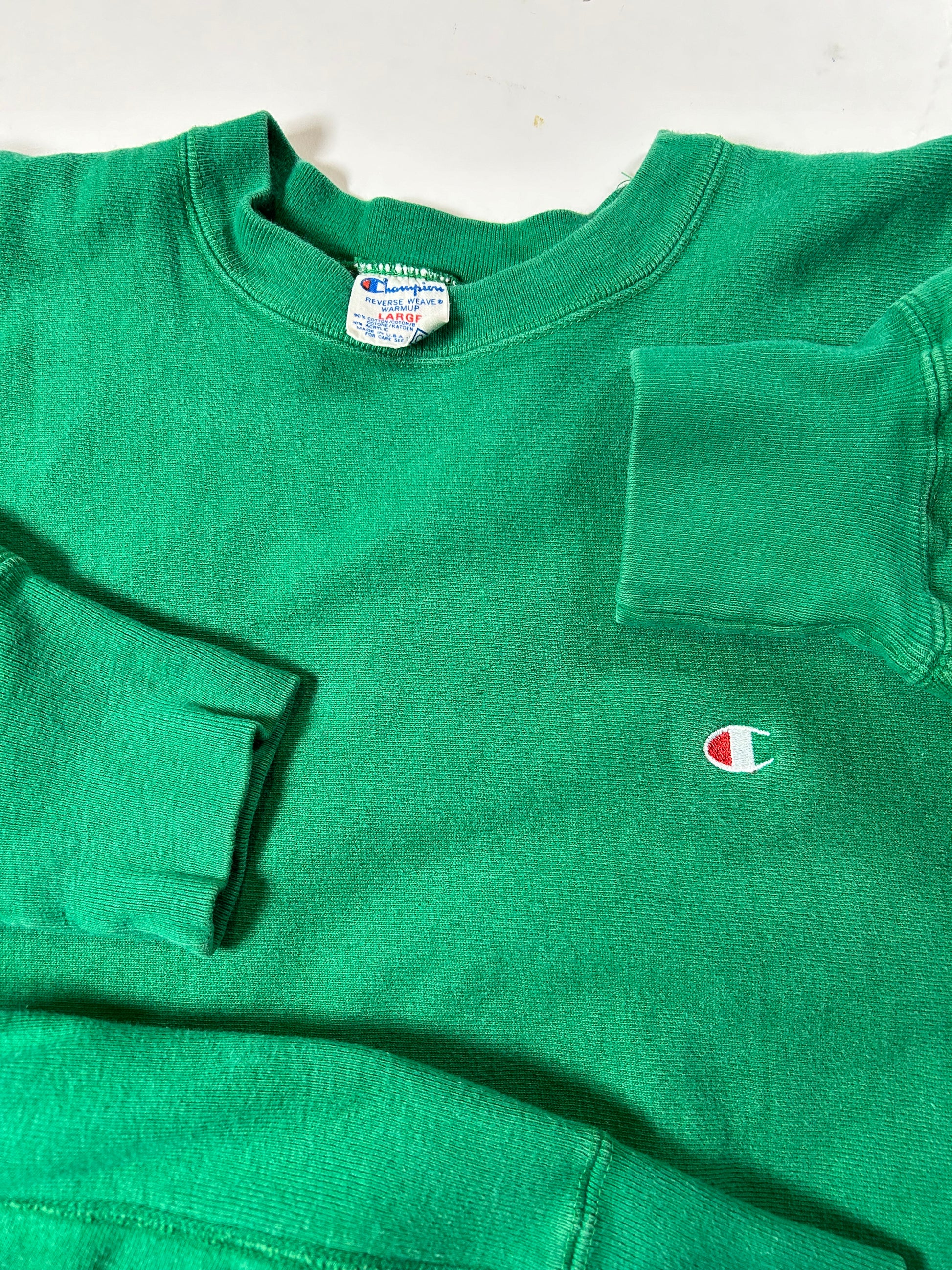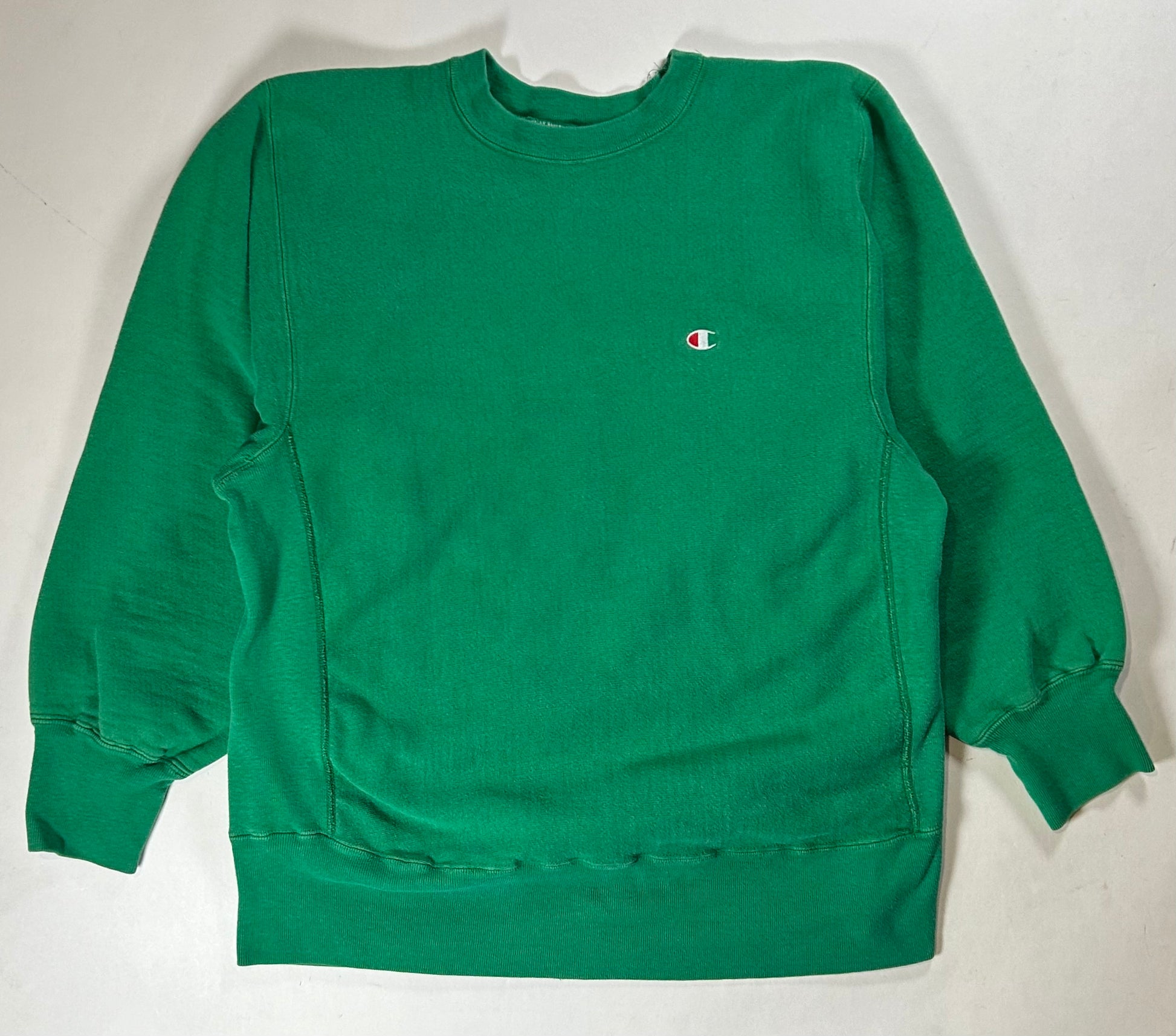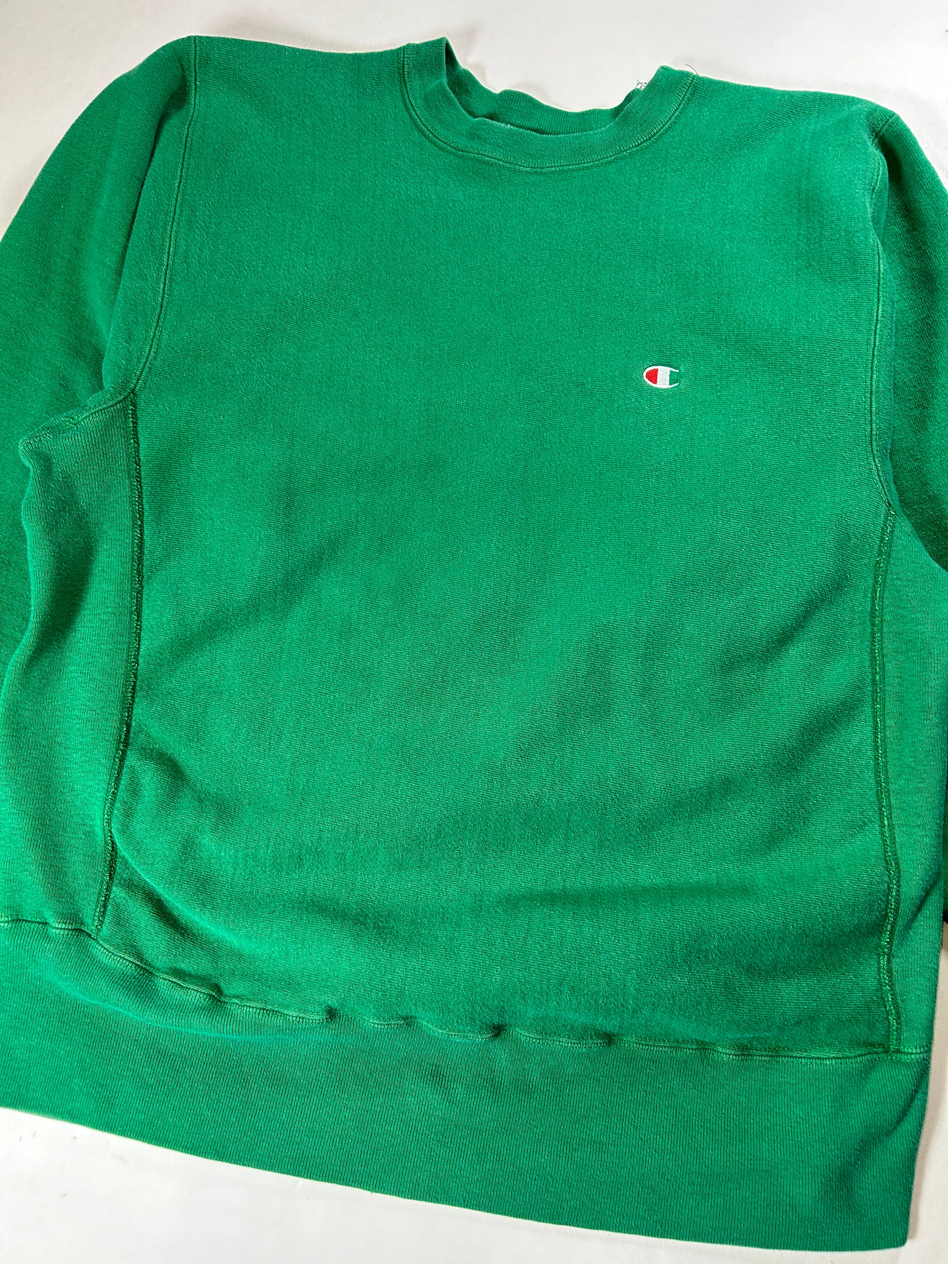 Vintage 80s Champion Reverse Weave Kelley Green Crewneck Sweatshirt 22.25x28.25 Inches Mediumish Fit