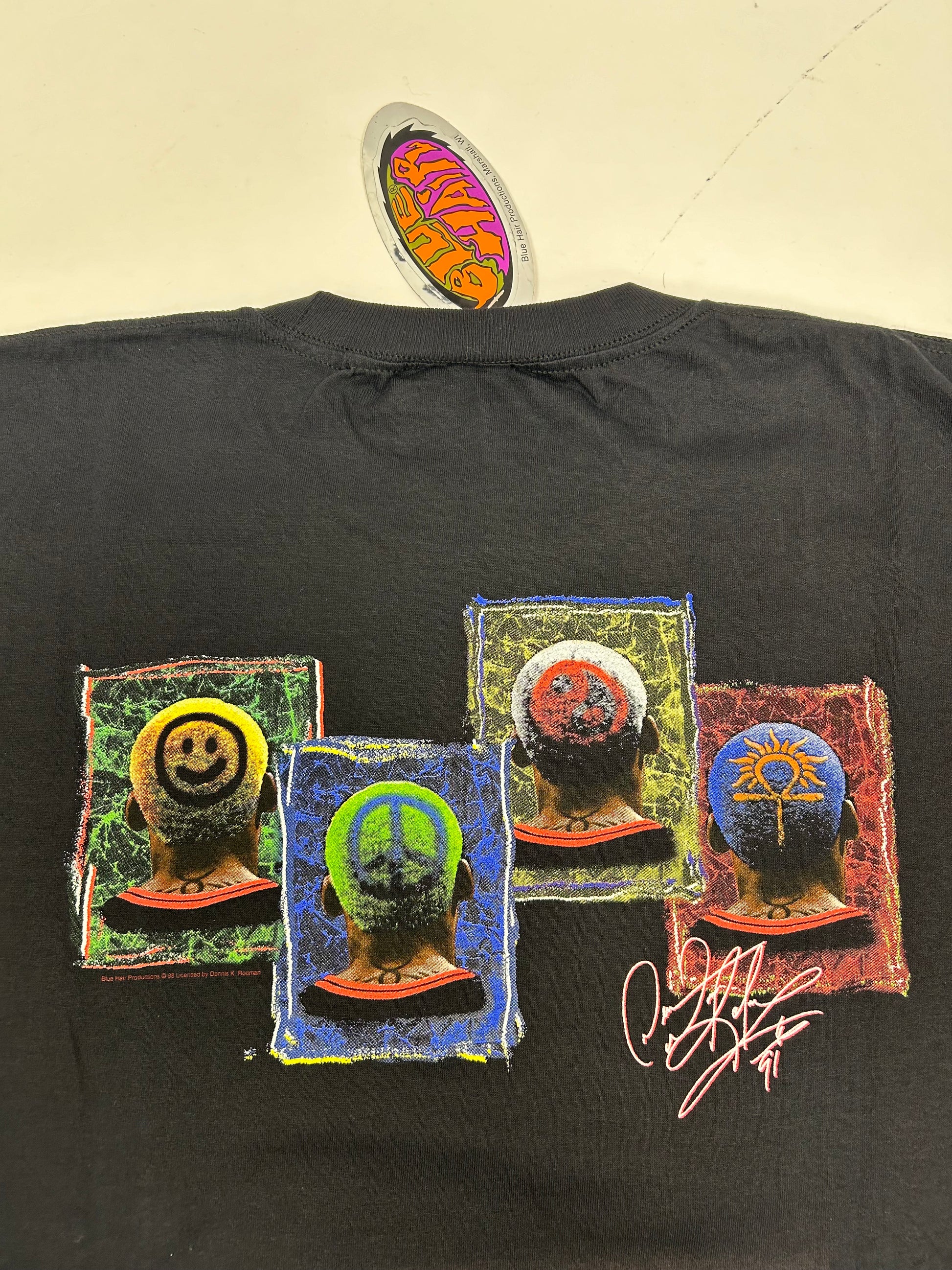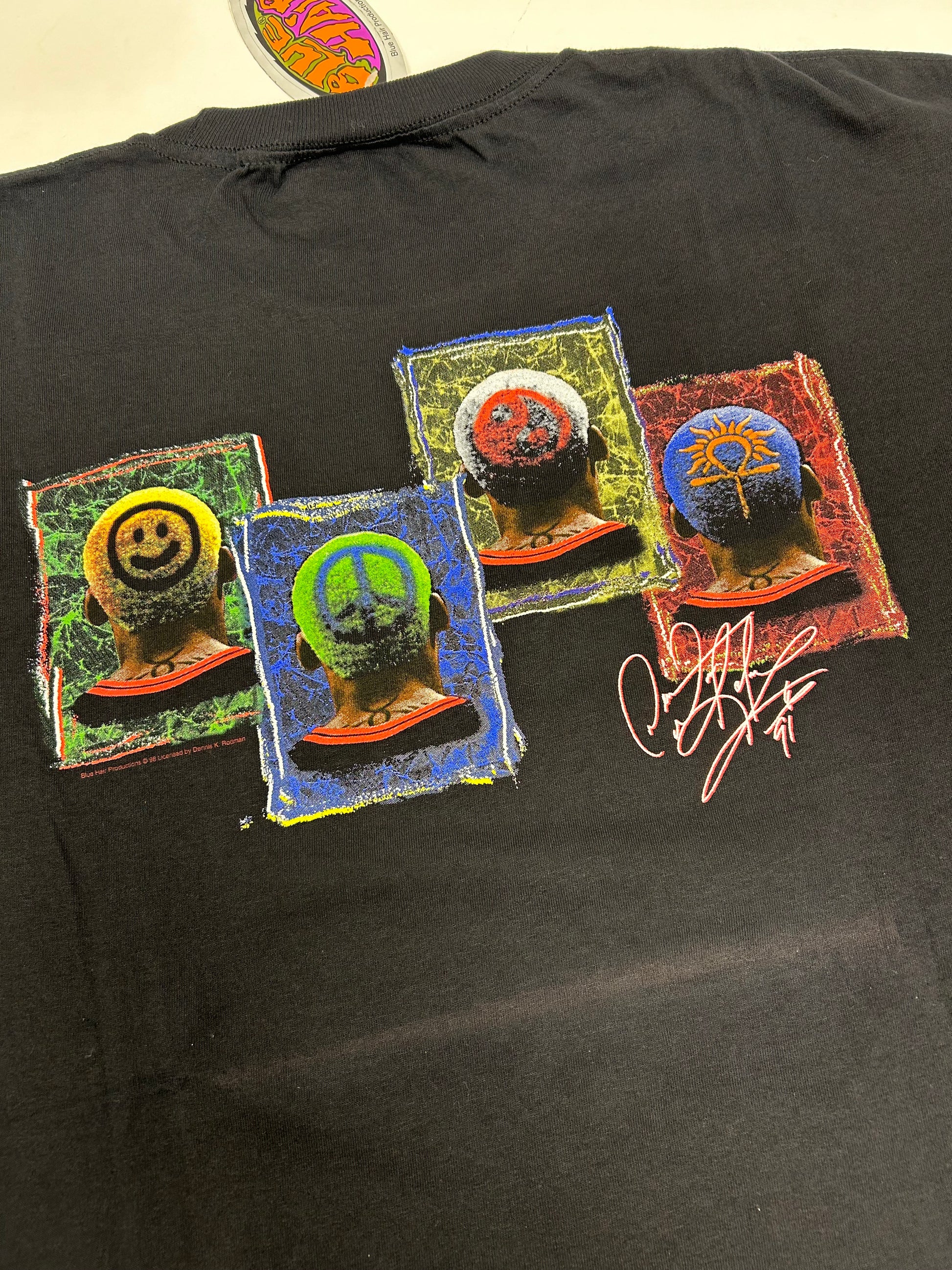 Vintage 90s Dennis Rodman Shirt Sign Of The Times Blue Hair Graphics Tee Brand New With Tag XL 24.25x32.25 Inches