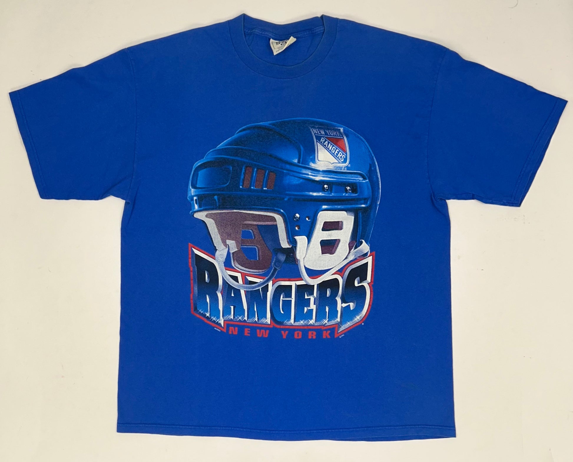 Vintage 90s Lee Sport Nutmeg Mills New York Rangers NHL Helmet Logo Tee 2XL 26x33 Inches