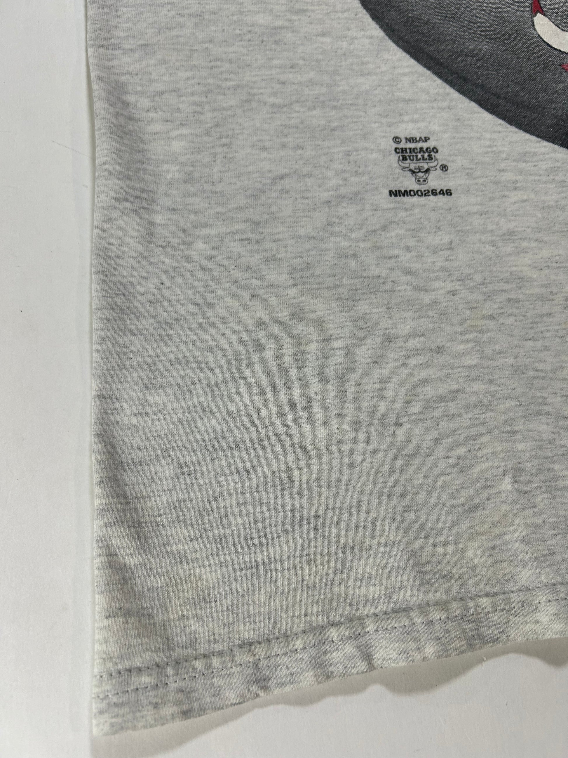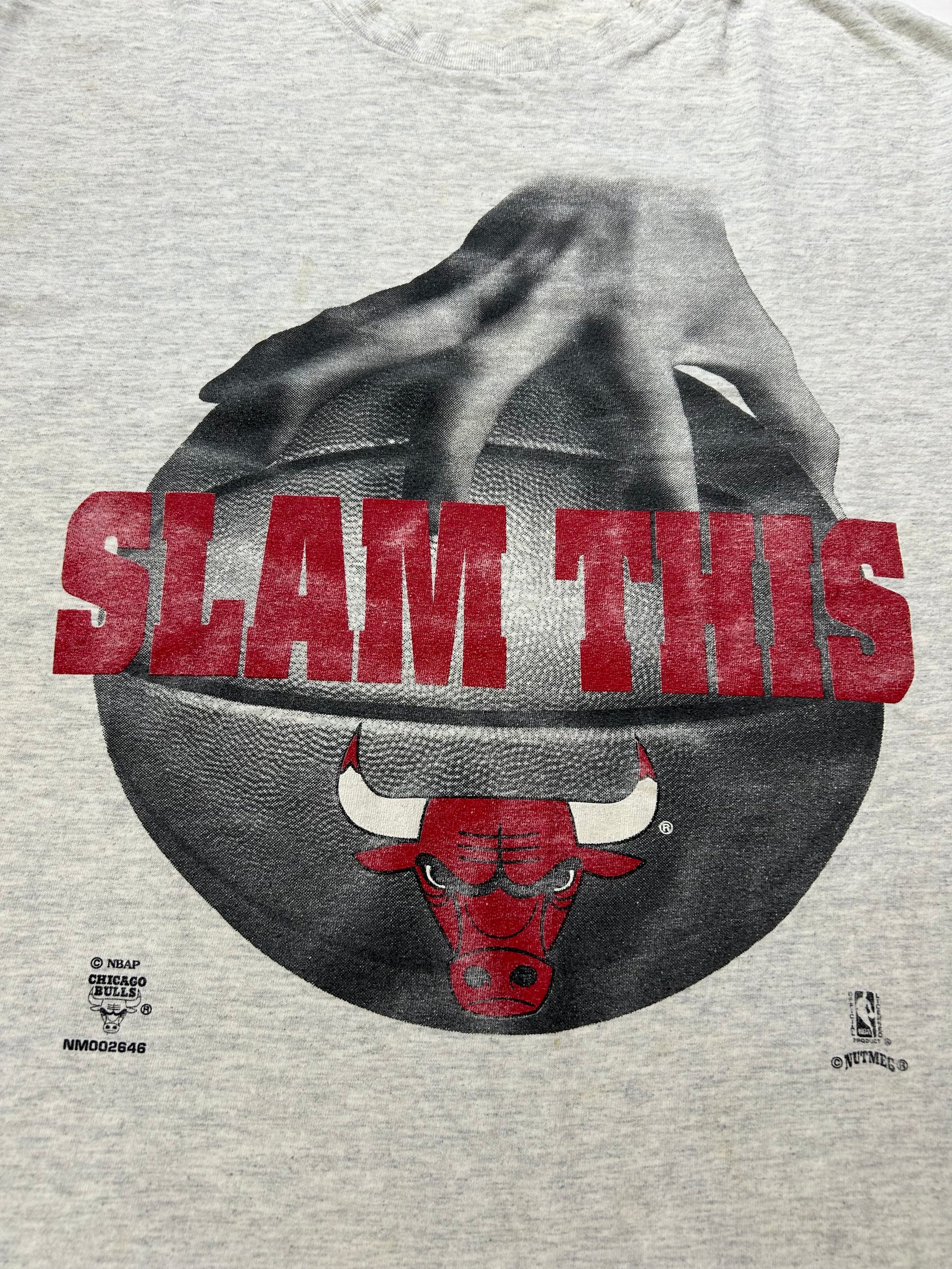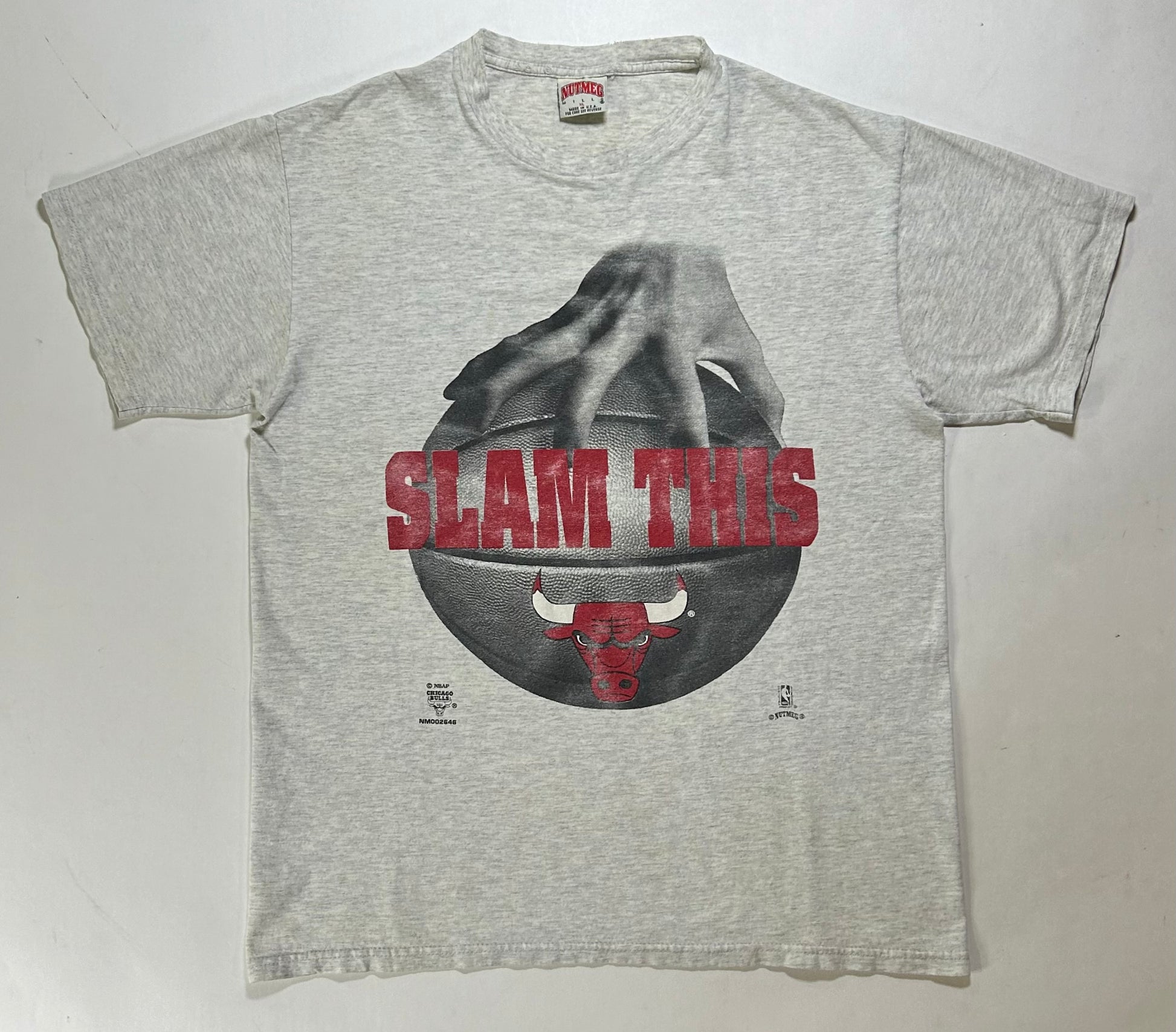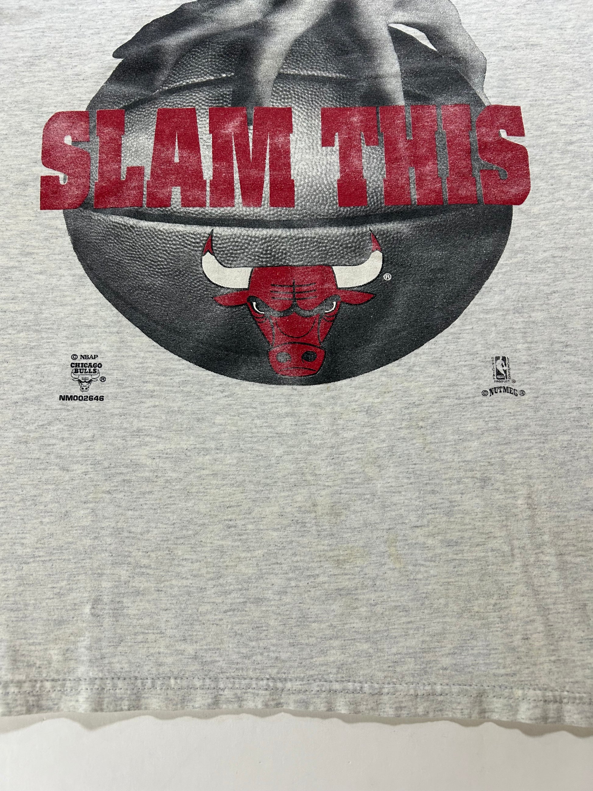 Vintage 90s Nutmeg Mills Chicago Bulls Slam This NBA Tee Gray L/XL 22.5x29 Inches Gray Worn As Is Has Wear & Stains