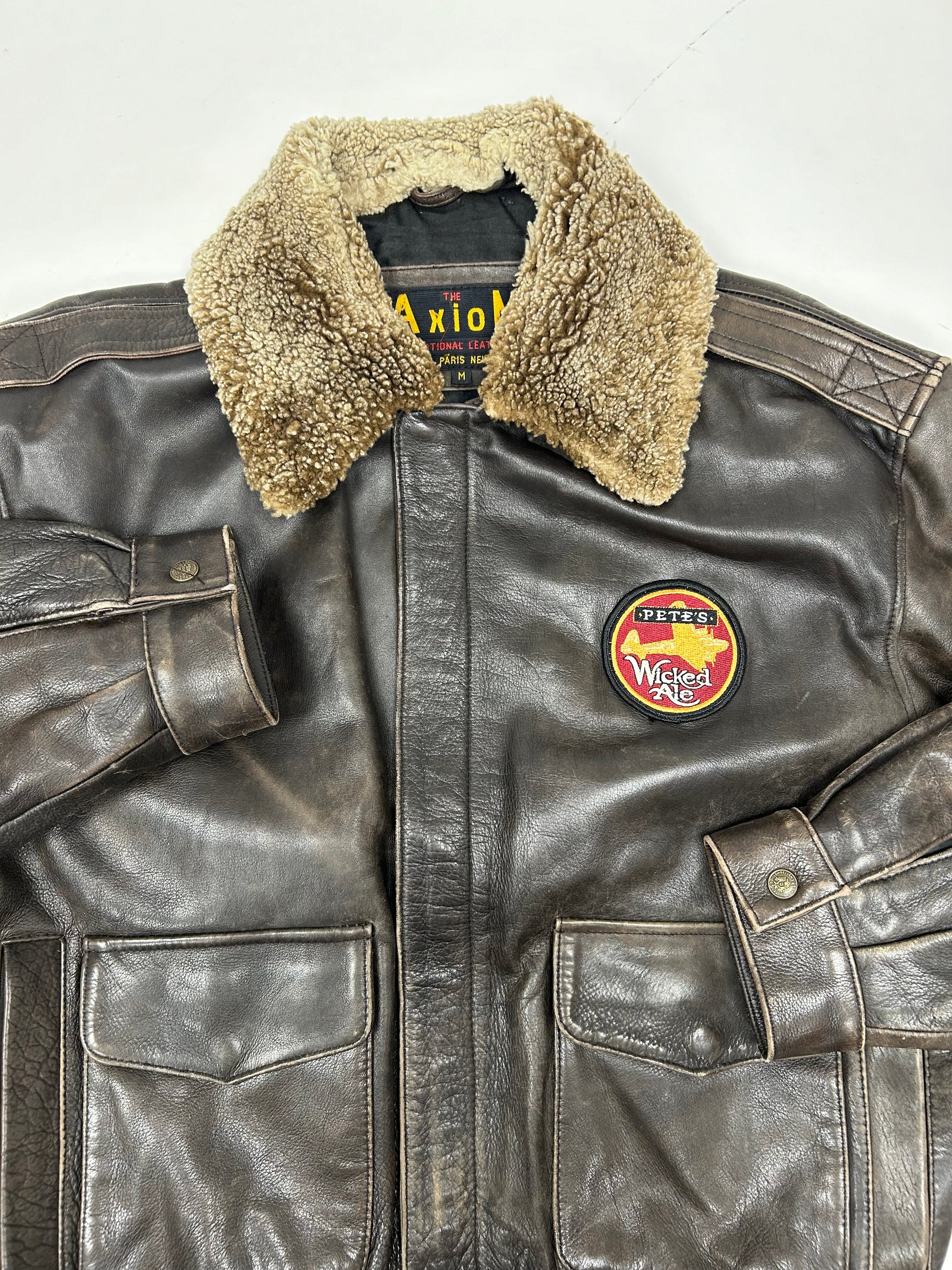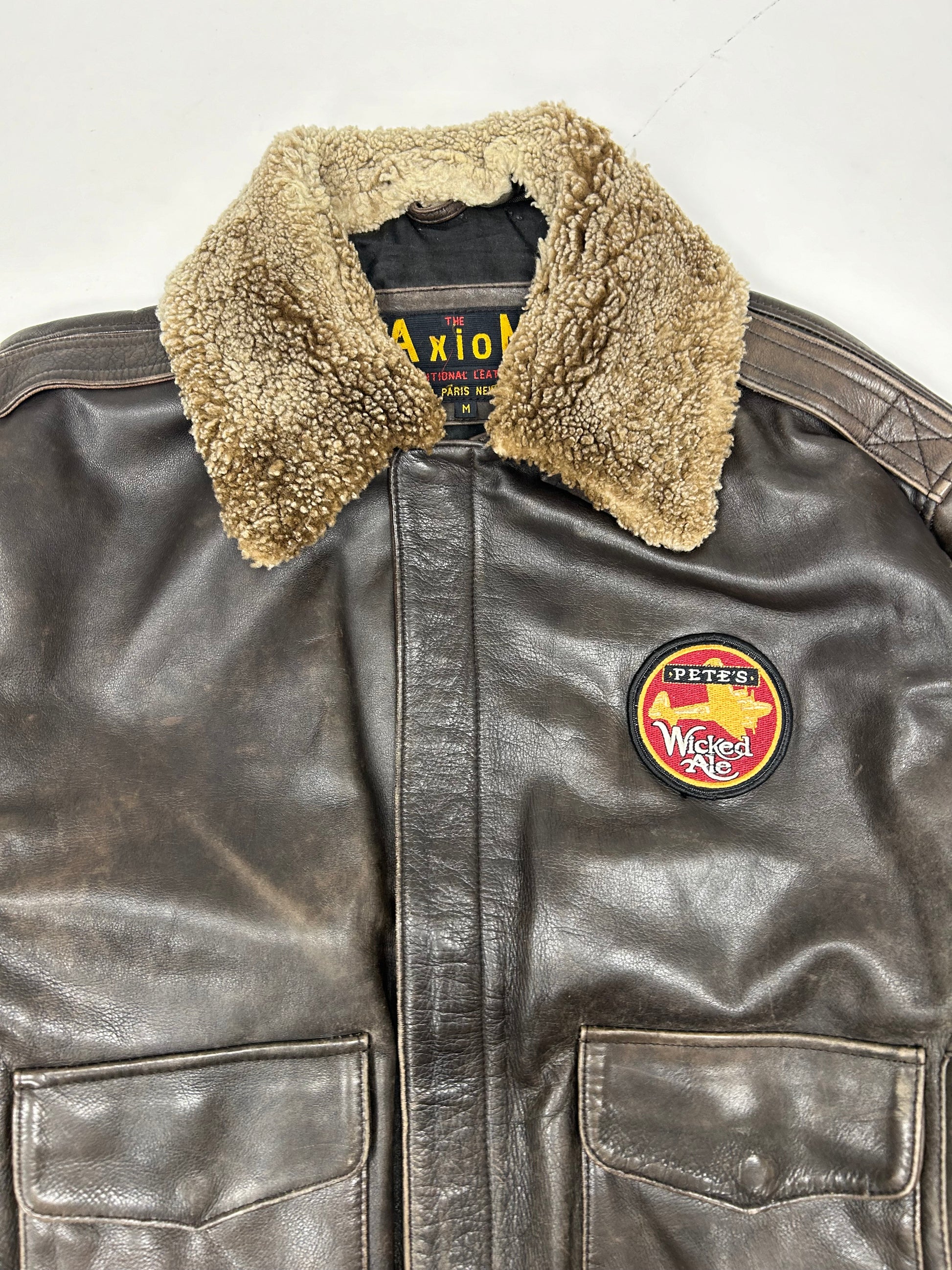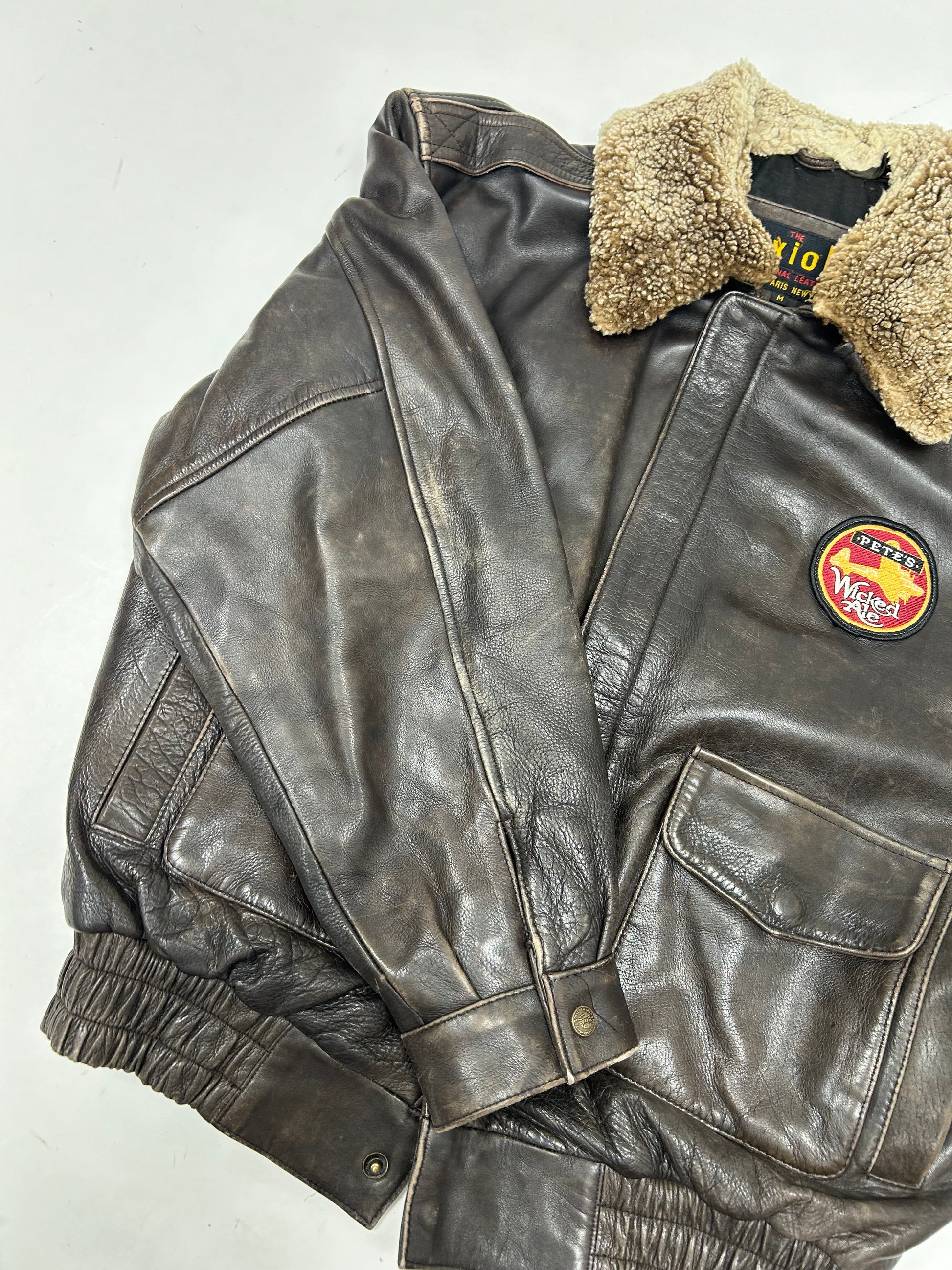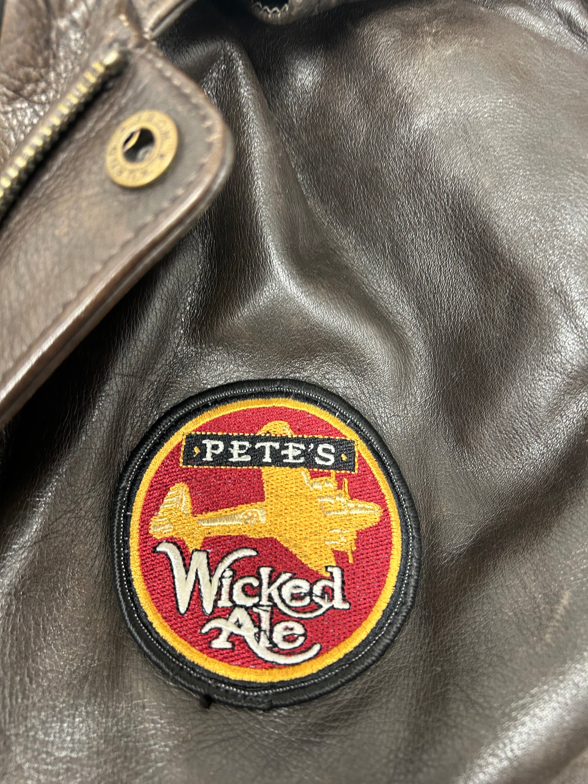Vintage 90s The Axiom Traditional Leather Pete’s Wicked Ale Leather Jacket Beer Brewery Medium 25x28 Inches