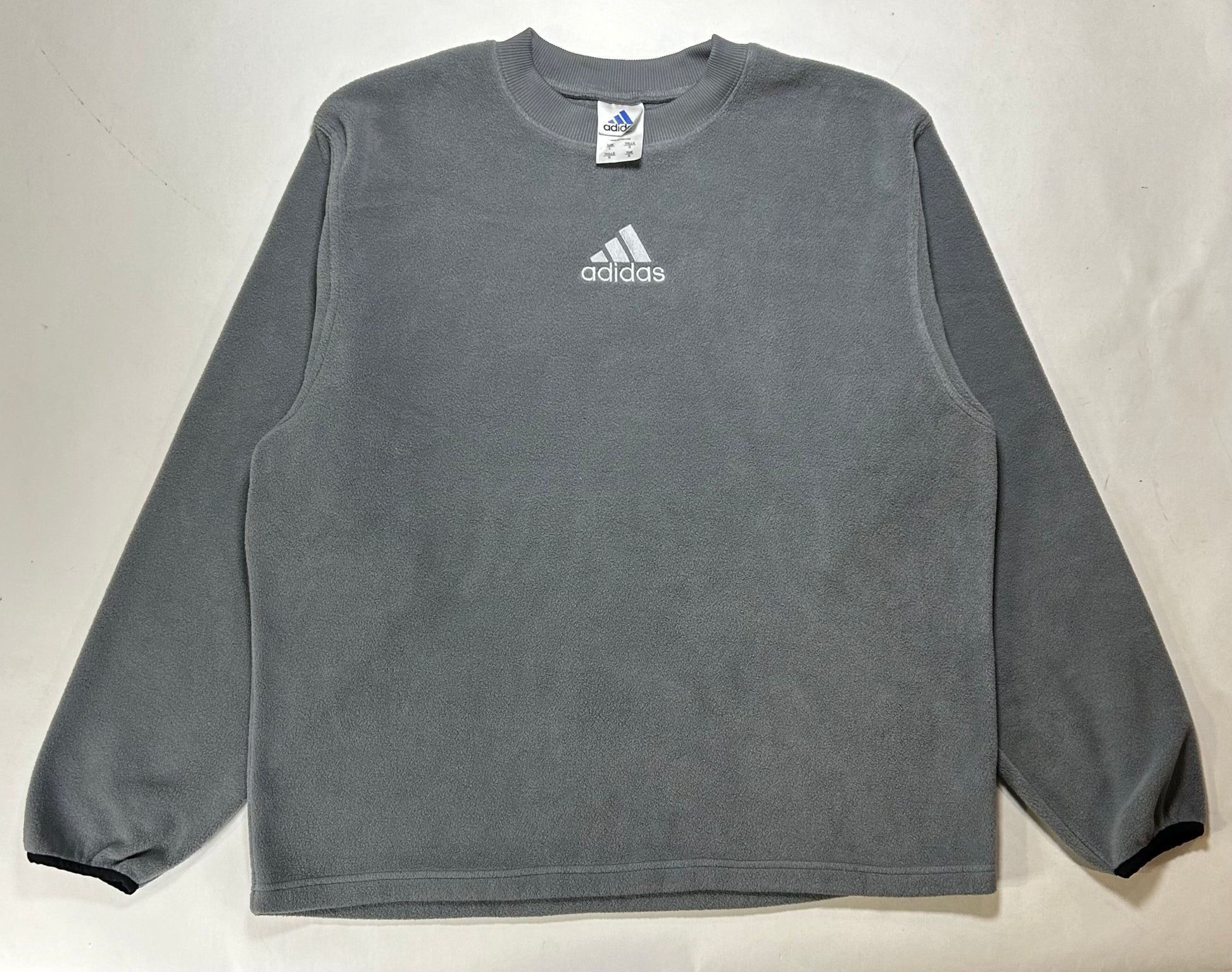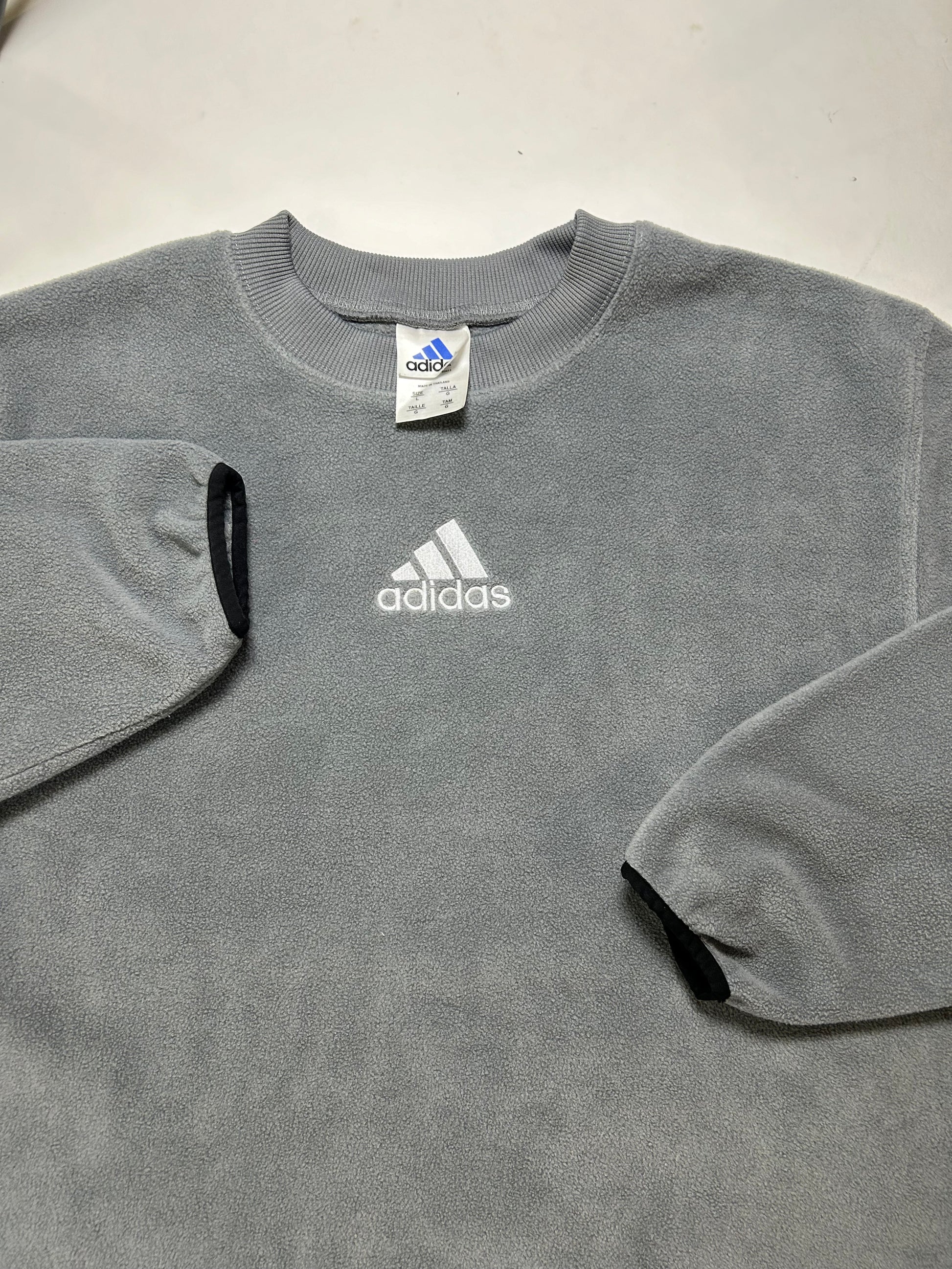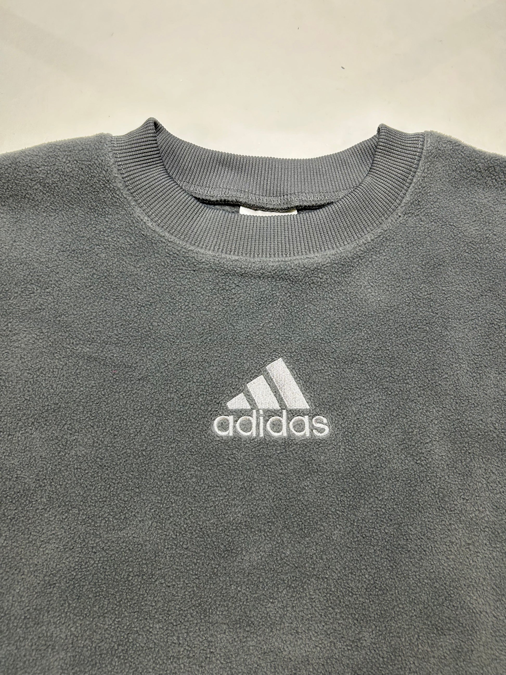 Vintage Adidas Embroidered Center Logo Fleece Crewneck Sweatshirt Large Can Fit XL 26.5x30.5 Inches Gray