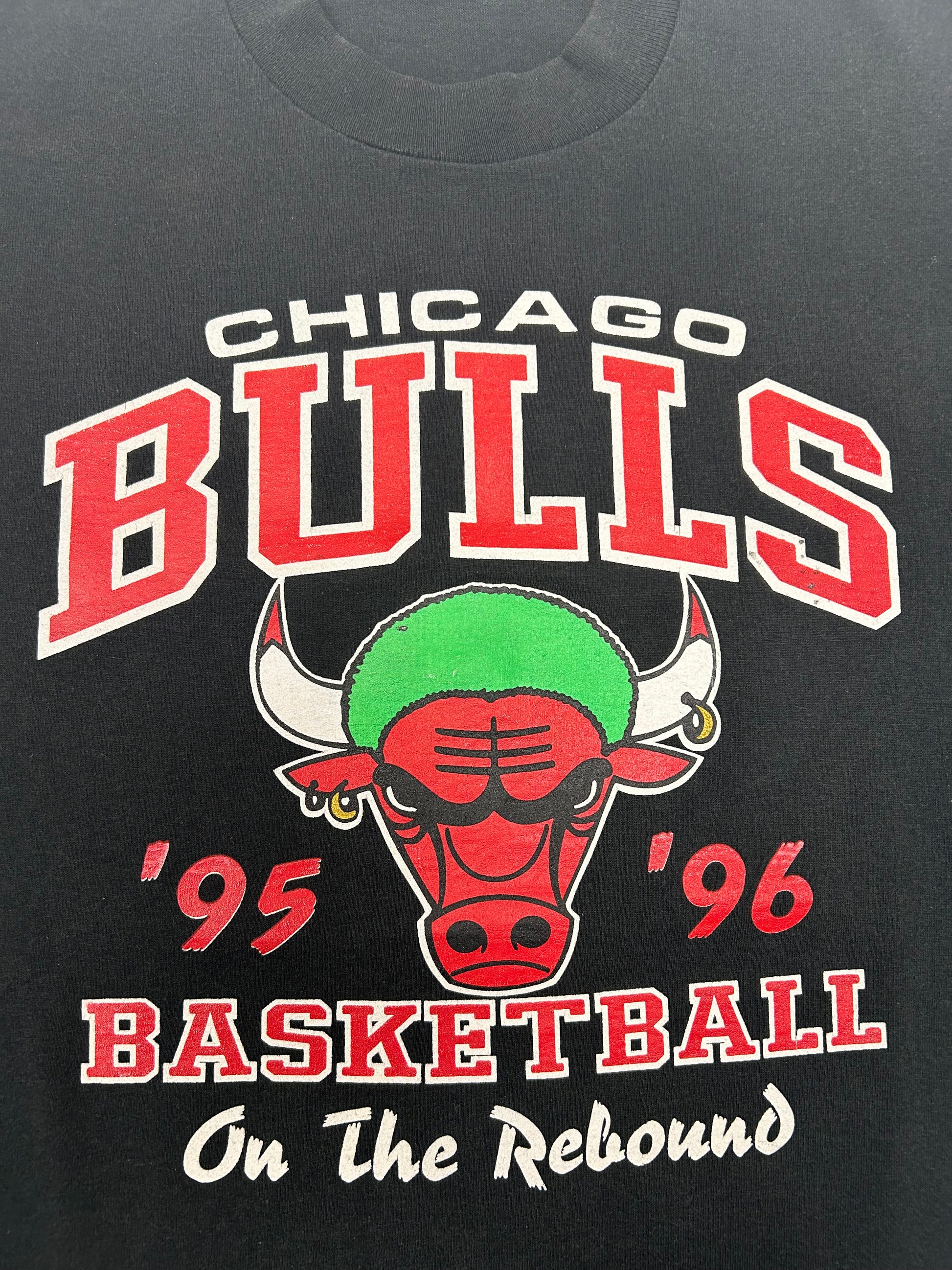 Vintage Chicago Bulls 1995-1996 30 Years And Running Dennis Rodman On The Rebound Tee Large 21.5x28.25 Inches