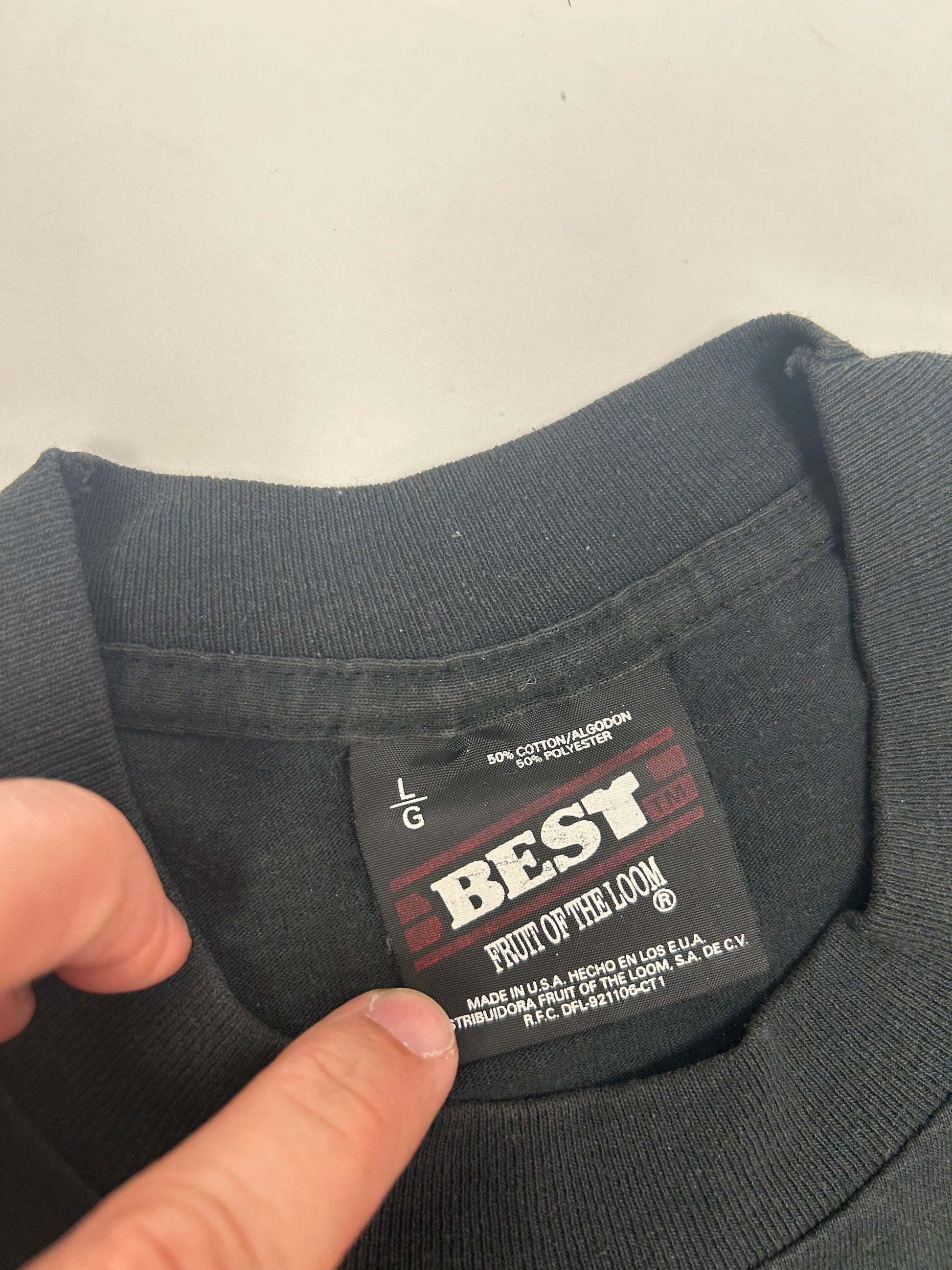Made In USA 50% Cotton 50% Polyester.