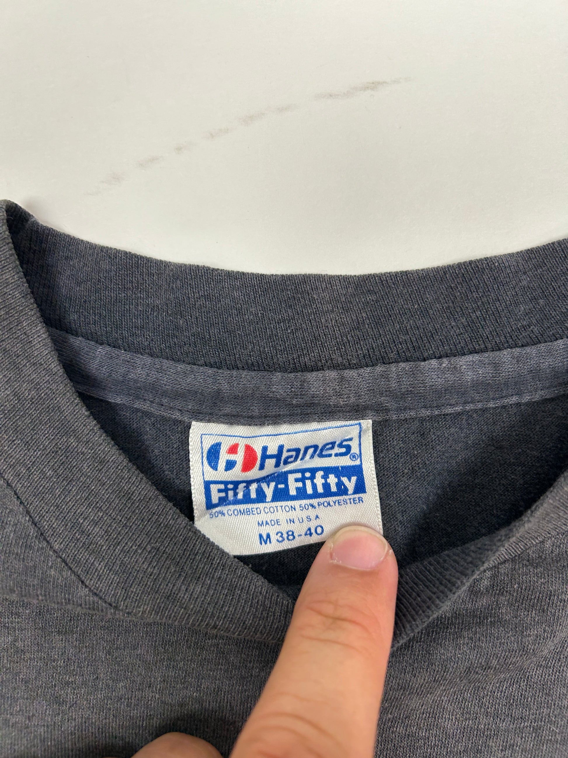 On A Hanes Fifty-Fifty Tee Made In USA.