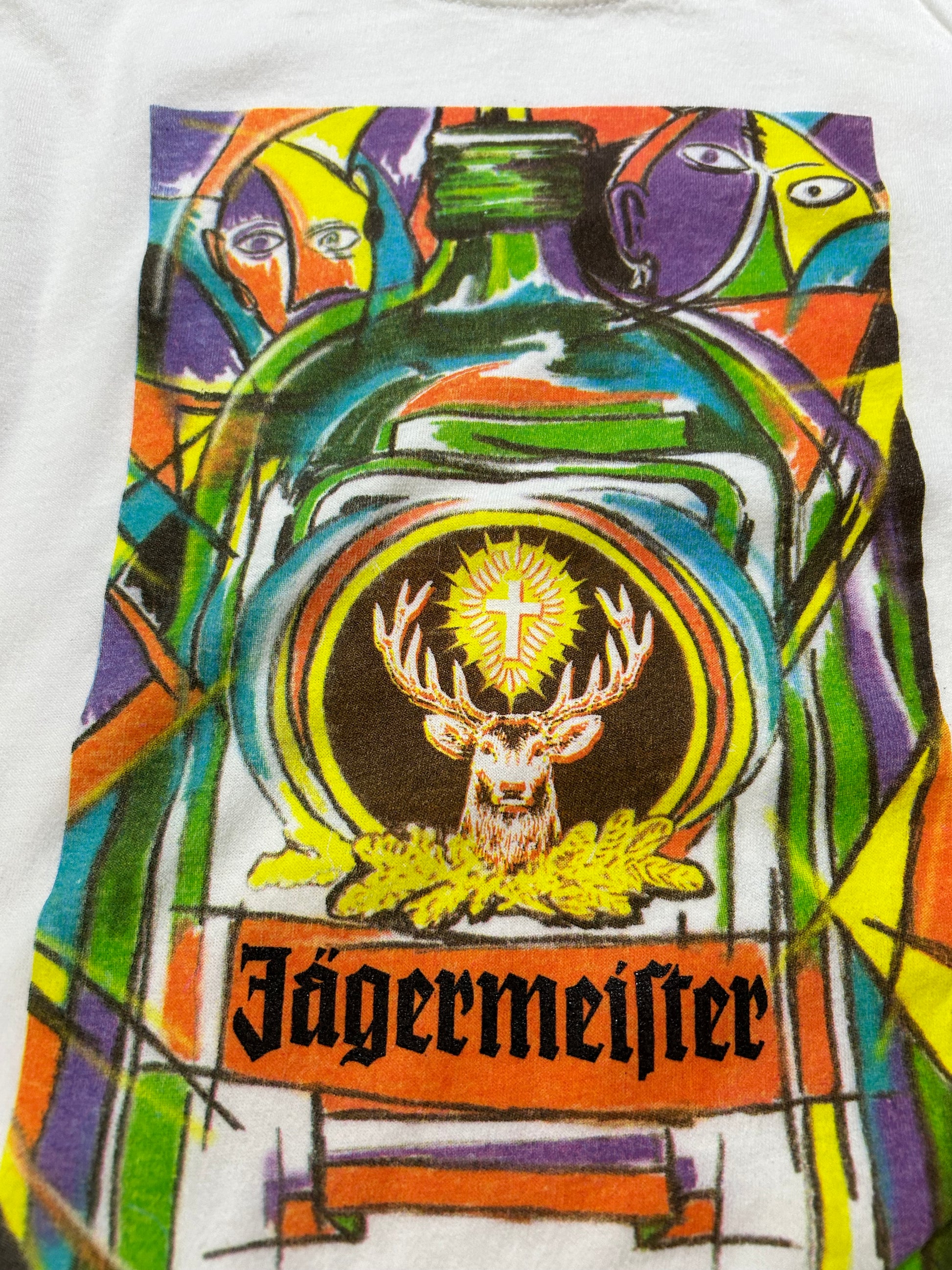 Vintage Jägermeister Alchol Promo Art Graphic Tee G. Kalehen ‘99 White XL 25x29 Inches