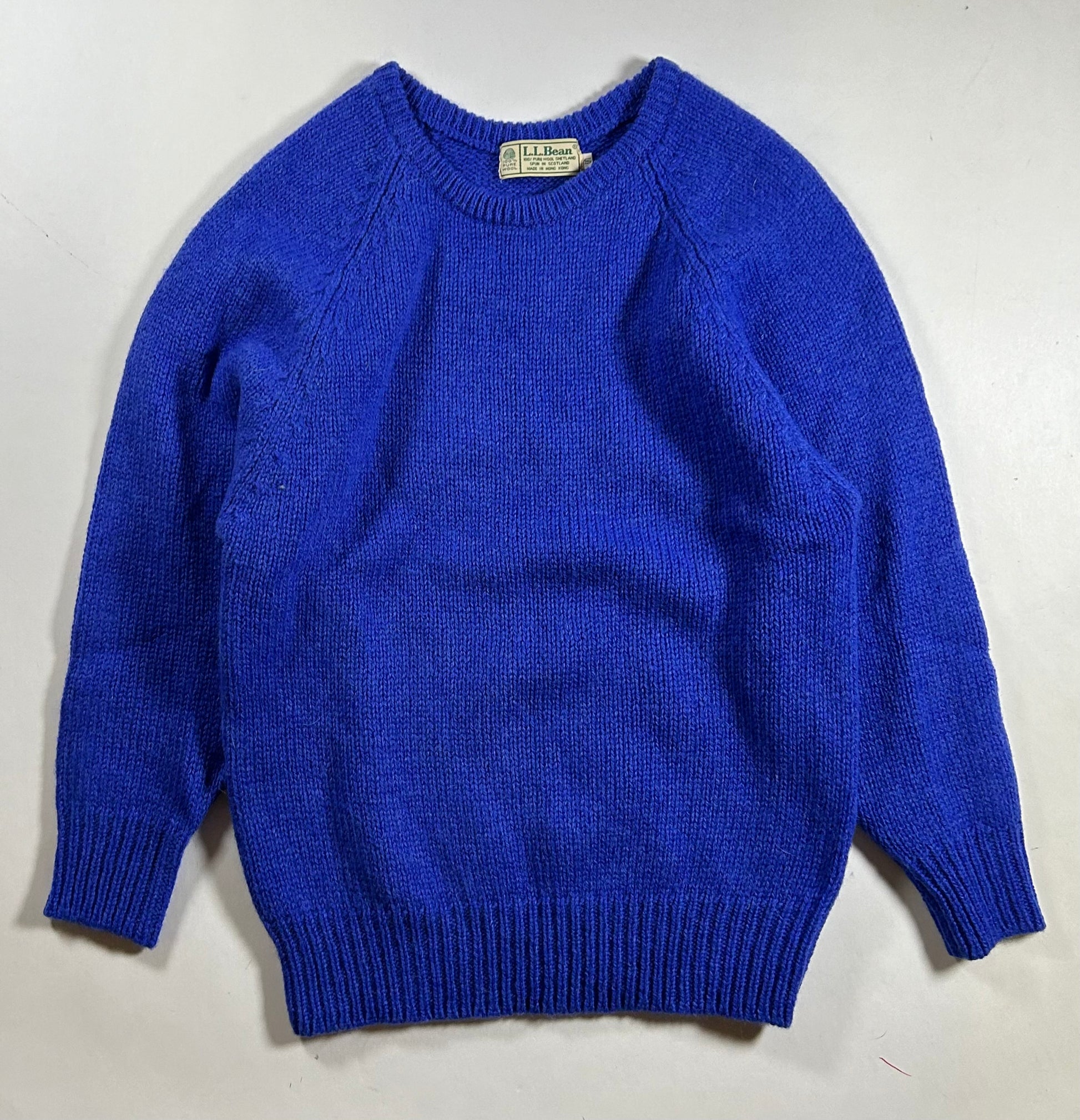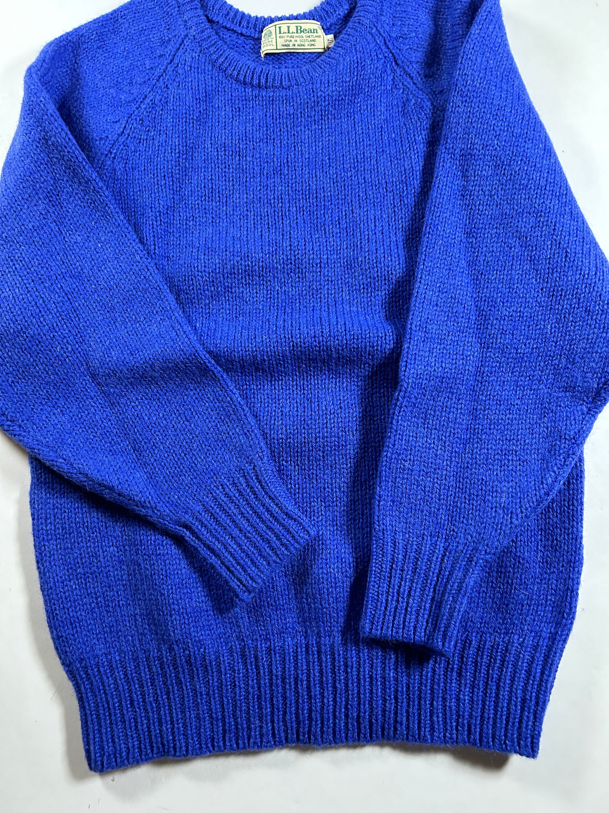 Vintage L.L. Bean Sweater Blue Knit Crewneck Shetland Pure Wool Women’s Small 18.5x26.25 Inches