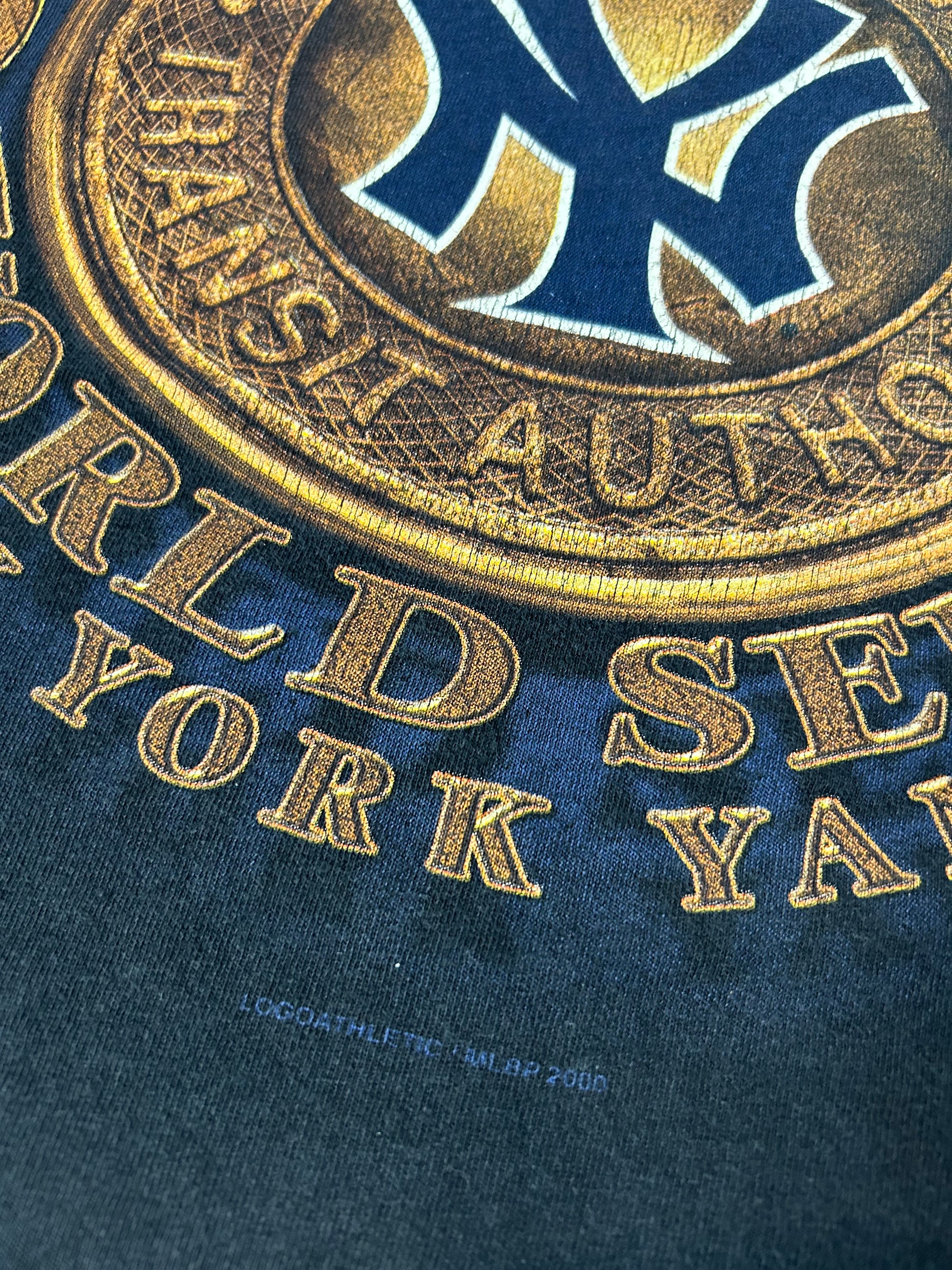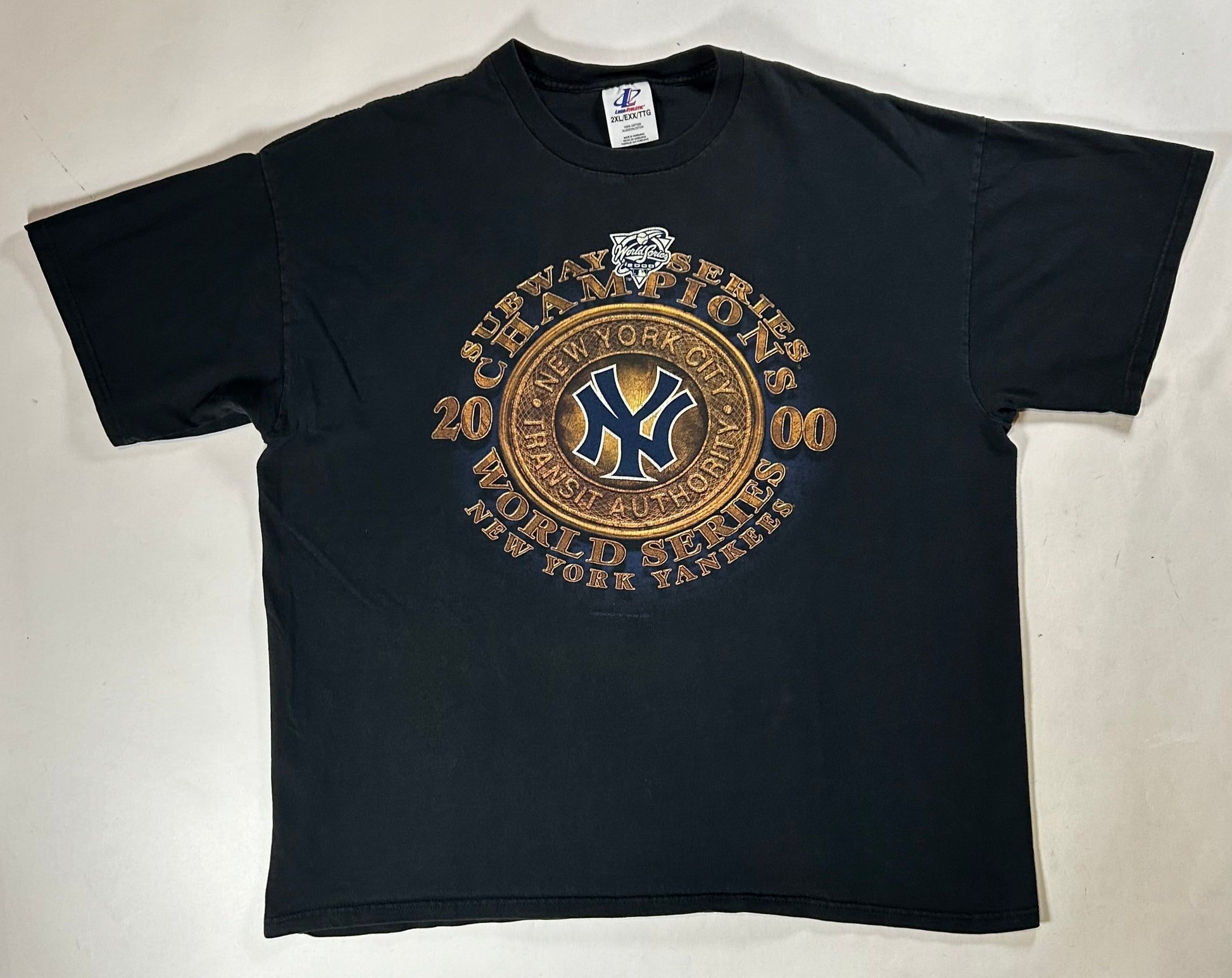 Vintage Logo Athletic New York Yankees 2000 Subway Series World Series Champions Tee 2XL 26.25x30 Inches Faded Black