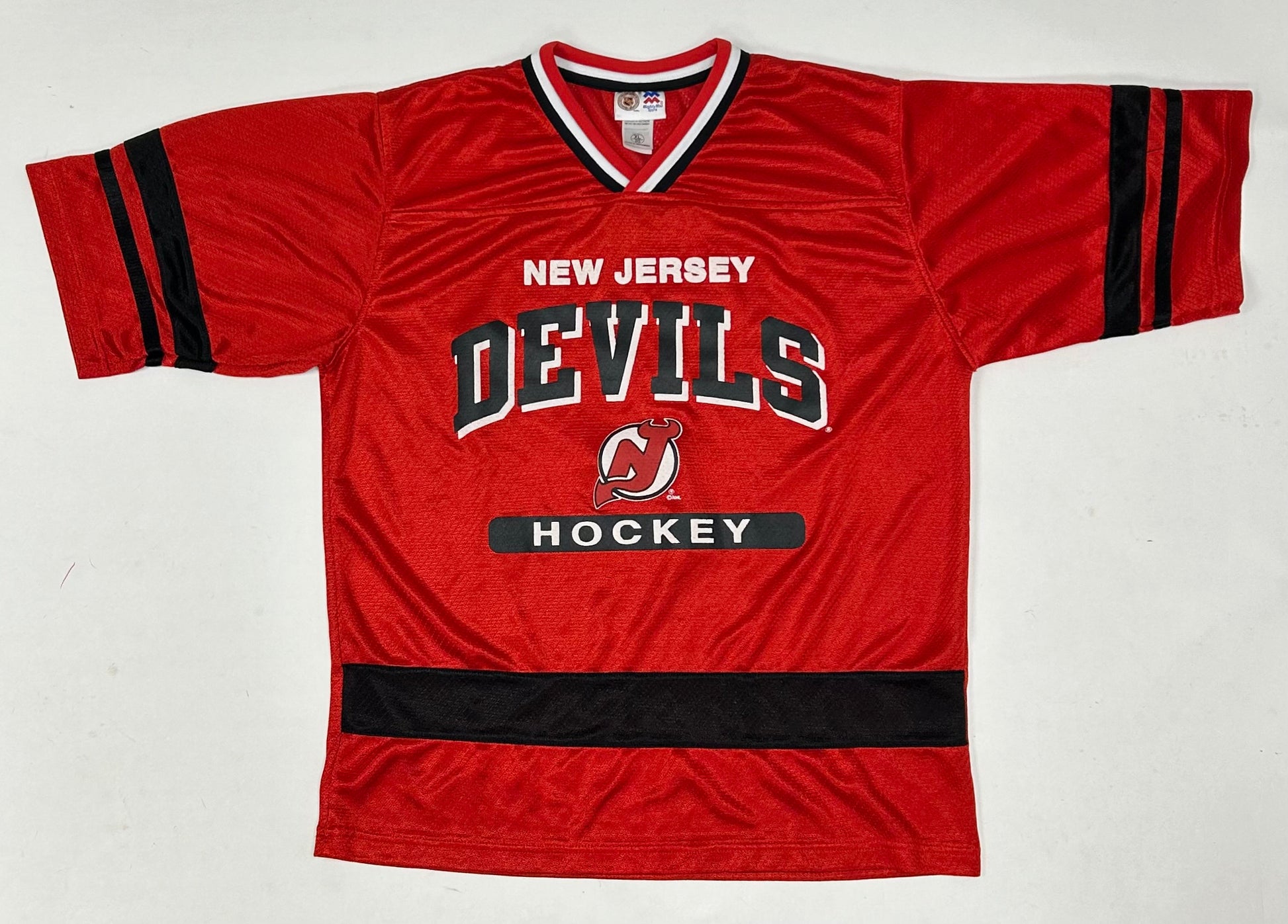 Vintage MightyMac Sports New Jersey Devils Jersey Style Shirt Tagged Youth XL Fits Adult Small 21.5x27 Inches