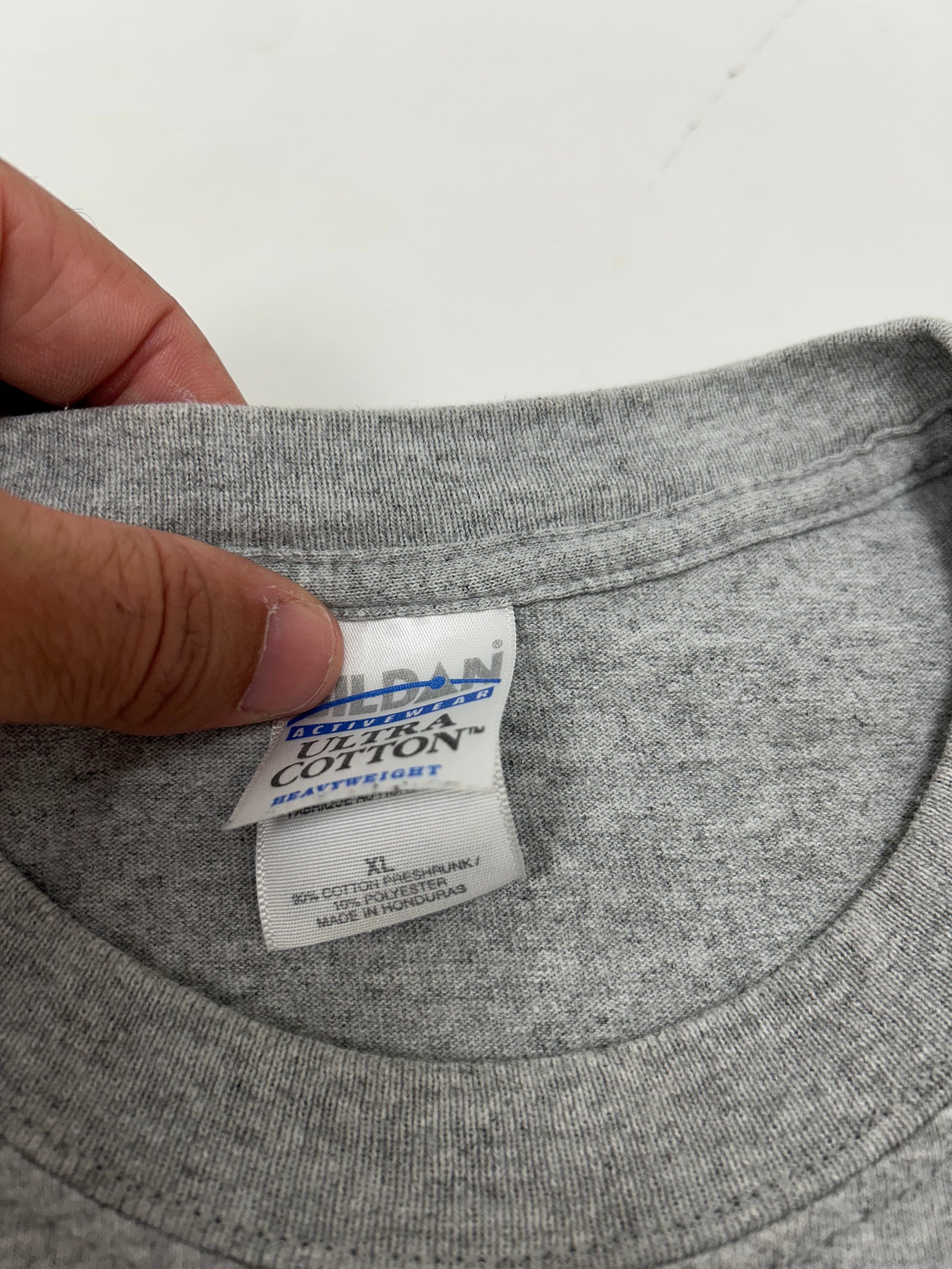Gildan Tag Made In Honduras 90% Cotton 10% Polyester.