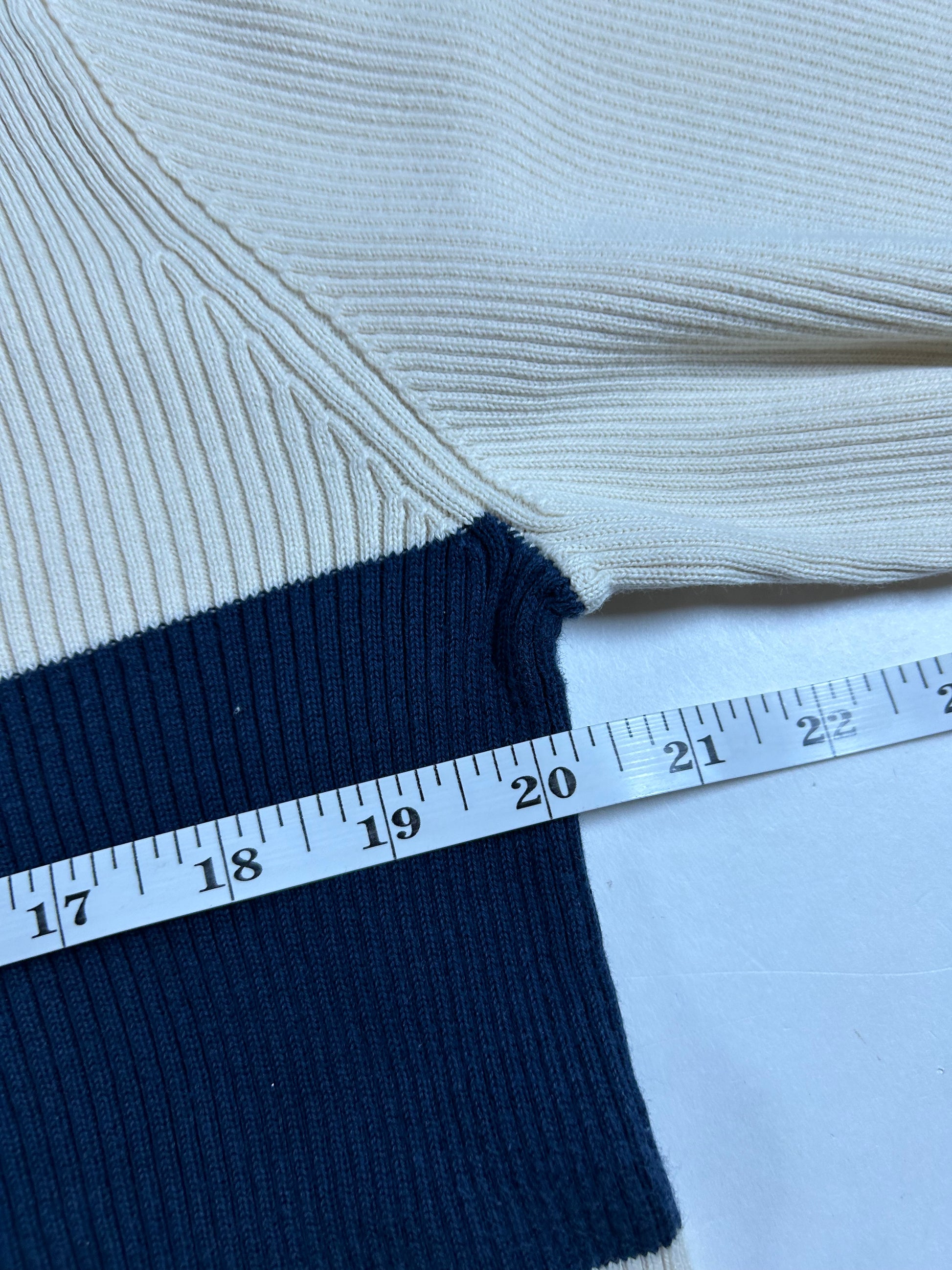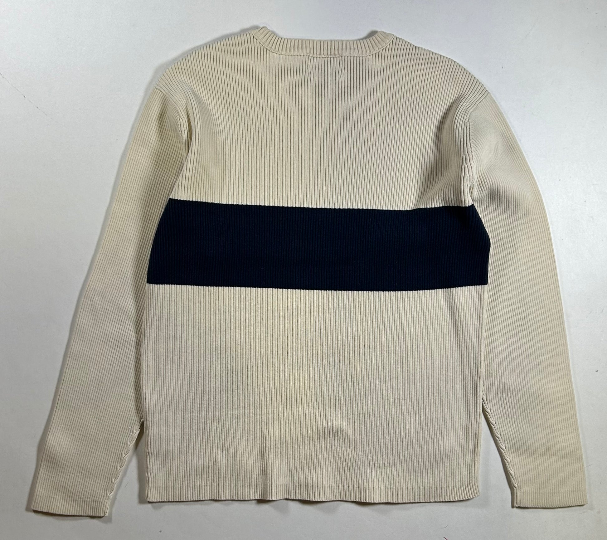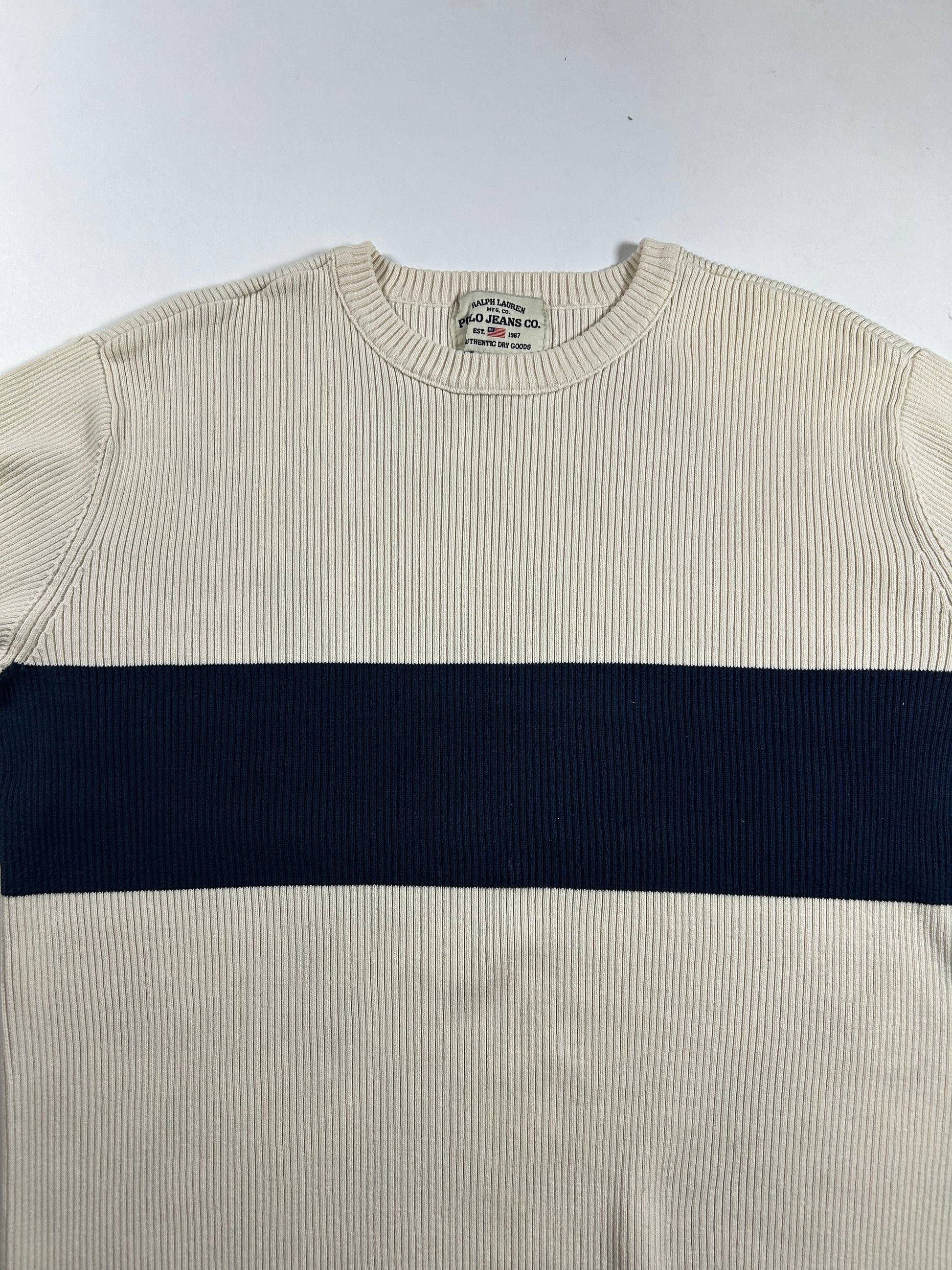Vintage Polo Jeans Co Ralph Lauren Ribbed Cotton Sweater Cream Navy Stripe Small 20.25x24.25 Inches