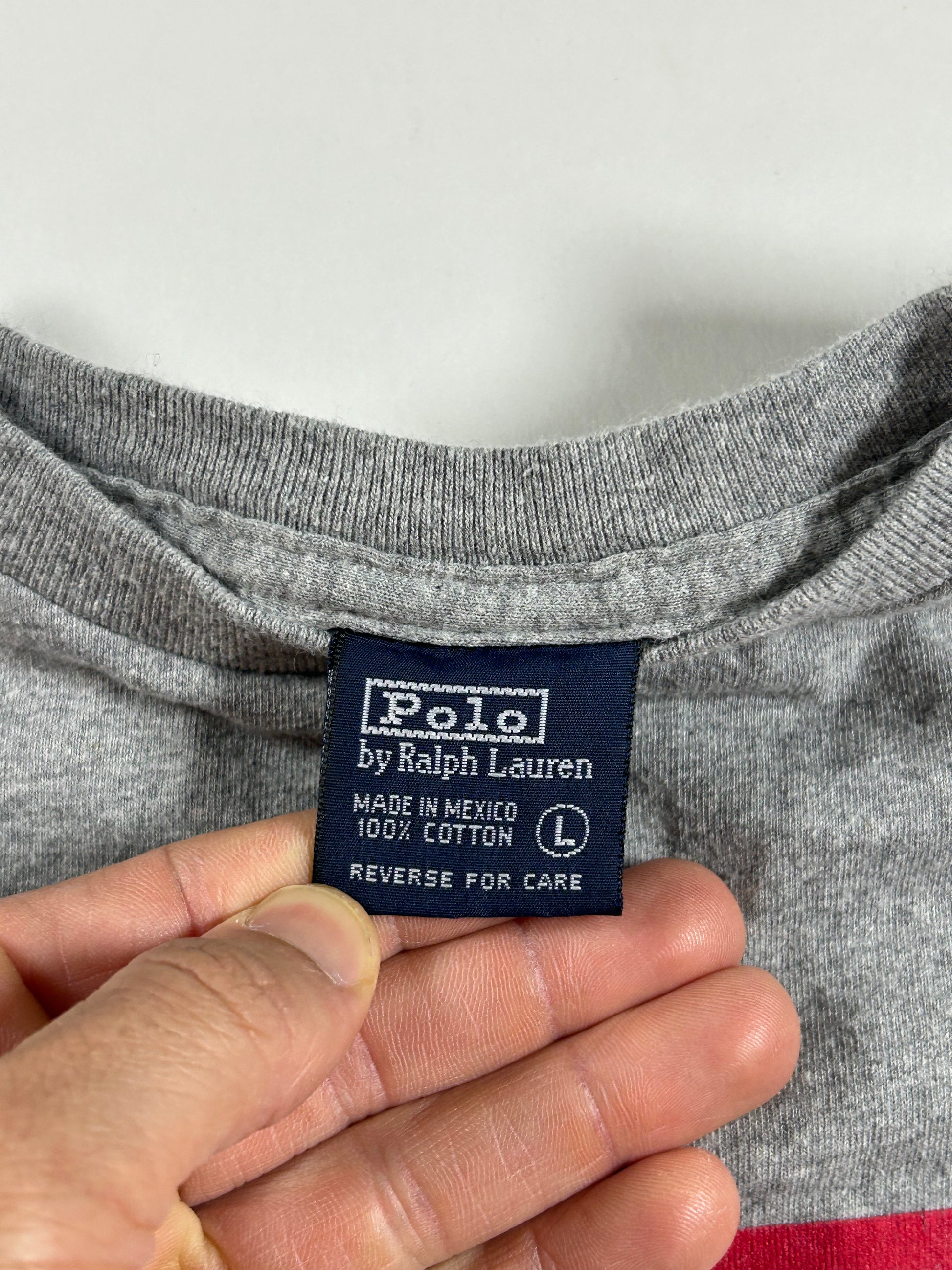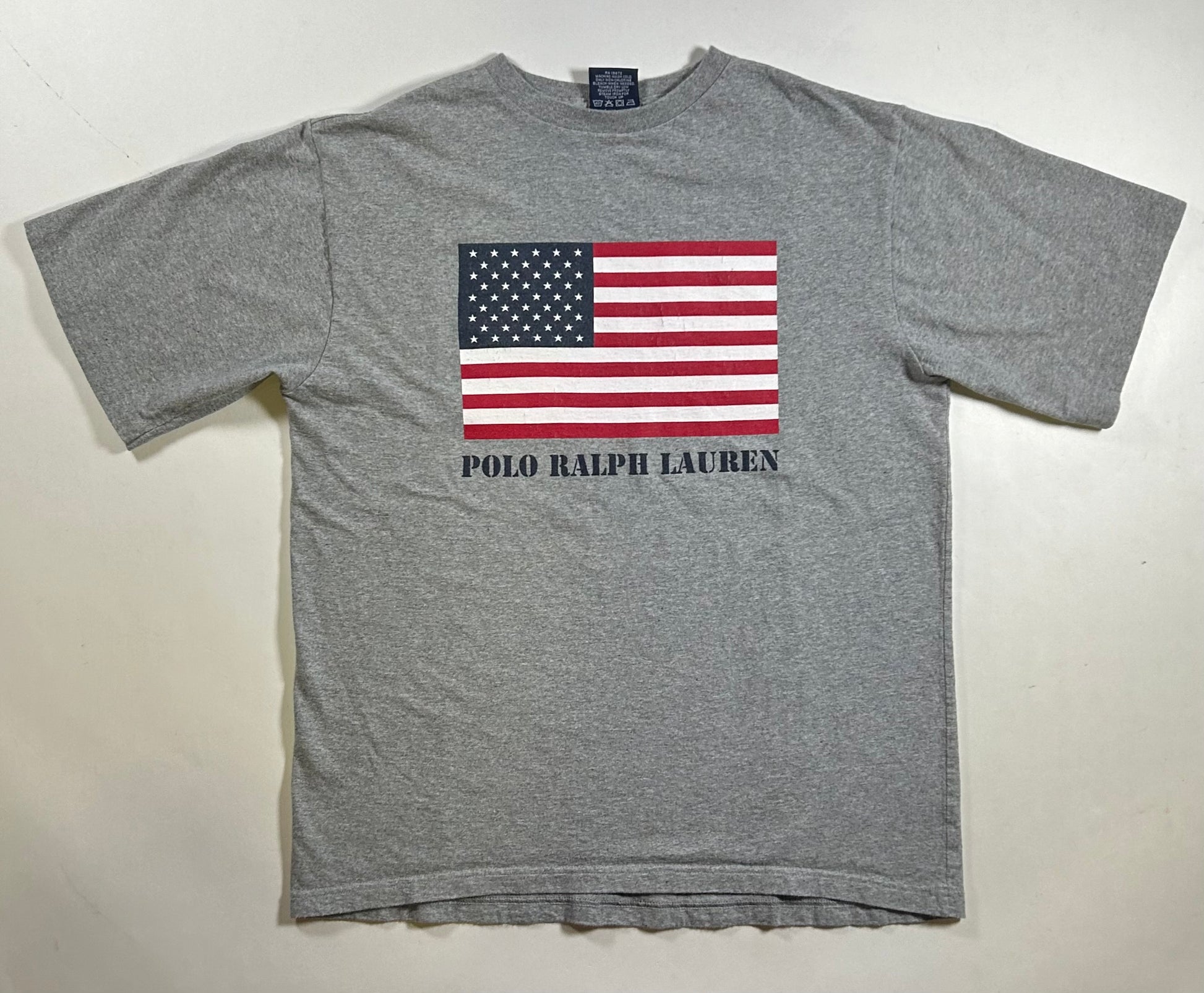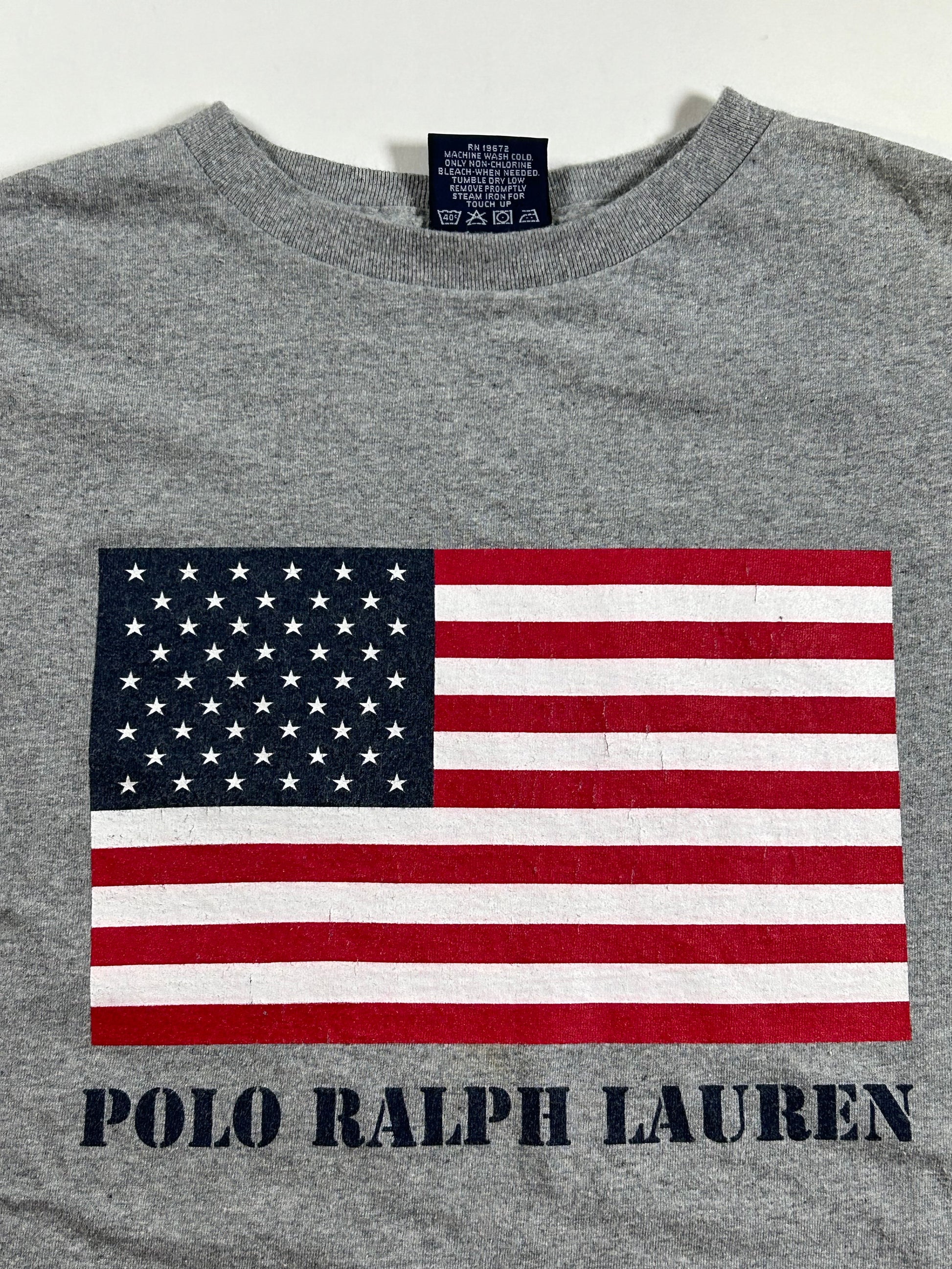 Vintage Polo Ralph Lauren USA American Flag Preppy T-Shirt Medium Fit 20.25x26 Inches