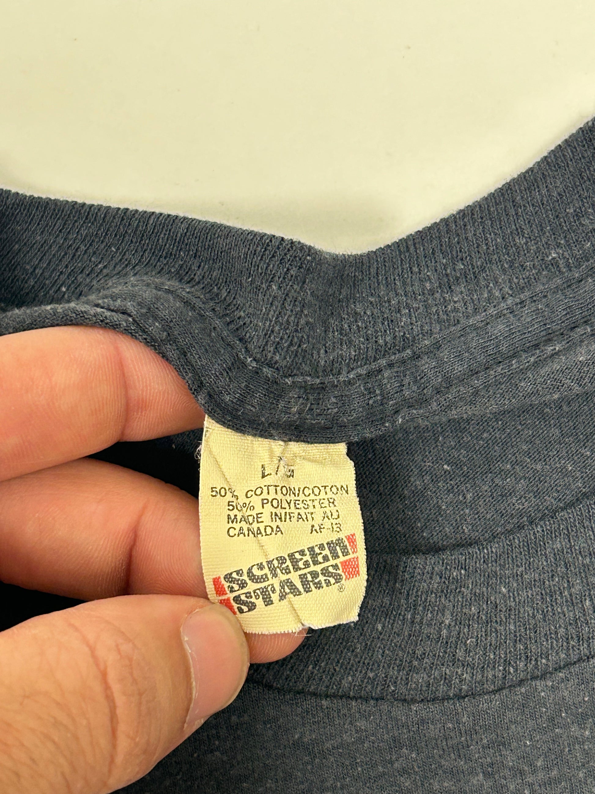 Screen Stars Tag Made In Canada 50% Cotton 50% Polyester.