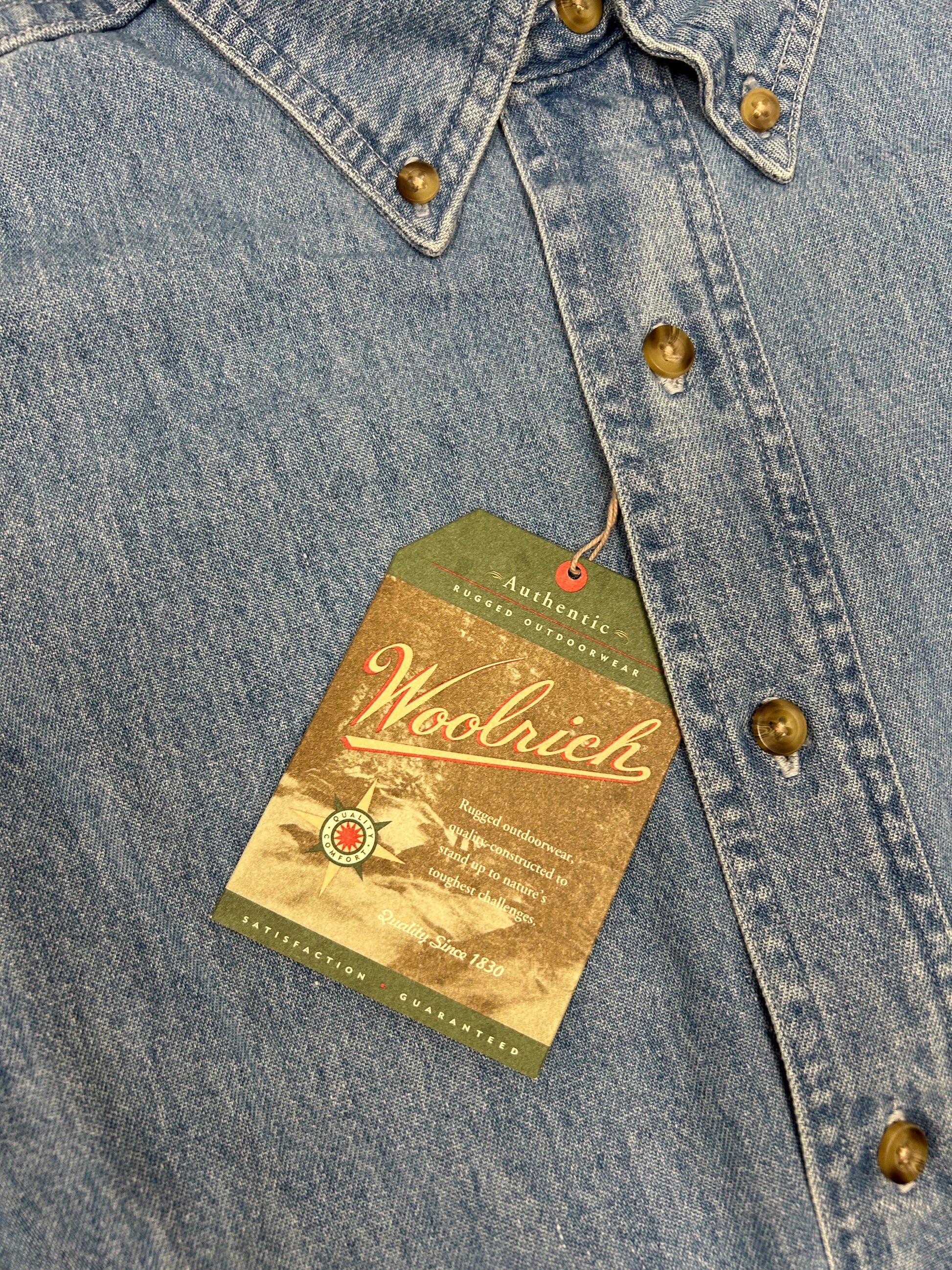 Woolrich Denim Button Up Shirt Blue Long Sleeve 100% Cotton Men’s Large 24x33 Inches DS Brand New With Tag